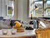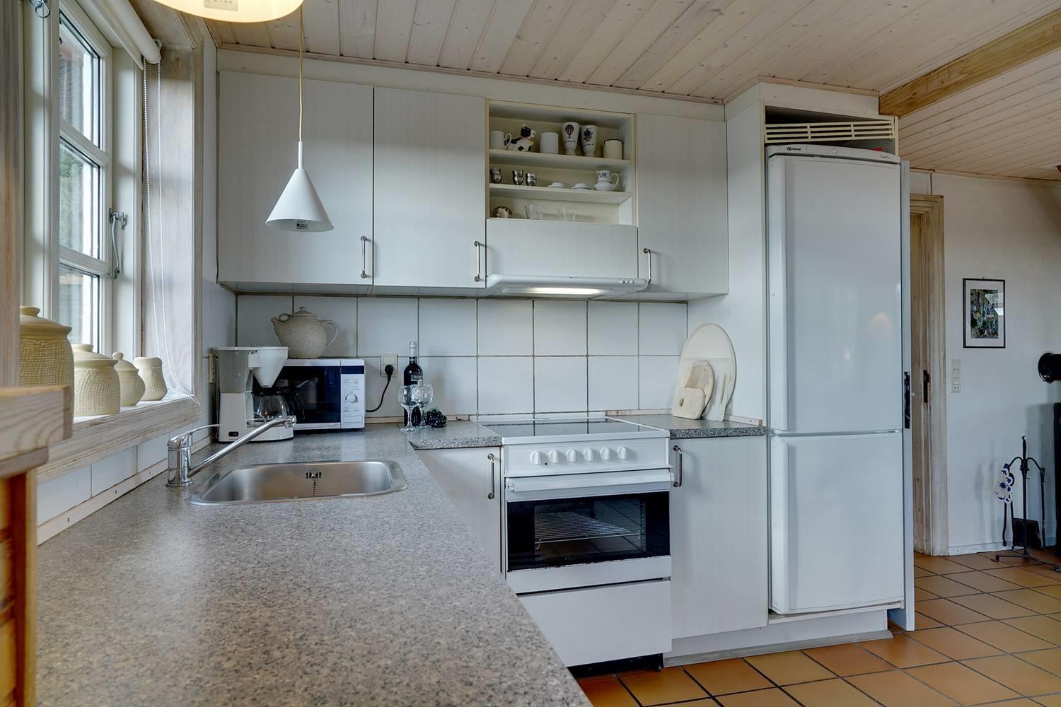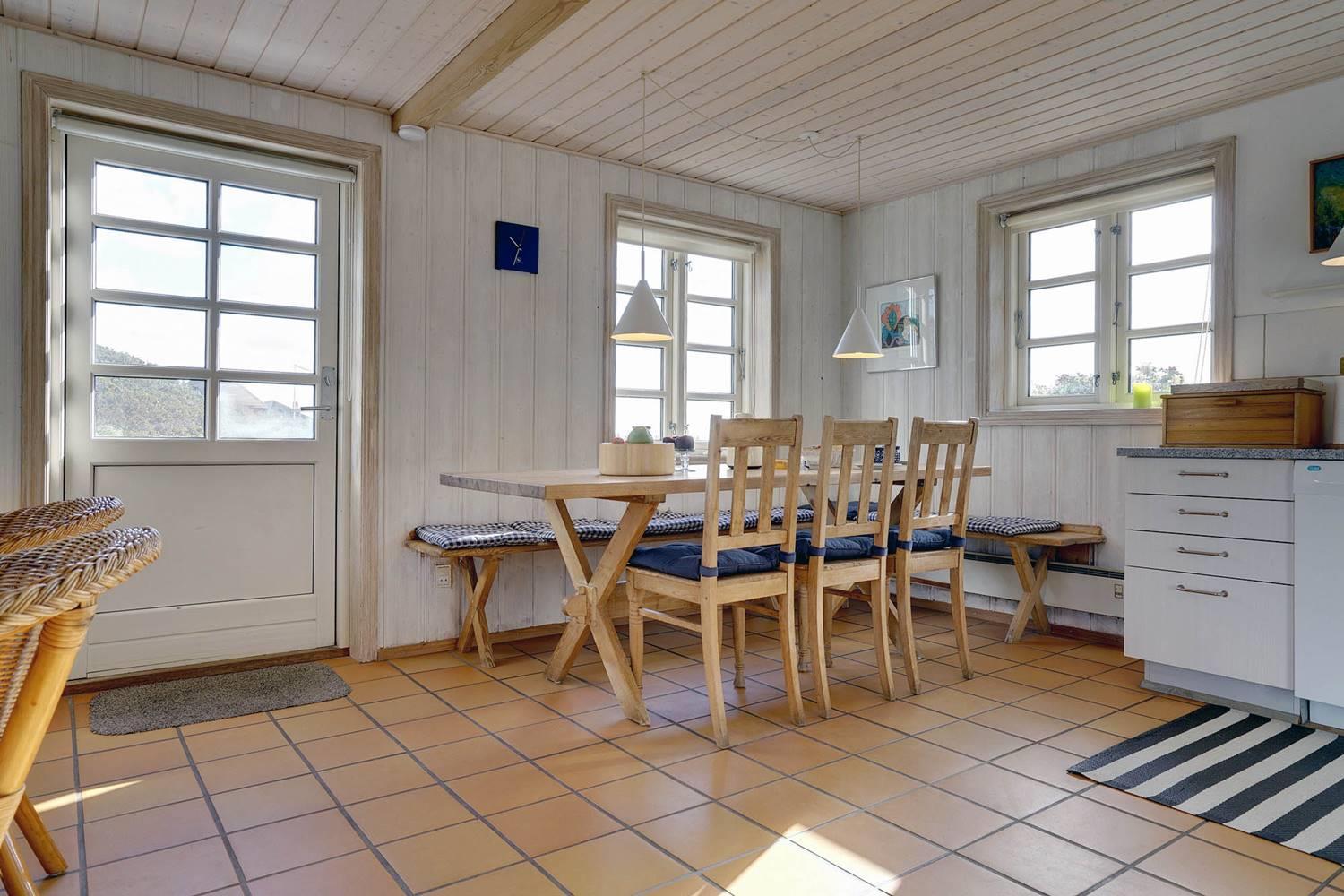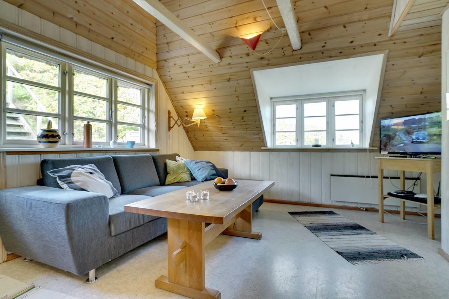 Her er gode muligheder for at nyde en glas vin på en dejlig sommer aften Fra køkken/alrum er der udgang til balkon. Fra både køkken/alrummet og stuen kan den skønne havudsigt nydes.