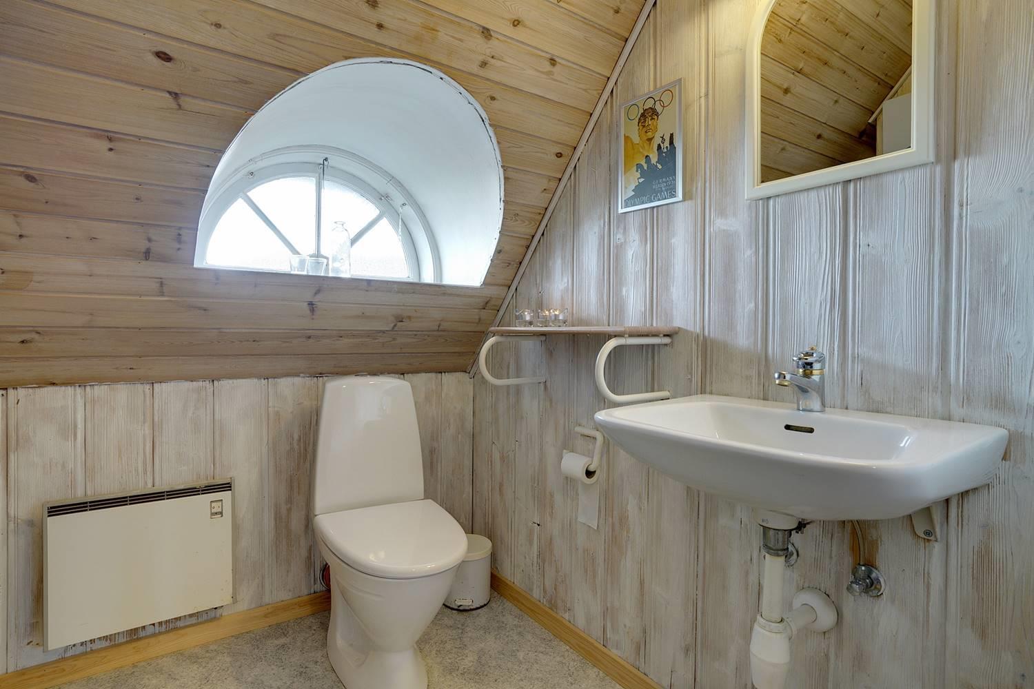 Der er stort køkken/alrum med klinkegulv og brændeovn og på 1. sal er der TV-stue, toilet og gode 2 soverum.