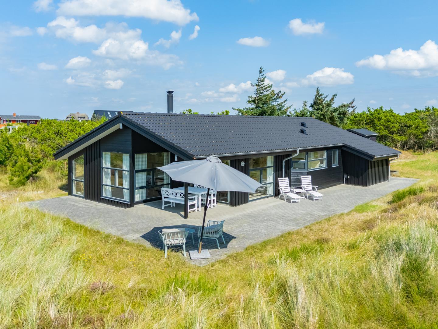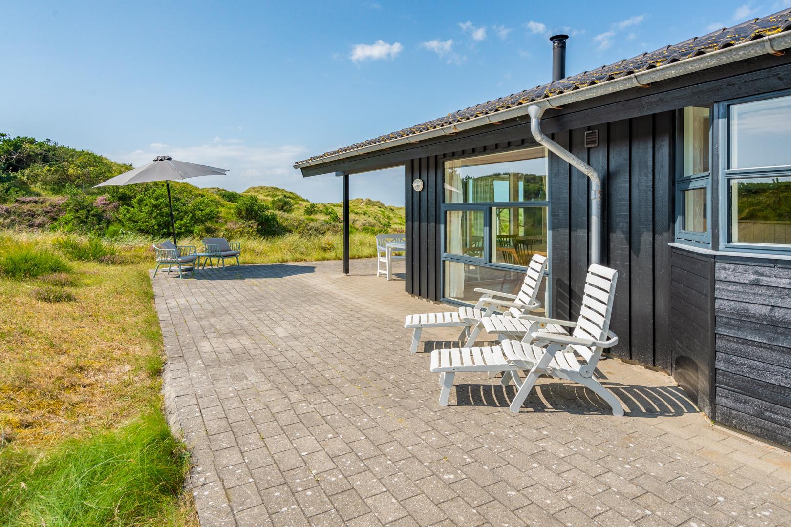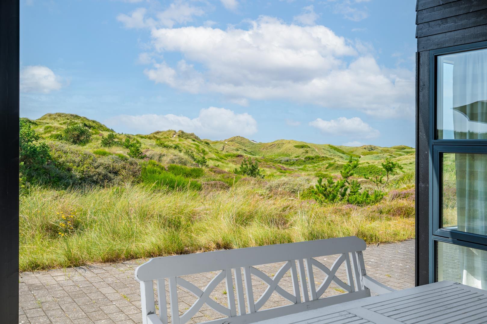 På en pragtfuld og ugeneret klitgrund med udsigt ud over klit-landskabet og kun ca. 300 meter fra stranden ligger dette pragtfulde feriehus. Der er fra stuen udgang til den store terrasse. Der er stort vinduesparti i stuen som give et dejligt lysindfald og man kan rigtig nyde den storslåede udsigt. Stuen og det flotte køkken ligger i åben forbindelse med hinanden. Flot, stort badeværelse med sauna og spa. Ekstra bad og toilet. 3 gode og rummelige soverum. Her er tale om et kvalitetshus med en helt fantastisk beliggenhed, hvor rammerne er skabt for en god ferie.