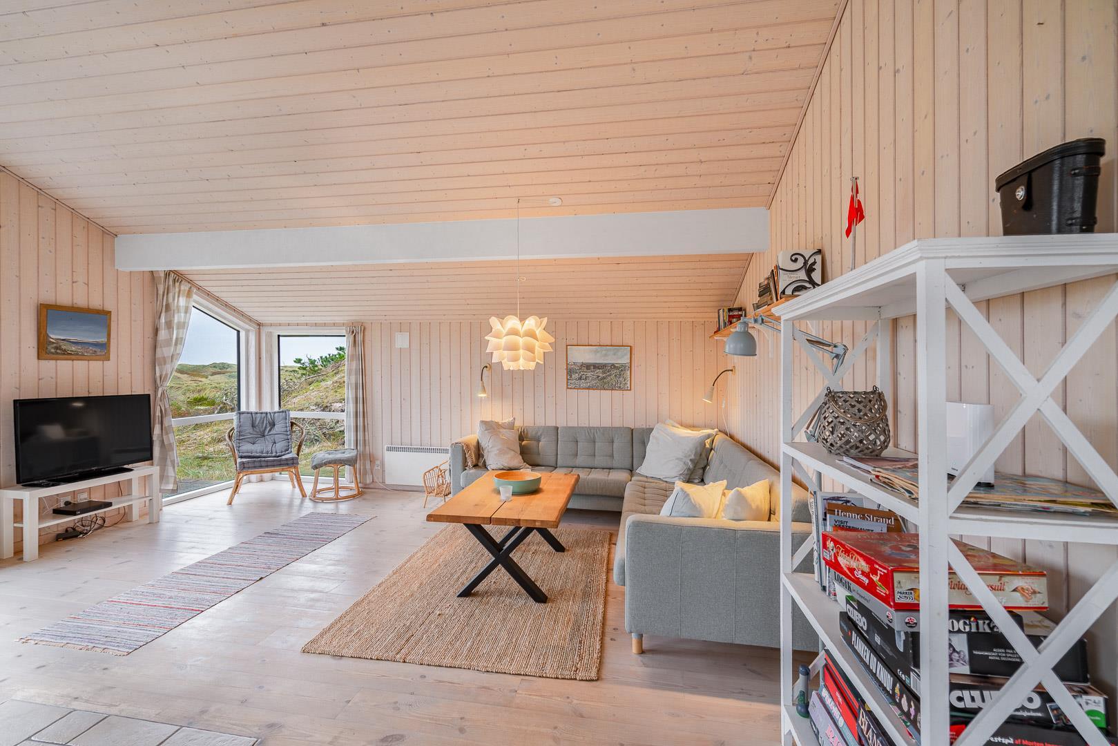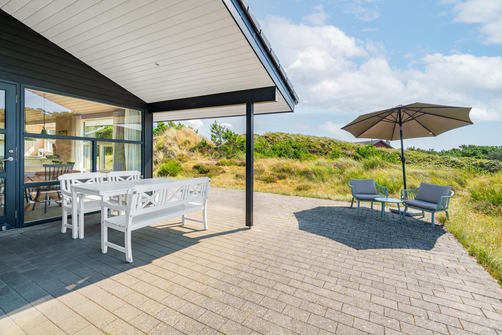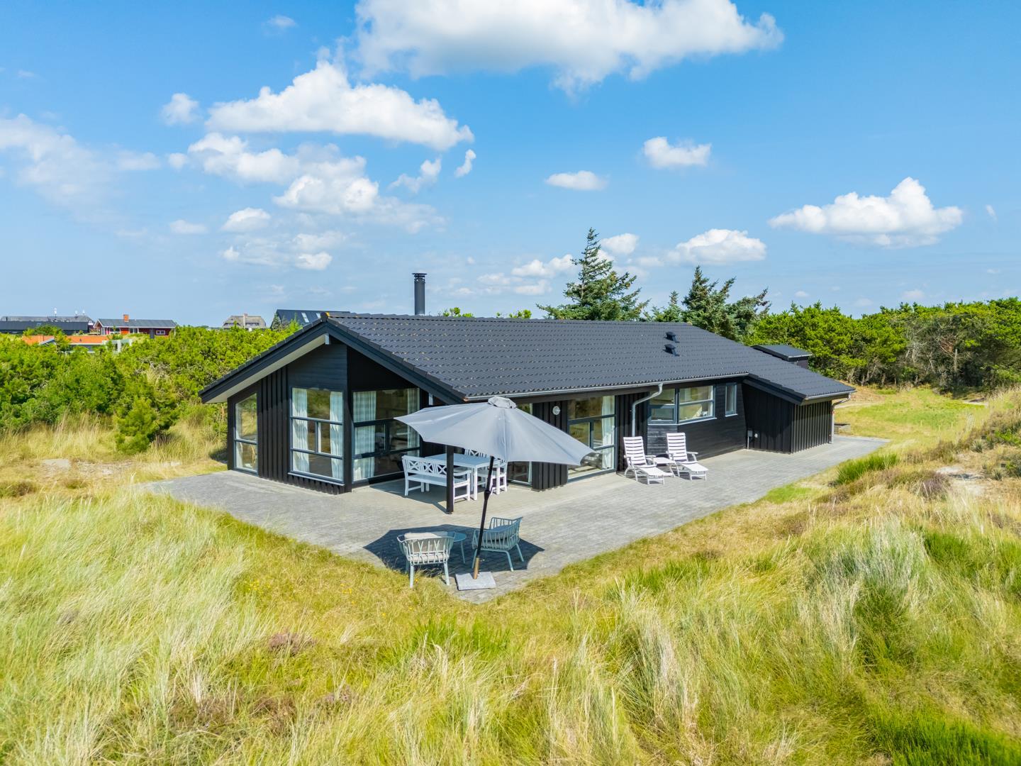 På en pragtfuld og ugeneret klitgrund med udsigt ud over klit-landskabet og kun ca. 300 meter fra stranden ligger dette pragtfulde feriehus. Der er fra stuen udgang til den store terrasse. Der er stort vinduesparti i stuen som give et dejligt lysindfald og man kan rigtig nyde den storslåede udsigt. Stuen og det flotte køkken ligger i åben forbindelse med hinanden. Flot, stort badeværelse med sauna og spa. Ekstra bad og toilet. 3 gode og rummelige soverum. Her er tale om et kvalitetshus med en helt fantastisk beliggenhed, hvor rammerne er skabt for en god ferie.