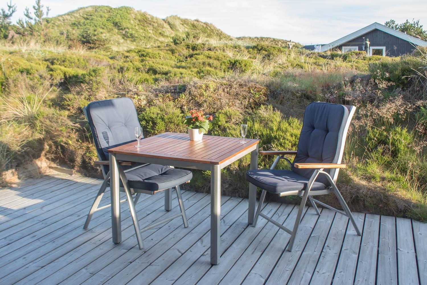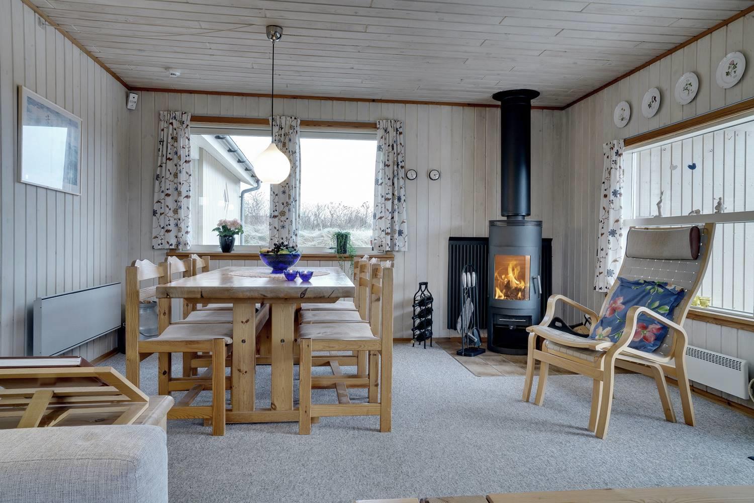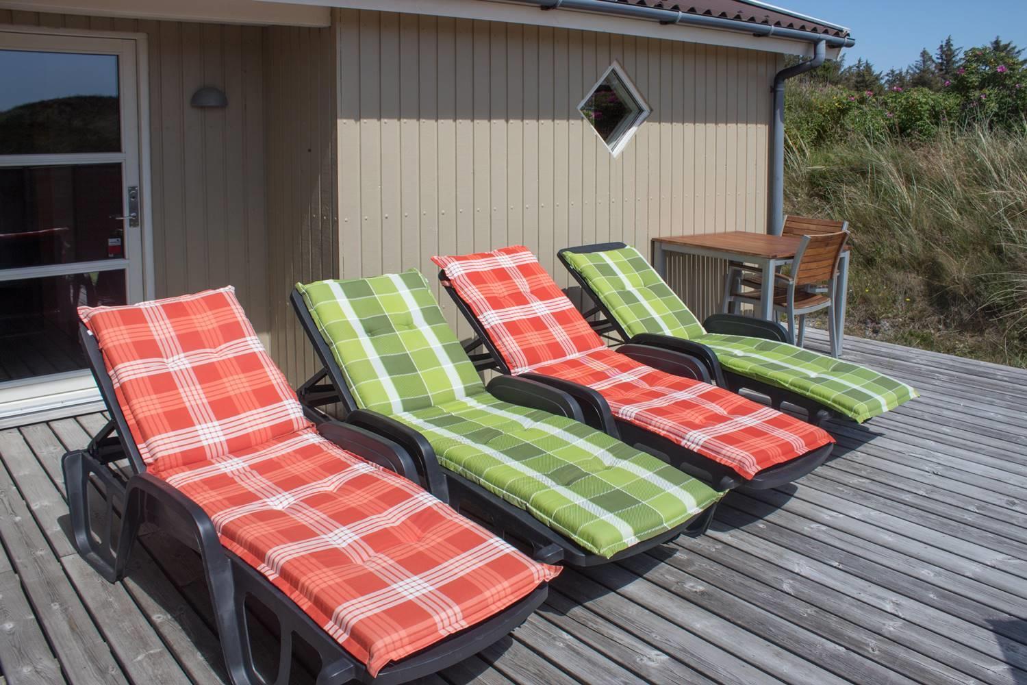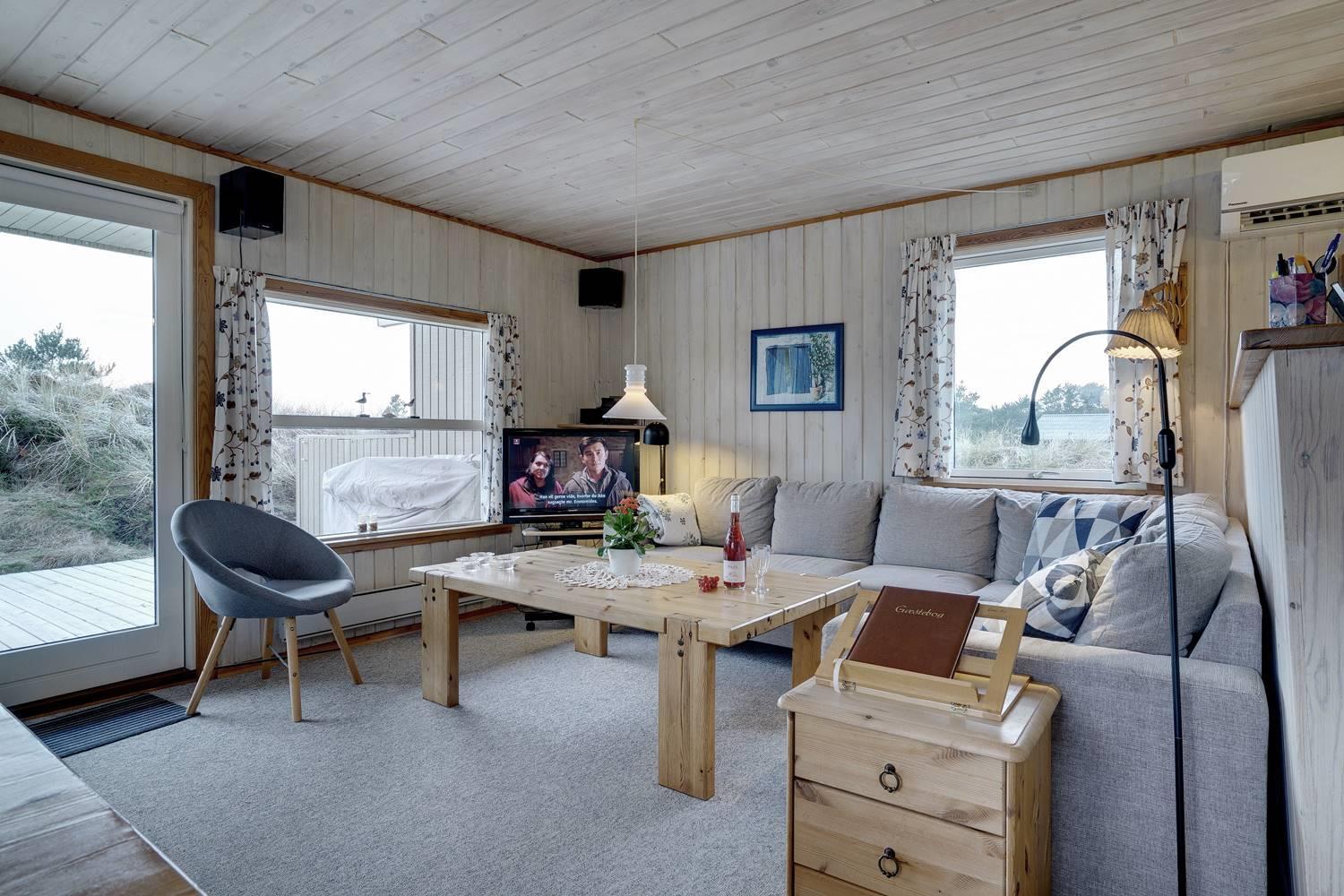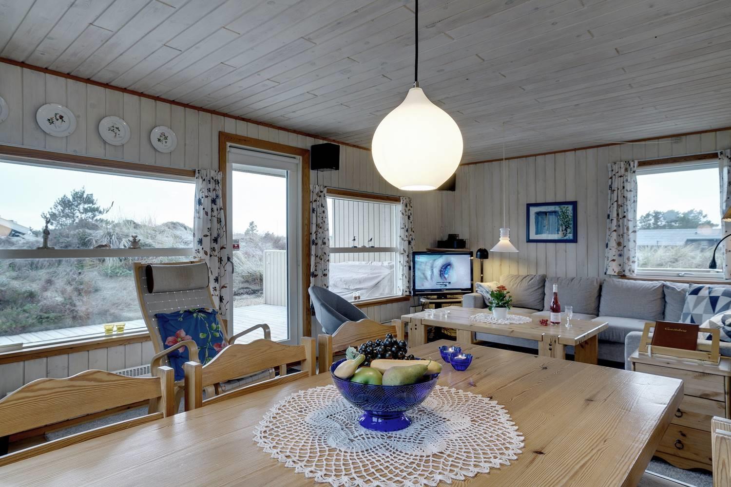 Dejligt feriehus med to flotte badeværelser, det ene med spabad og det andet med sauna. Tre gode soveværelser alle med dobbeltsenge. De store terrasser rundt om huset giver perfekte muligheder for at nyde solen hele dagen. Huset ligger tæt på de store fredede klit- og lyngarealer, hvor I kan gå lange ture. Der er alarmanlæg i huset.