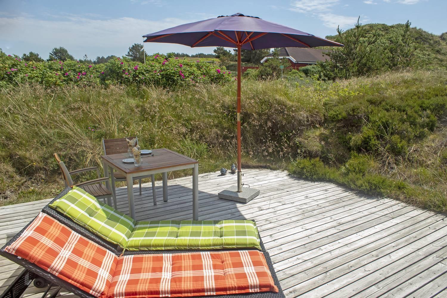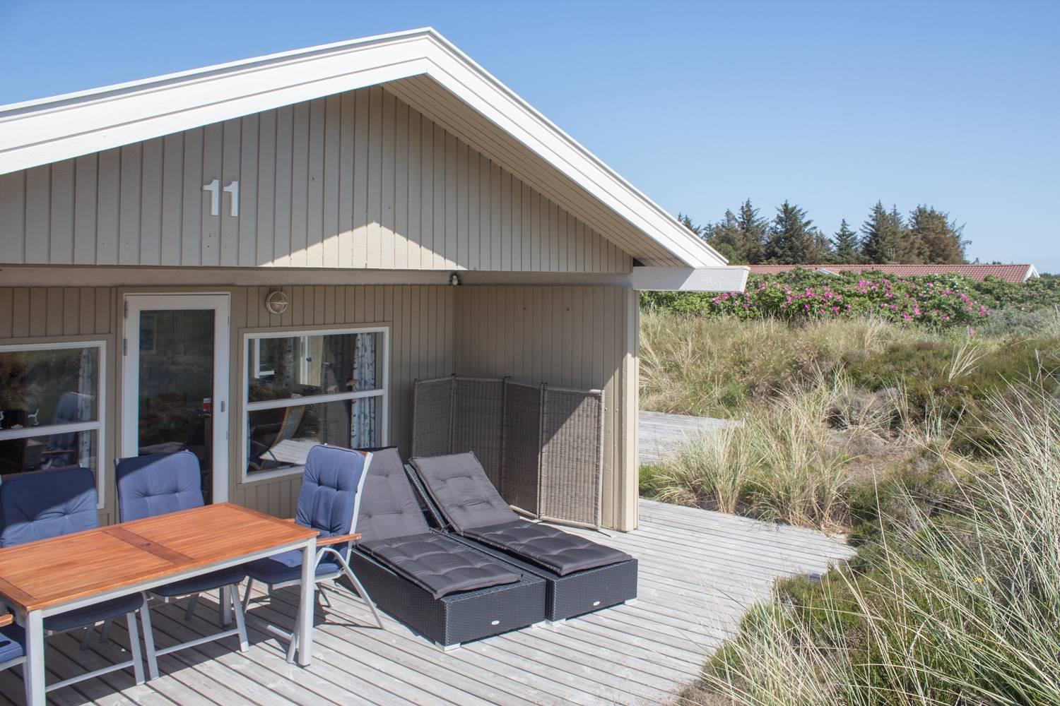 Dejligt feriehus med spabad, sauna og store terrasser nær Henne Strands klitter.