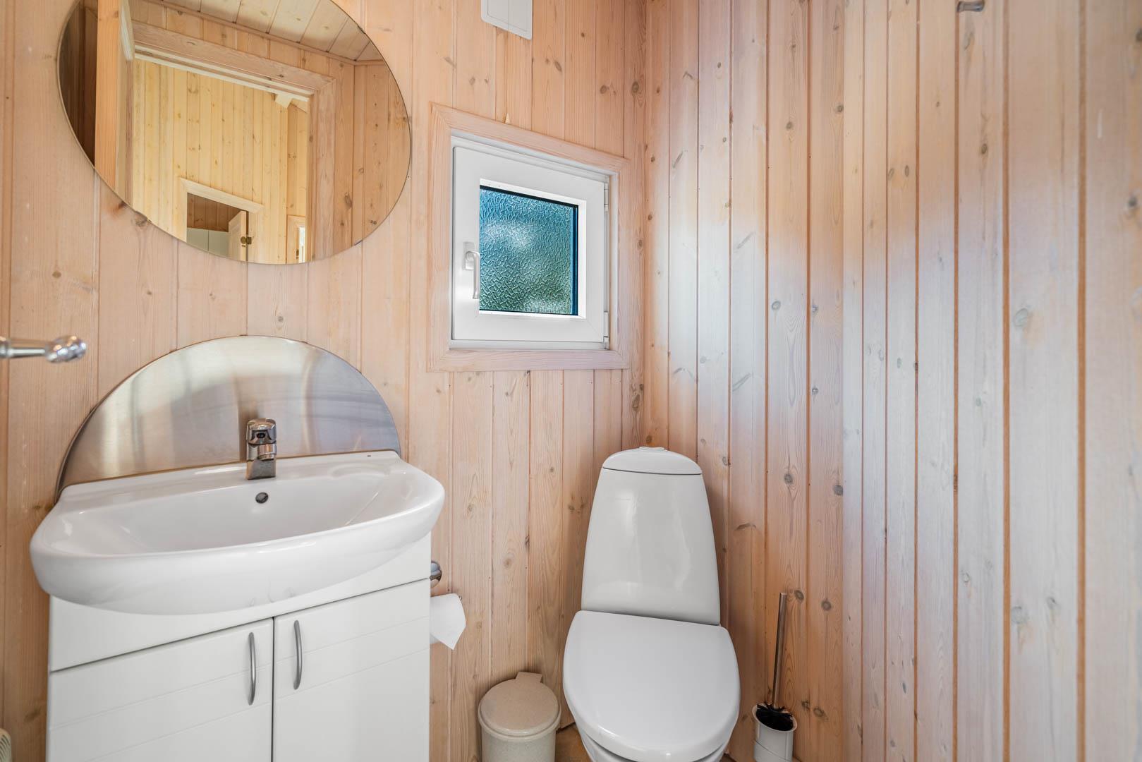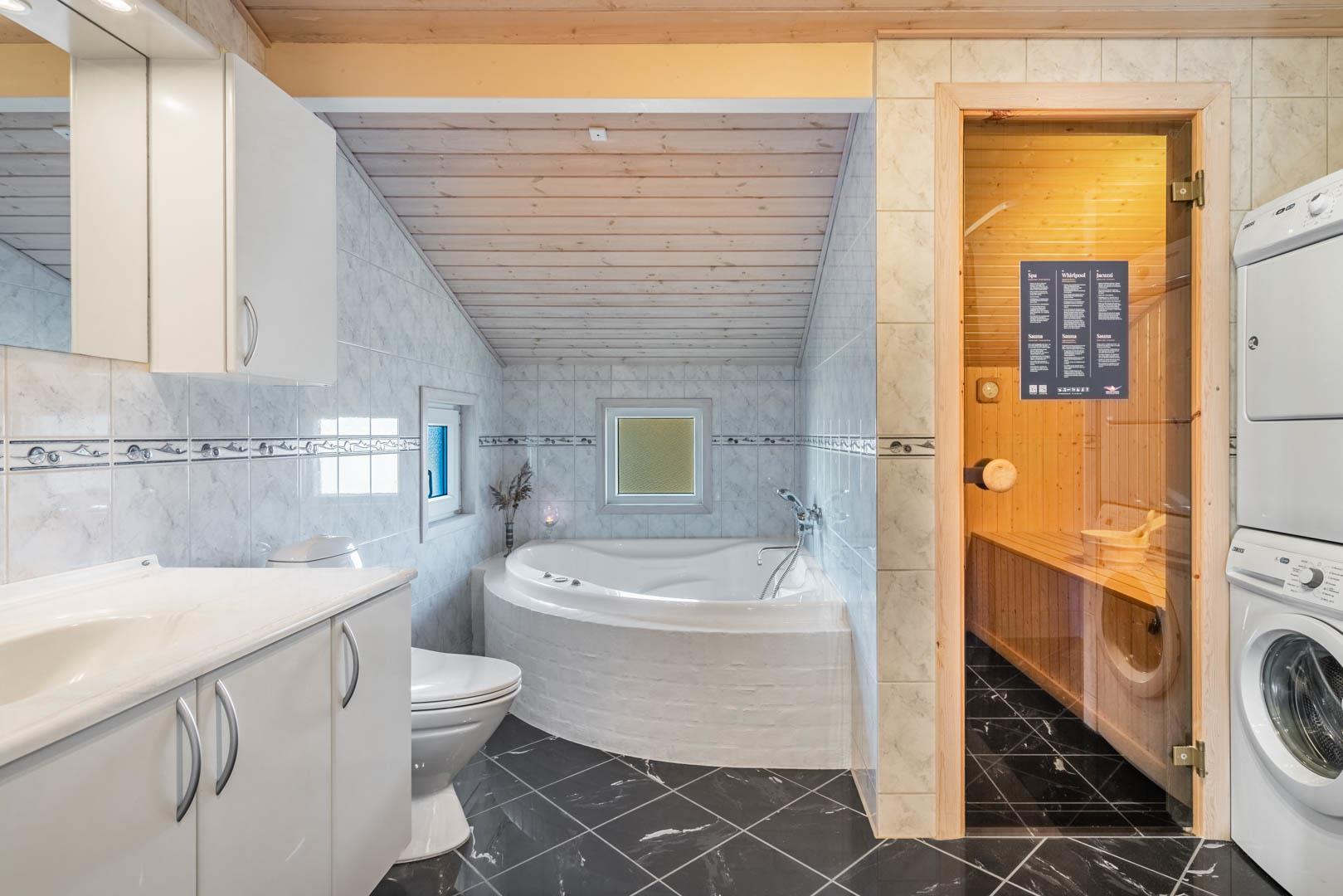 Feriehuset har tre gode soveværelser og et flot badeværelse med både spa og sauna – perfekt til velvære efter en dag ved stranden. Huset ligger fredeligt i en "gryde" med kort afstand til både havet og byen.