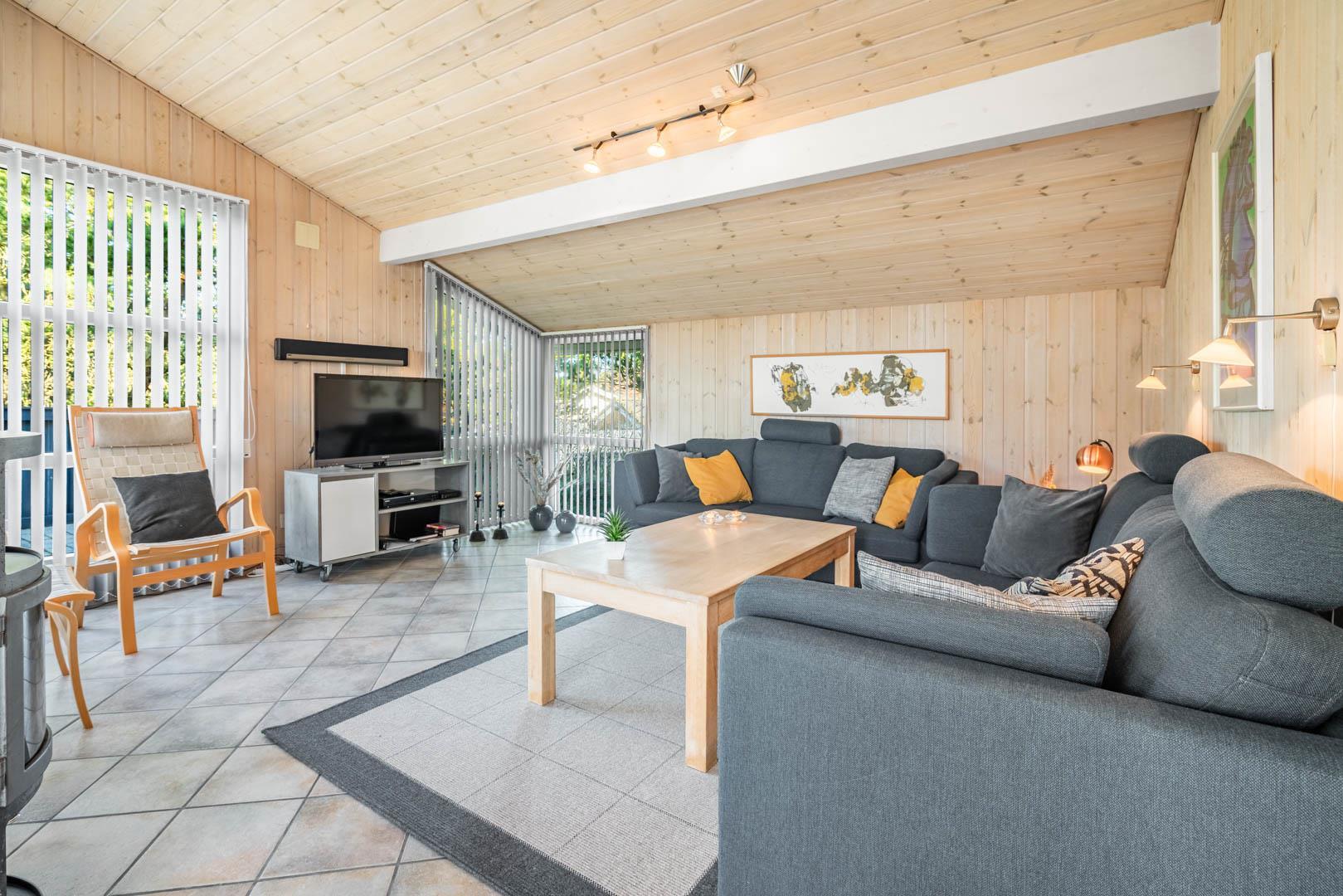 Dette velpassede sommerhus er indrettet med gode kvalitetsmøbler og har et flot køkken/alrum med direkte udgang til en dejlig, delvist overdækket terrasse. Den hyggelige stue er udstyret med komfortable møbler, Apple TV og Sonos-anlæg, så du kan nyde både afslapning og underholdning.
