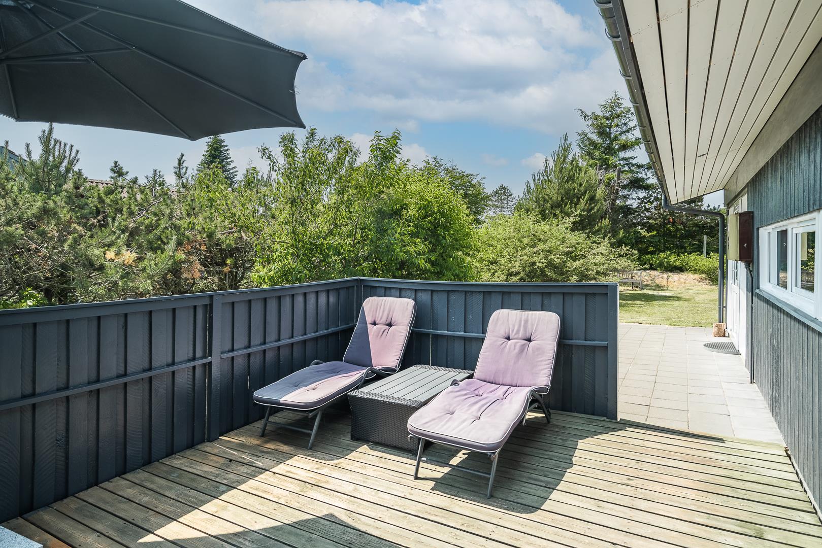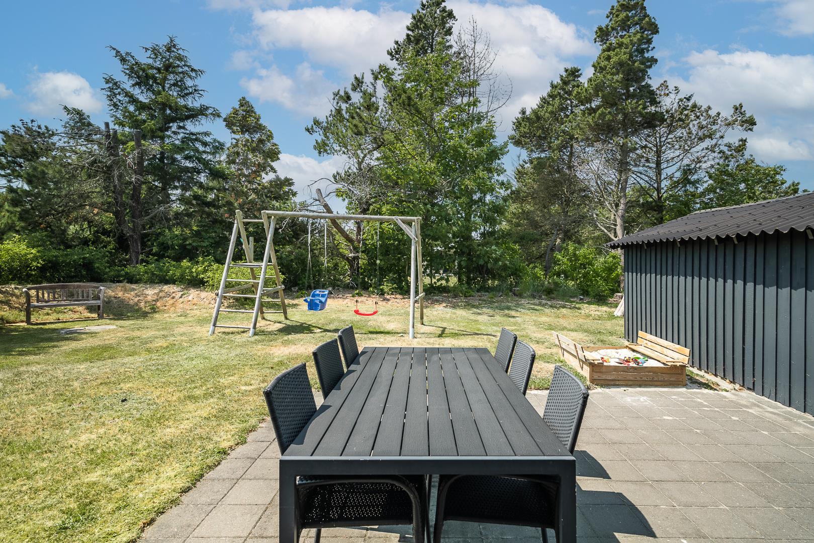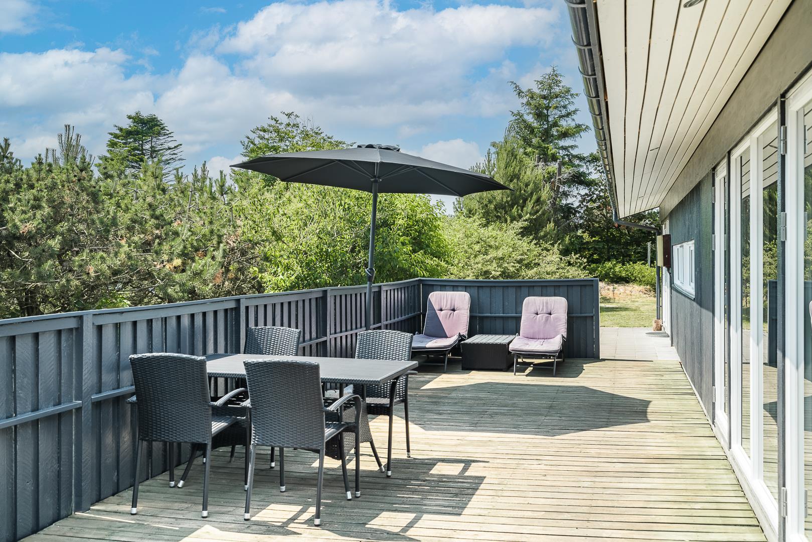 Huset ligger på en velplejet naturgrund med en stor terrasse, der omkranser huset og giver rig mulighed for at nyde solen, grille eller bare koble helt af i de naturskønne omgivelser.