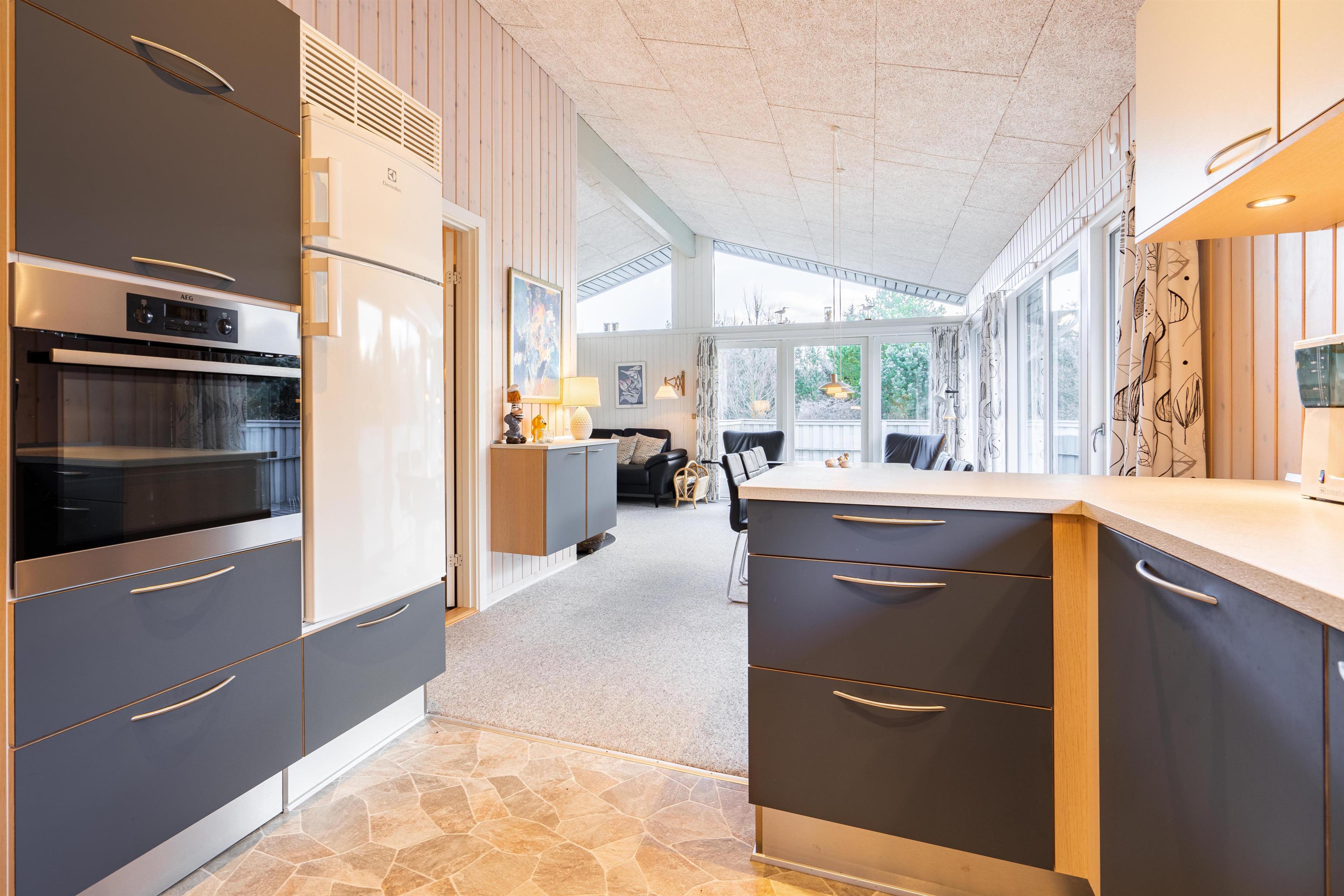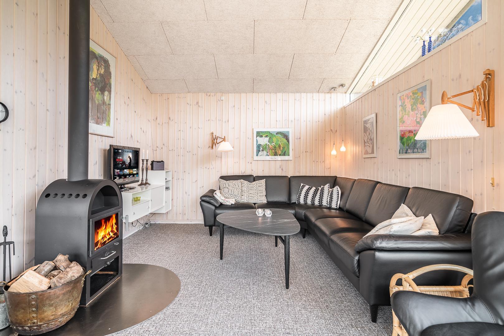 Huset byder på en hyggelig stue med loft til kip, brændeovn og en stor hjørnesofa, der skaber en varm og indbydende atmosfære. Den åbne forbindelse til det lækre, nye køkken gør det nemt at samles om madlavning og hyggelige stunder.