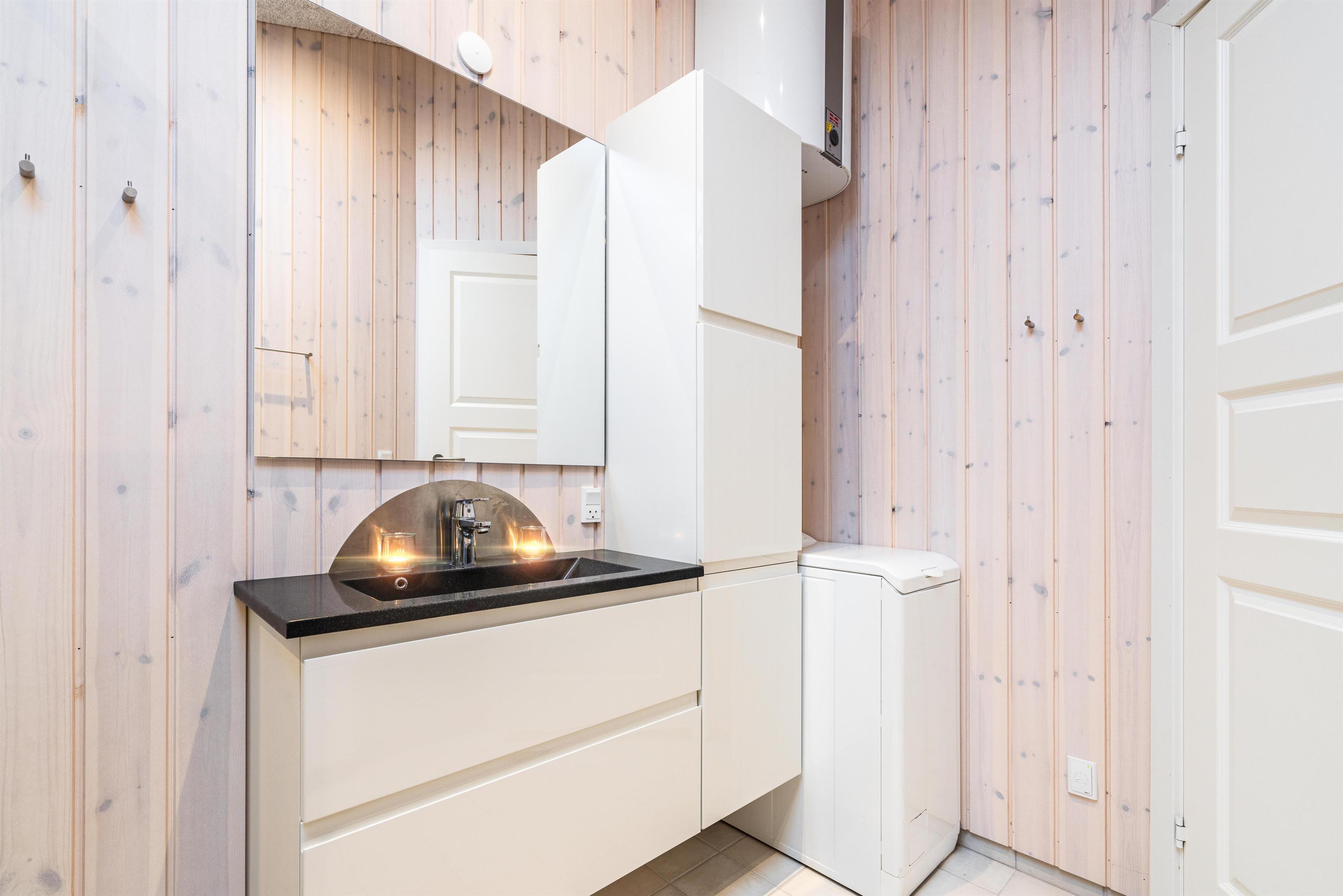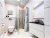 Det flotte badeværelse med gulvvarme sikrer ekstra komfort, og med tre gode værelser med skabe er der god plads til hele familien.
