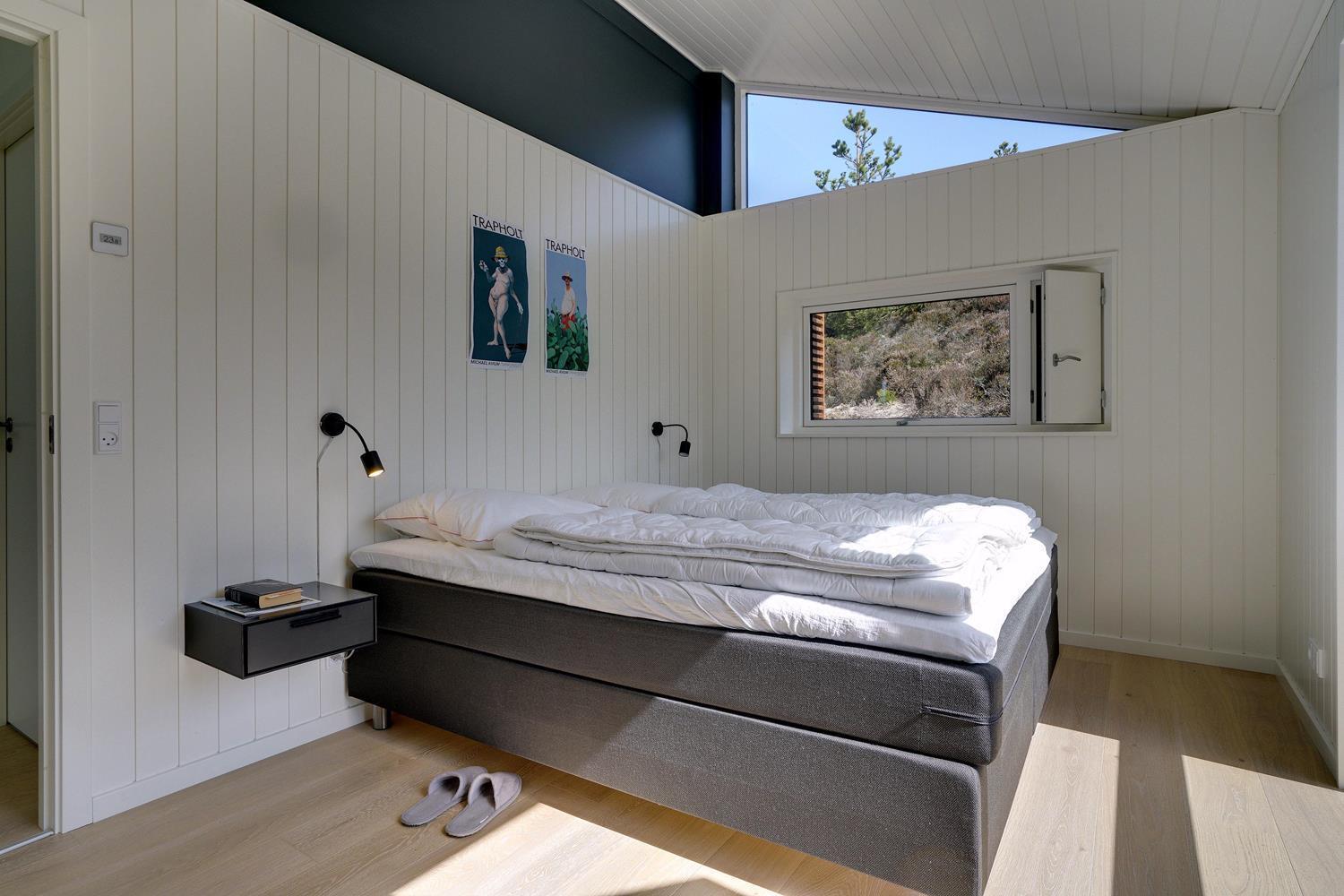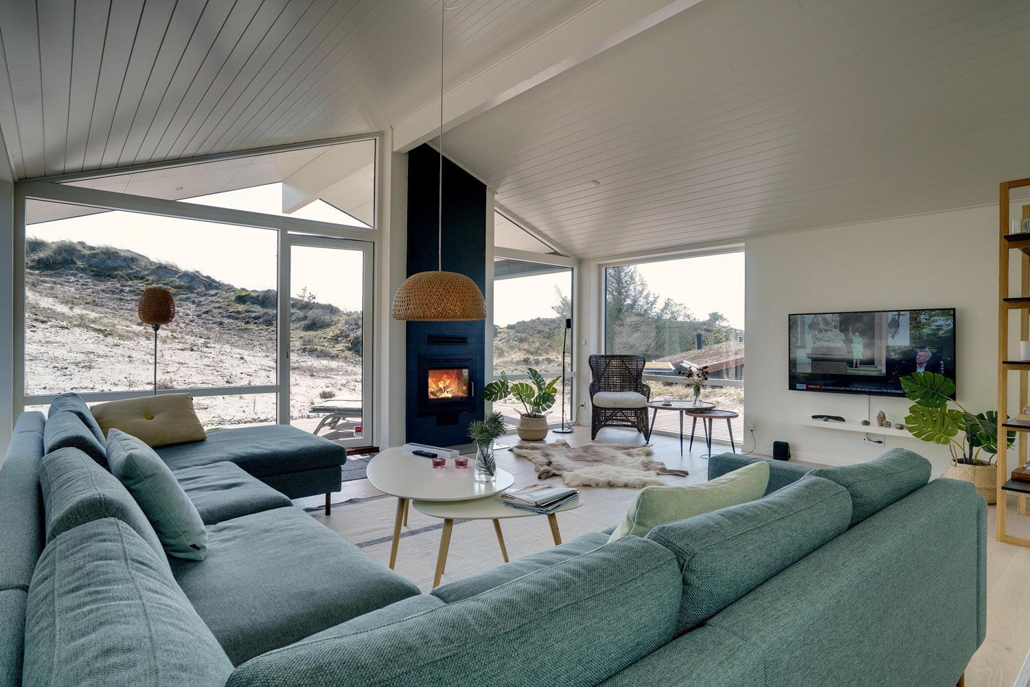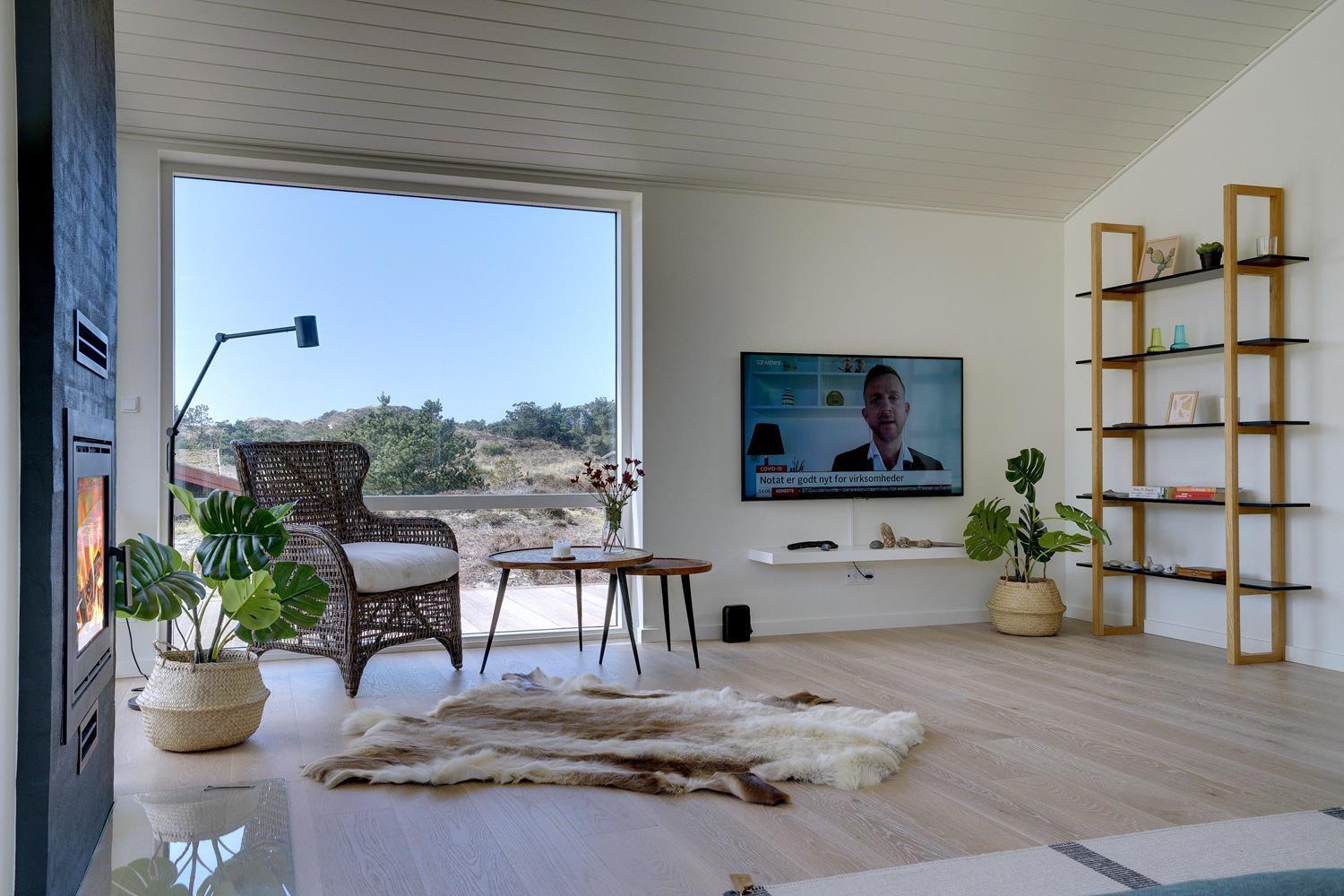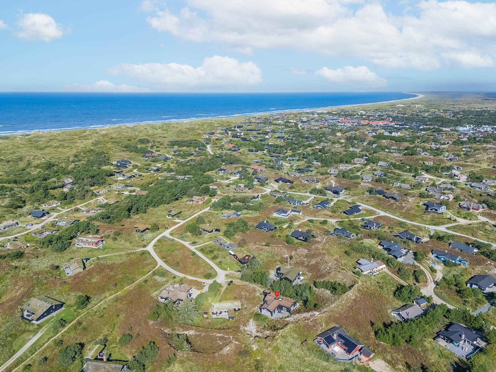 På Storkenæbvej 17 Henne Strand ligger dette nyopførte feriehus. Huset er beliggende på en ugeneret klitgrund for enden af blind vej. Overalt fremstår huset lækkert med moderne indretning. I entreen er der god plads til overtøj, sko mm. her finder du også vaskemaskine og tørretumbler. Det flotte køkken er integreret med husets lyse og rummelige stue. Fra dette dejlige rum kan udsigten ud over området nydes og der kan slappes af i den lækre sofa foran husets brændeovn. 2 lækre badeværelser med bruser og gulvvarme. Alle 3 soverum er med gode senge og god skabsplads. Internetforbindelse 1000 mbt.