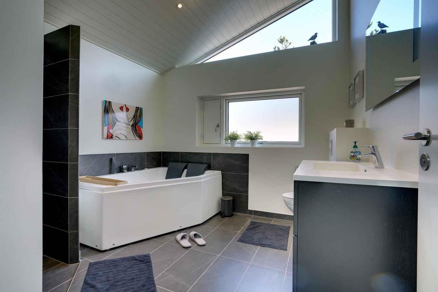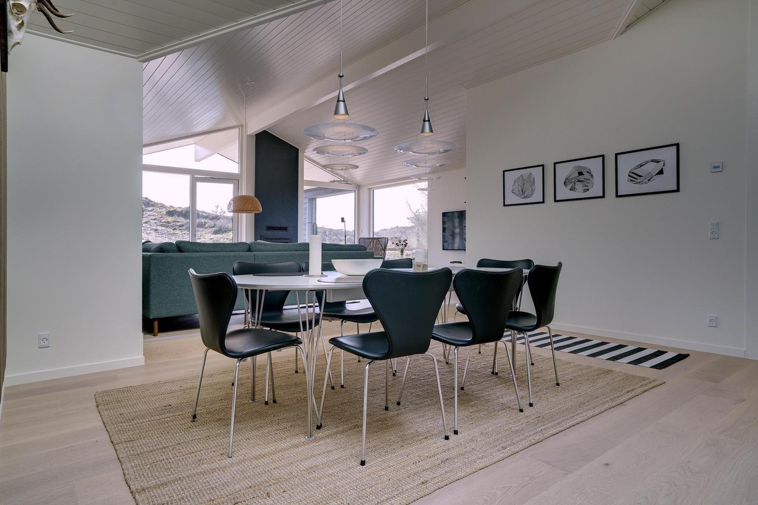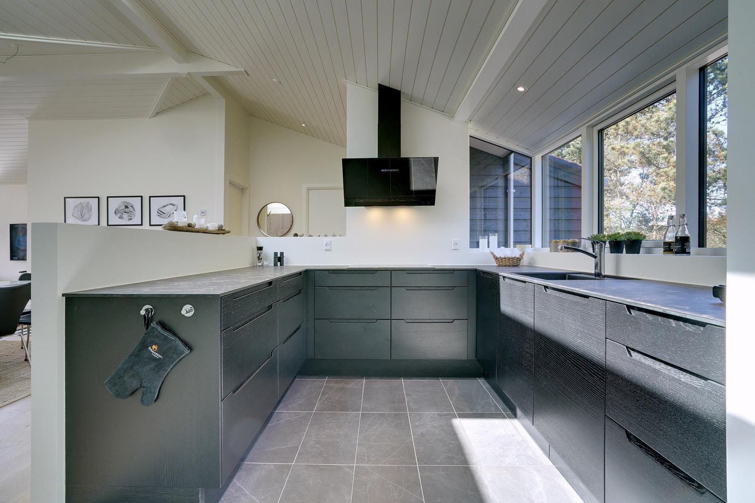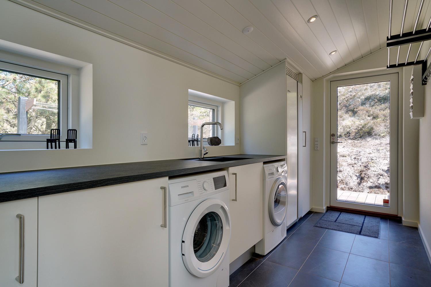 På Storkenæbvej 17 Henne Strand ligger dette nyopførte feriehus. Huset er beliggende på en ugeneret klitgrund for enden af blind vej. Overalt fremstår huset lækkert med moderne indretning. I entreen er der god plads til overtøj, sko mm. her finder du også vaskemaskine og tørretumbler. Det flotte køkken er integreret med husets lyse og rummelige stue. Fra dette dejlige rum kan udsigten ud over området nydes og der kan slappes af i den lækre sofa foran husets brændeovn. 2 lækre badeværelser med bruser og gulvvarme. Alle 3 soverum er med gode senge og god skabsplads. Internetforbindelse 1000 mbt.
