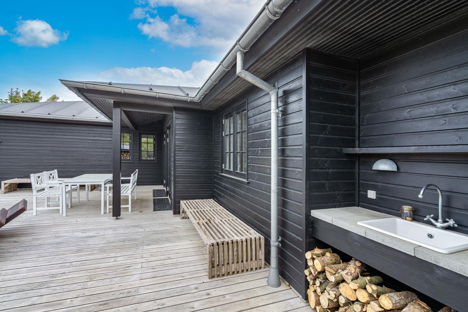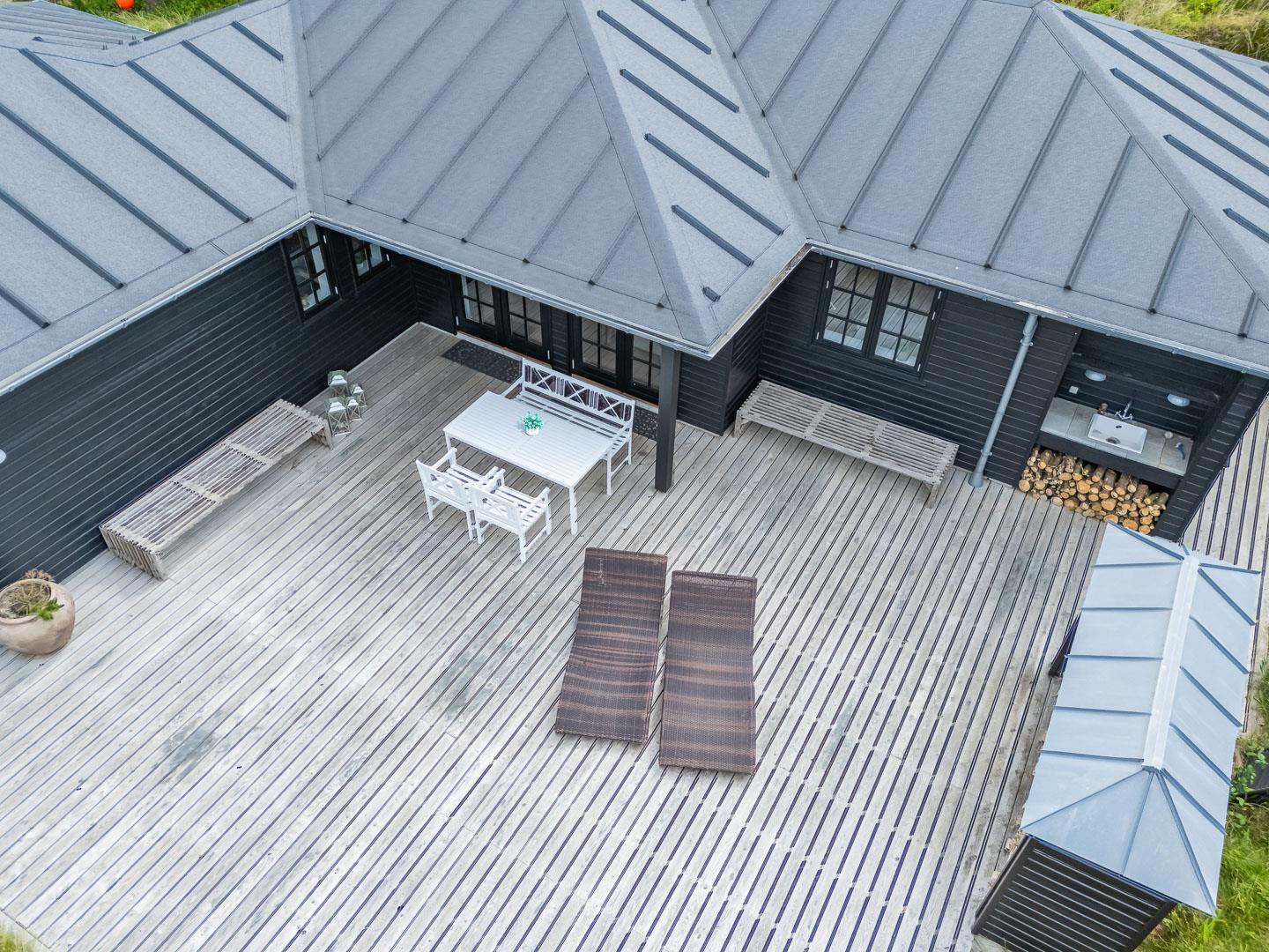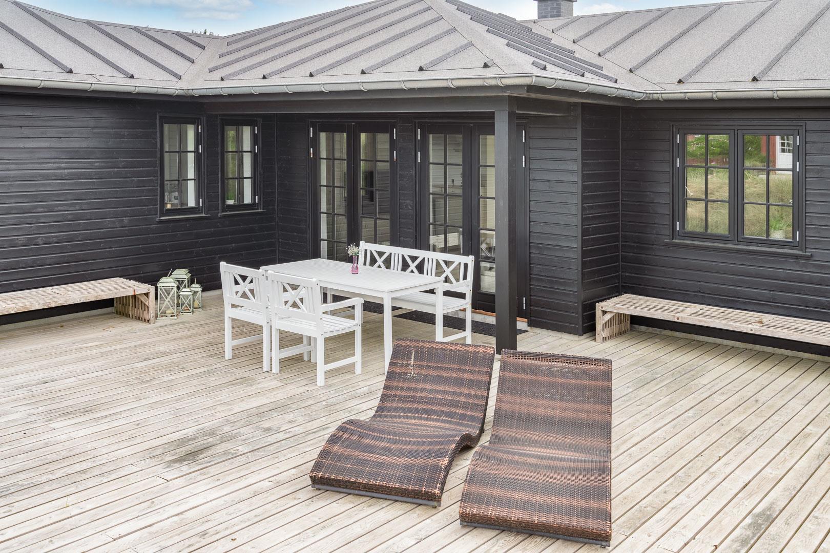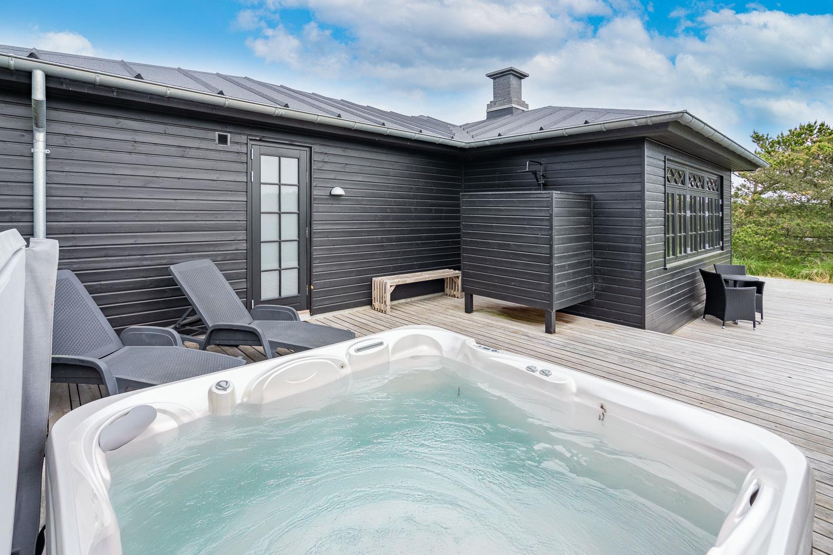 Udenfor kan du nyde solen og den imponerende udsigt fra den store og lækre træterrasse, hvor liggestole og udespaen inviterer til ren afslapning. Dette sommerhus er simpelthen det perfekte tilflugtssted i Henne Strand - et sandt paradis! Med kort afstand til stranden, Henne Strands byliv og naturskønne omgivelser, er dette sommerhus på Gyvelvej 15 en fantastisk ferieoplevelse.