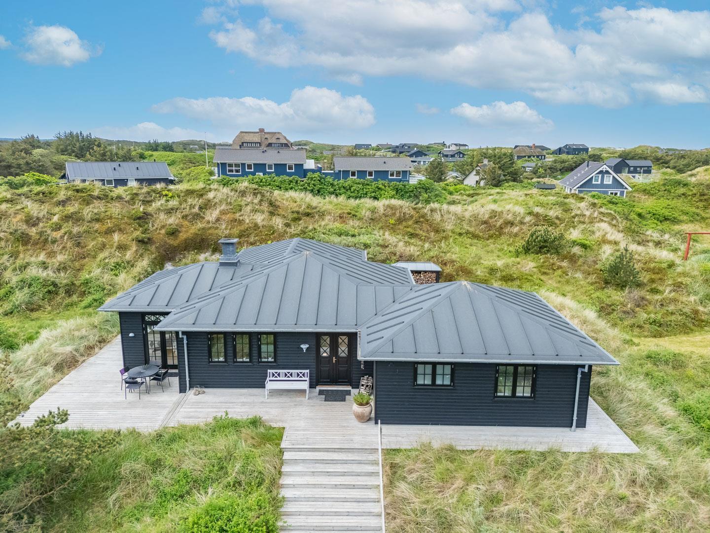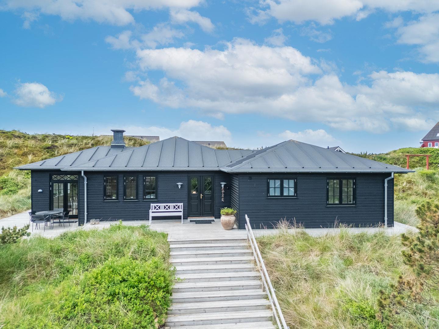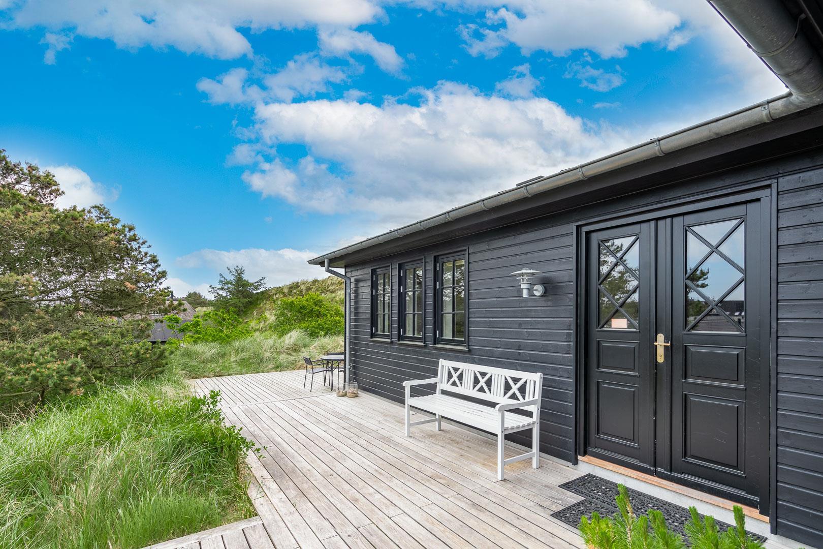 Træd ind i et sommerhus, der overgår dine forventninger og åbner dørene til en uforglemmelig ferieoplevelse. Fra det øjeblik, du ankommer, vil du blive fortryllet af atmosfæren og de fantastiske omgivelser. Oplev dette lækre sommerhus ved Henne Strand med en fortryllende udsigt udover det omkringliggende natur og de skønne klitter. Sommerhuset er lyst og lækkert indrettet, har et dejligt køkken og stue, som ligger i åben forbindelse – her finder du bl.a. også en brændeovn som spreder hygge og varme ud i hele rummet.