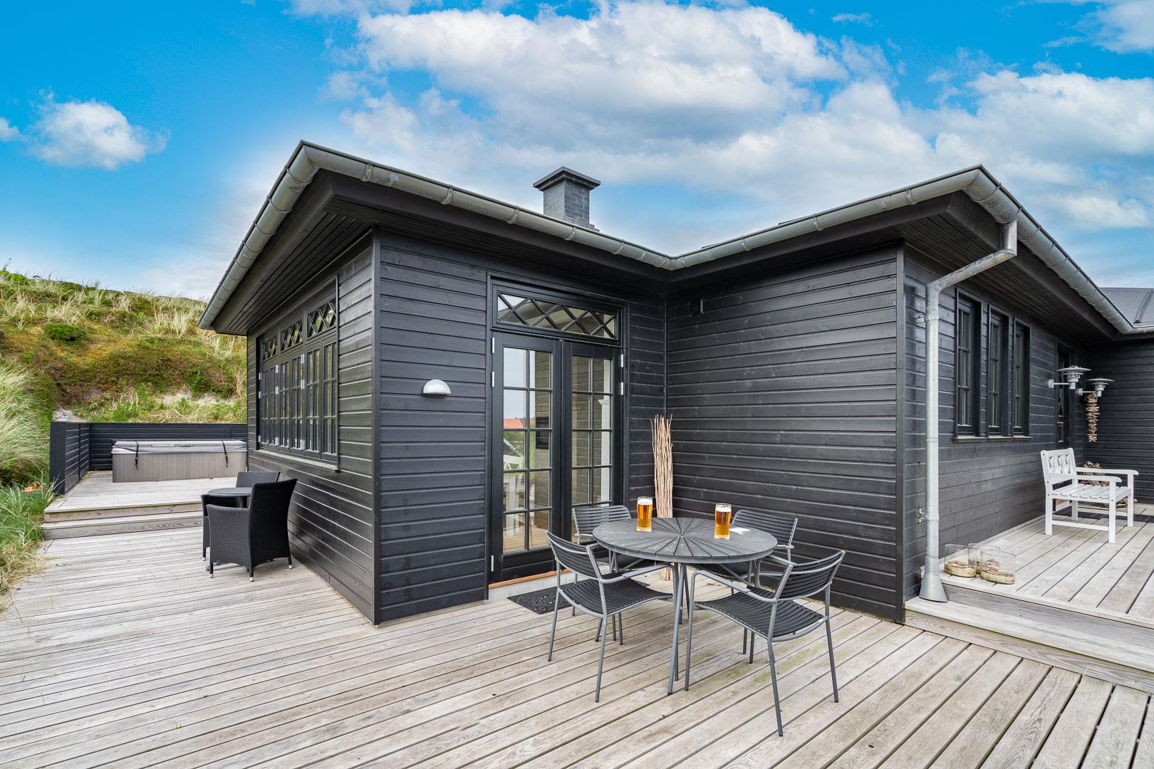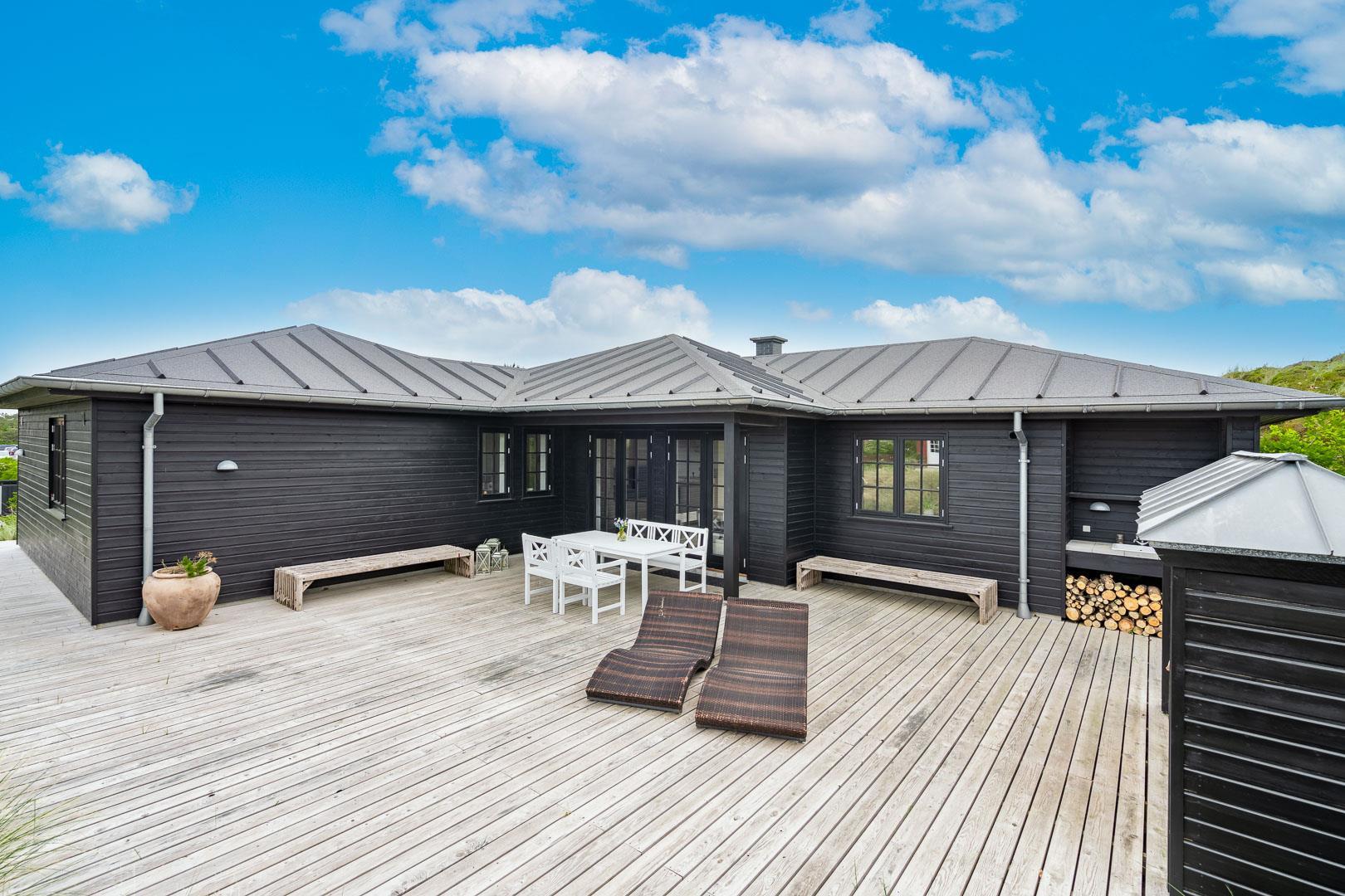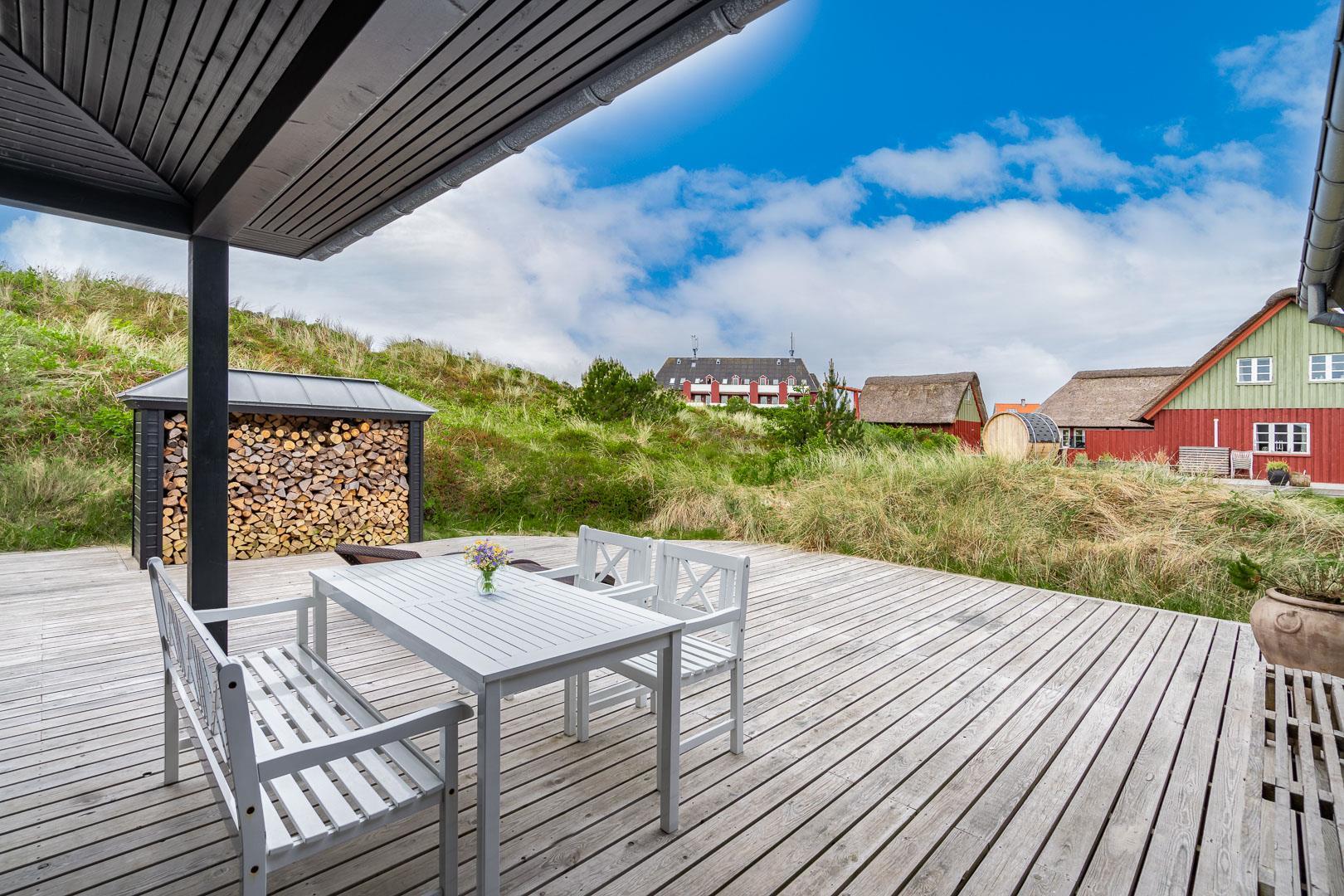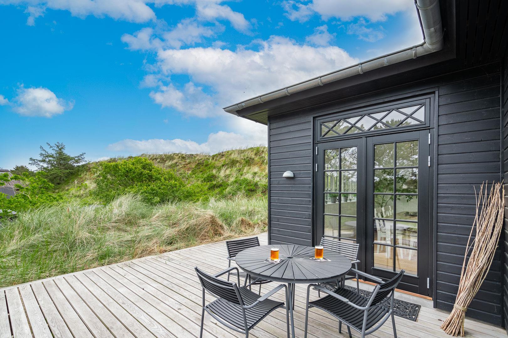 Træd ind i et sommerhus, der overgår dine forventninger og åbner dørene til en uforglemmelig ferieoplevelse. Fra det øjeblik, du ankommer, vil du blive fortryllet af atmosfæren og de fantastiske omgivelser. Oplev dette lækre sommerhus ved Henne Strand med en fortryllende udsigt udover det omkringliggende natur og de skønne klitter. Sommerhuset er lyst og lækkert indrettet, har et dejligt køkken og stue, som ligger i åben forbindelse – her finder du bl.a. også en brændeovn som spreder hygge og varme ud i hele rummet.