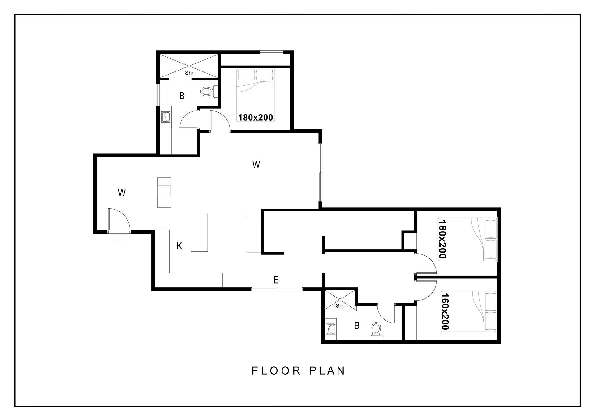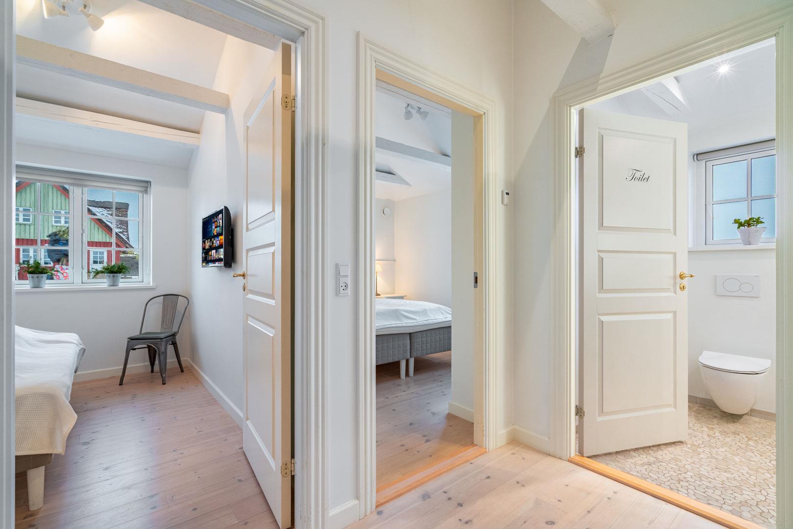Sengestørrelse: 2 dobbeltsenge 180 x 200 cm + 1 dobbeltseng 160 x 200 cm.