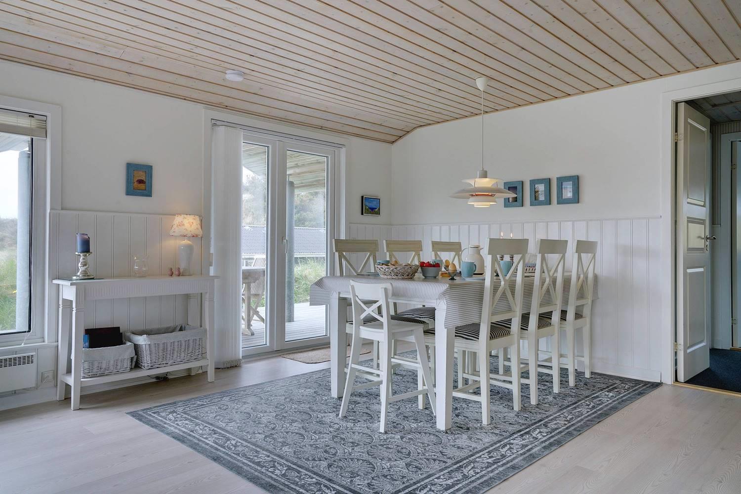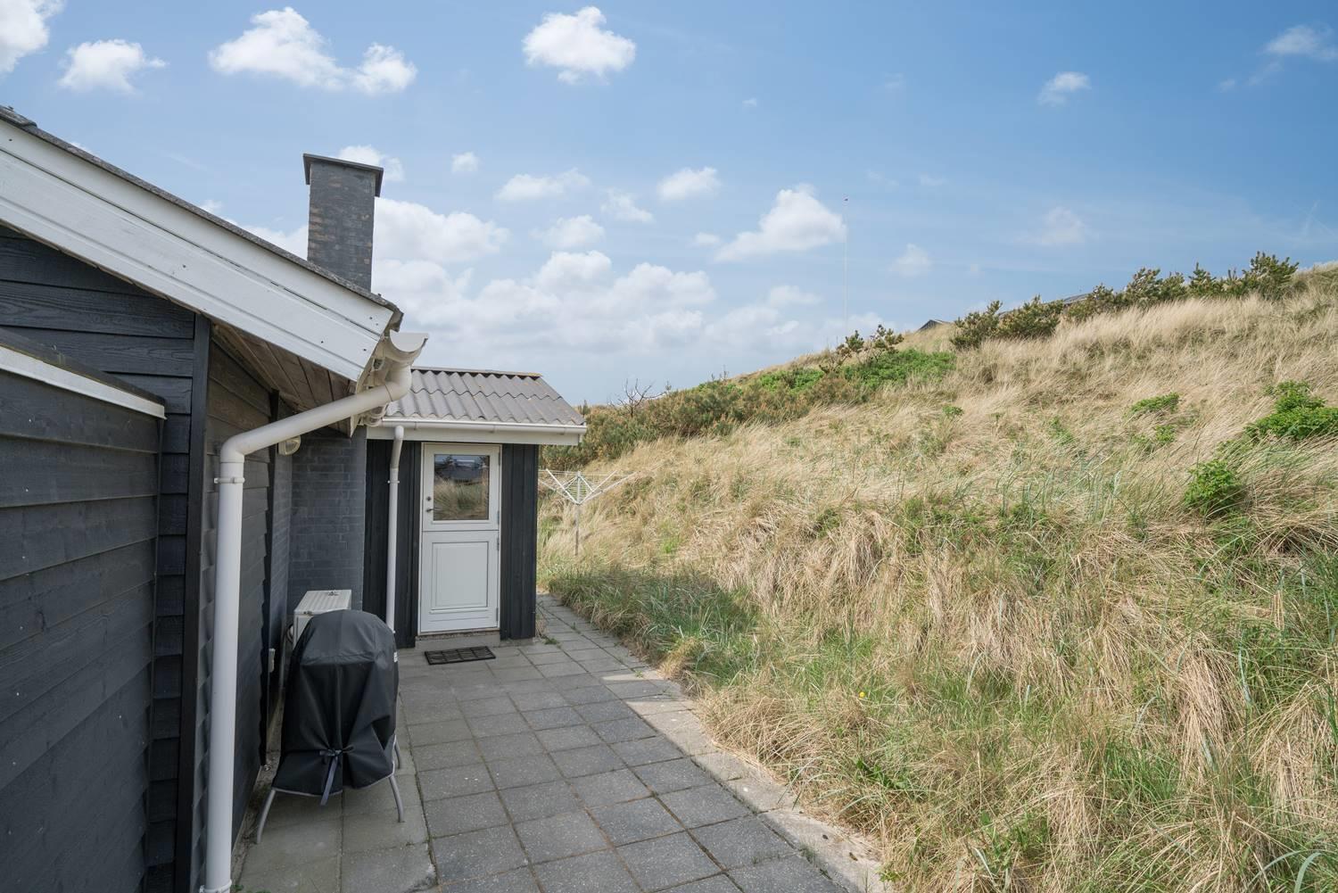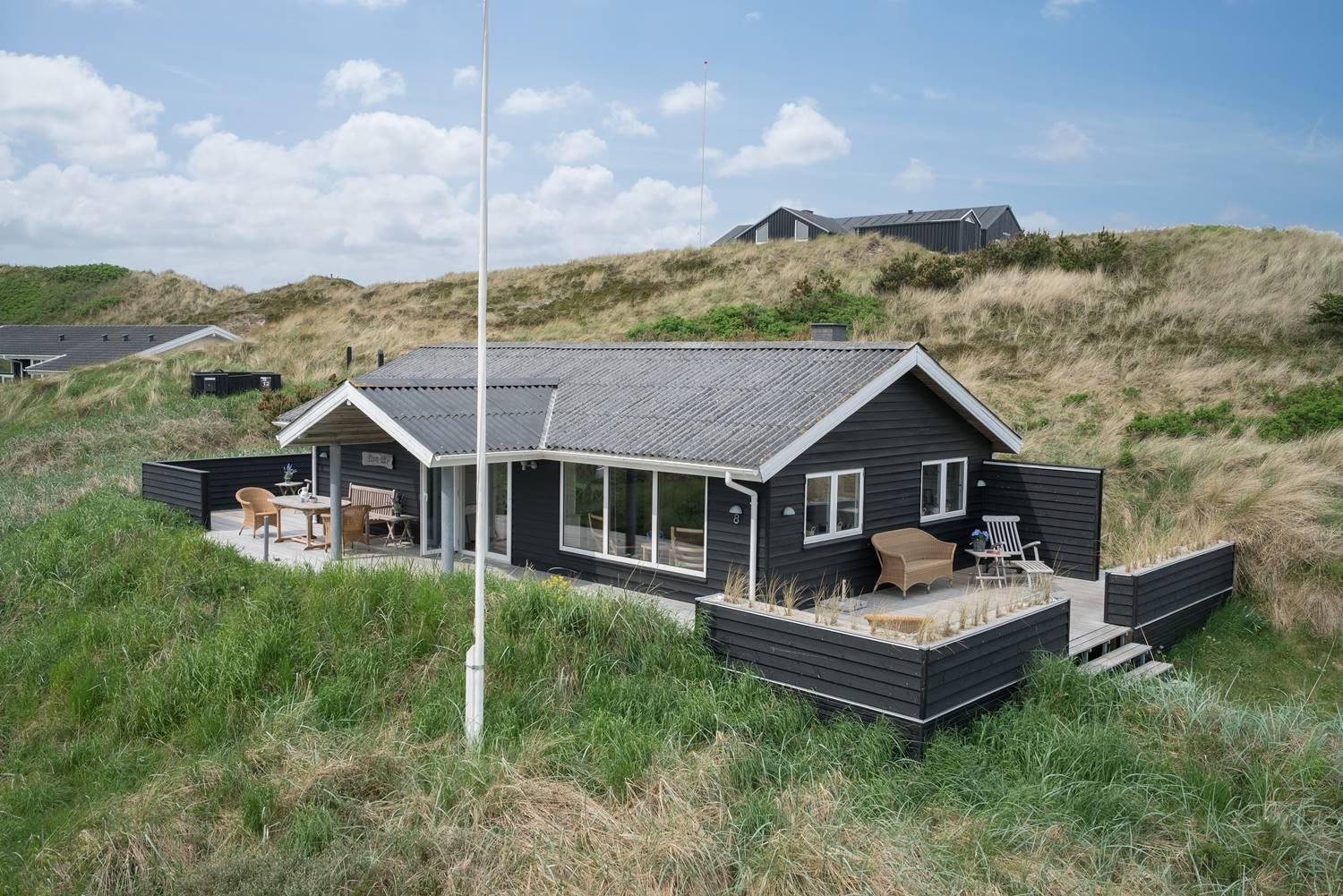Dette flotte og velpassede feriehus ligger på en skøn klitgrund i roligt område og ud til stort klitområde. Indvendigt står huset meget lyst, venligt og indrettet med et personligt præg. Det flotte køkken er kombineret med stuen, som er indrettet med pæne og gode møbler. Et godt feriehus som emmer af hygge.