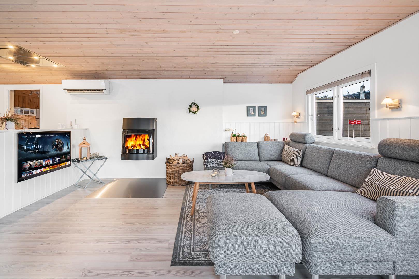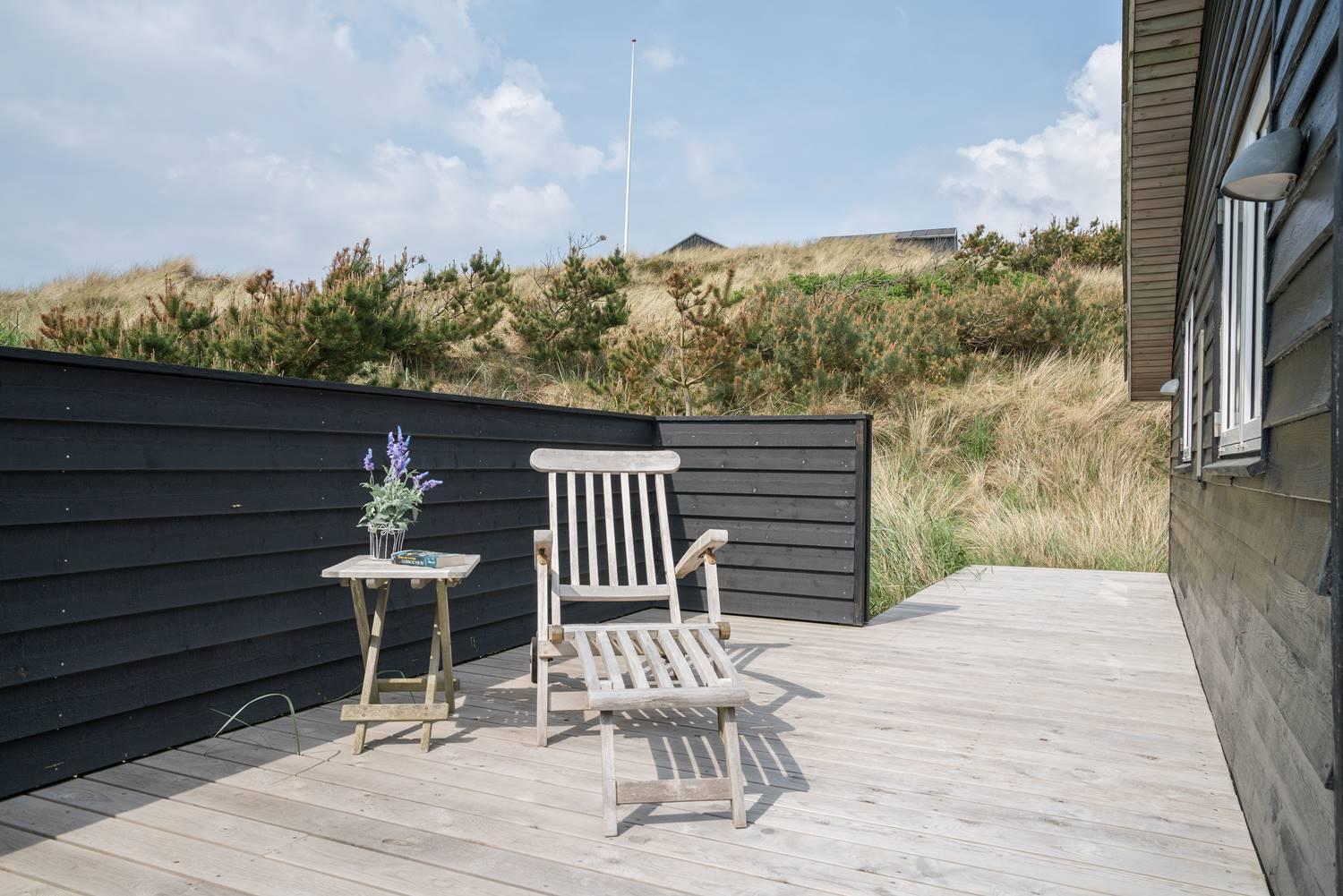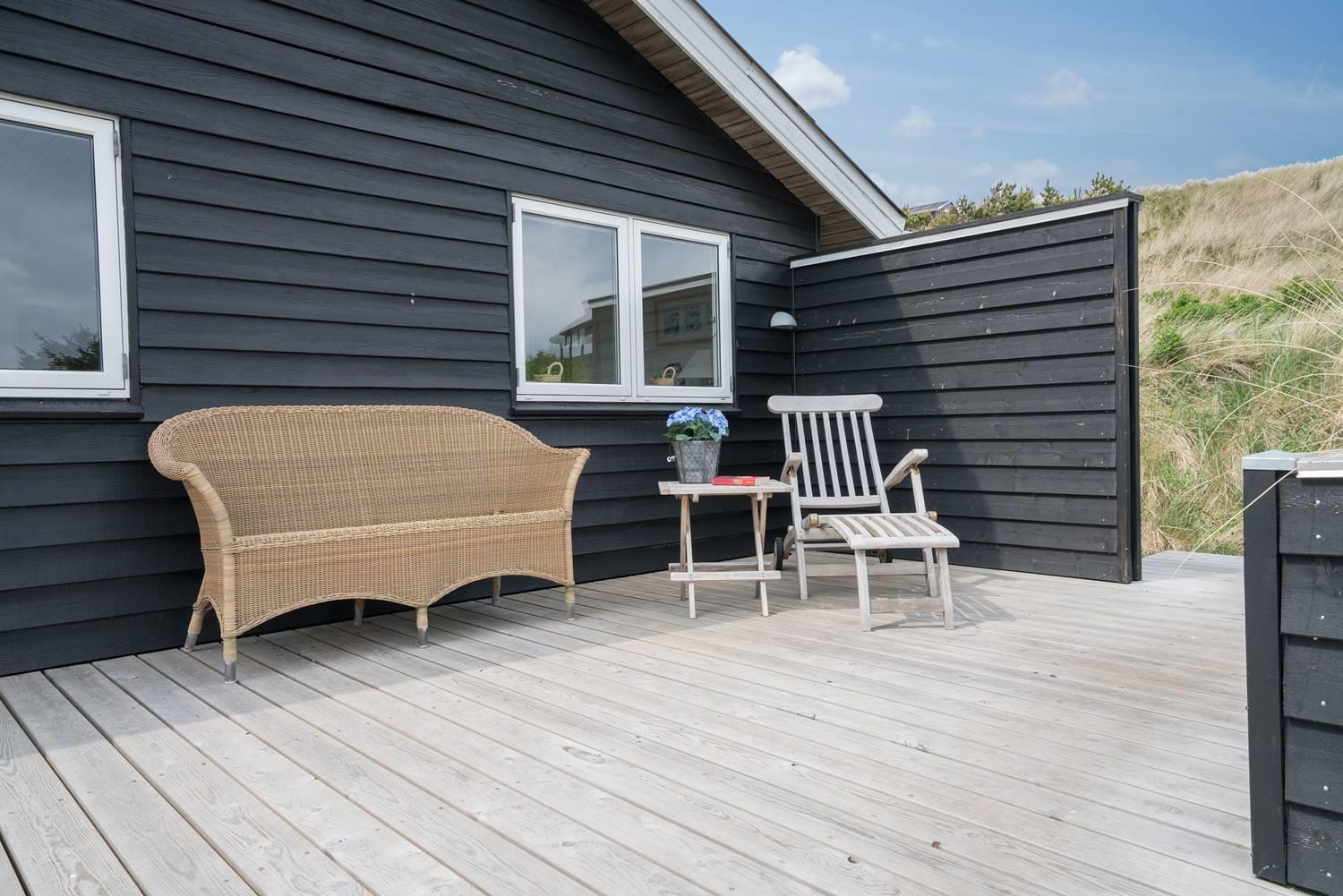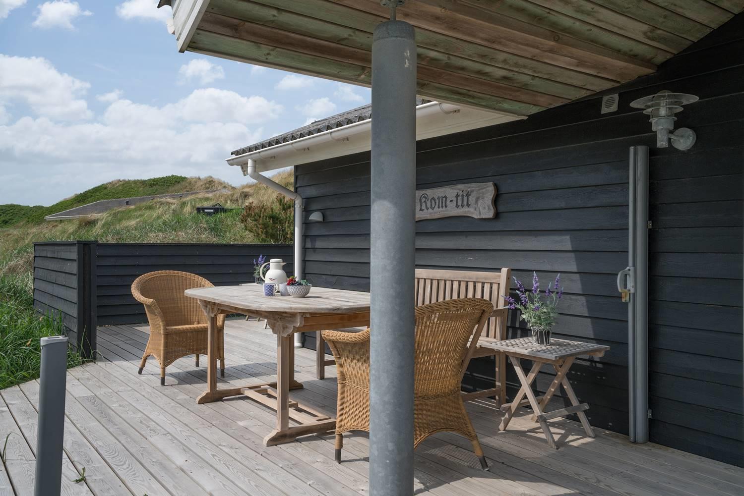 Dette flotte og velpassede feriehus ligger på en skøn klitgrund i roligt område og ud til stort klitområde. Indvendigt står huset meget lyst, venligt og indrettet med et personligt præg. Det flotte køkken er kombineret med stuen, som er indrettet med pæne og gode møbler. Et godt feriehus som emmer af hygge.