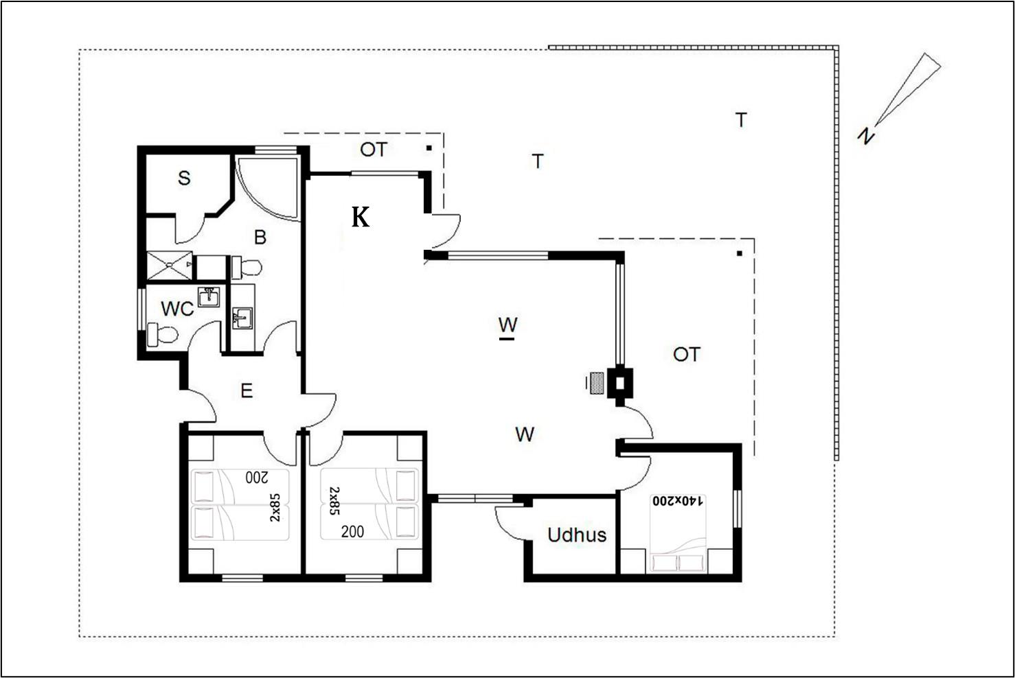 Sengestørrelse: 2 dobbeltsenge med 2 madrasser 85 x 200 cm + 1 dobbeltseng 140 x 200 cm