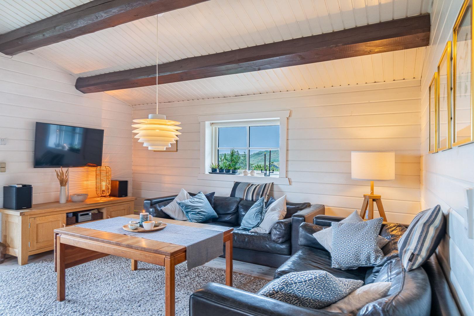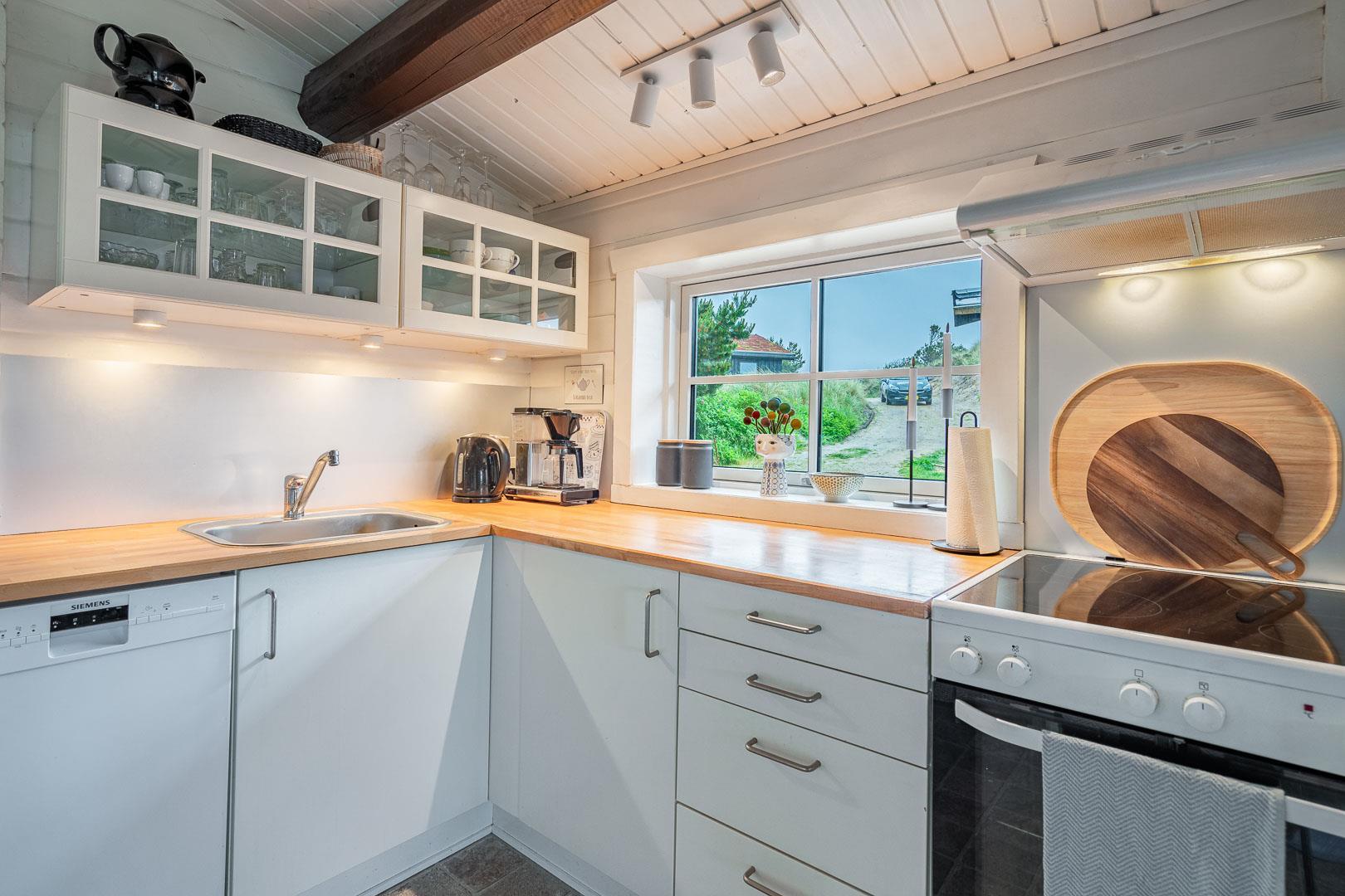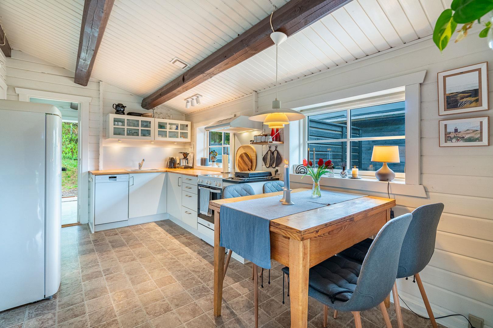 På klitgrund med fantastisk udsigt over området ligger dette hyggelige, feriehus for enden af en blind vej. Huset fremstår overalt lyst og venligt. Fra de skønne ugenerte, træterrasser er der gode muligheder for at nyde den pragtfulde udsigt og solen. Et godt hus til én familie. IKKE RYGER HUS.