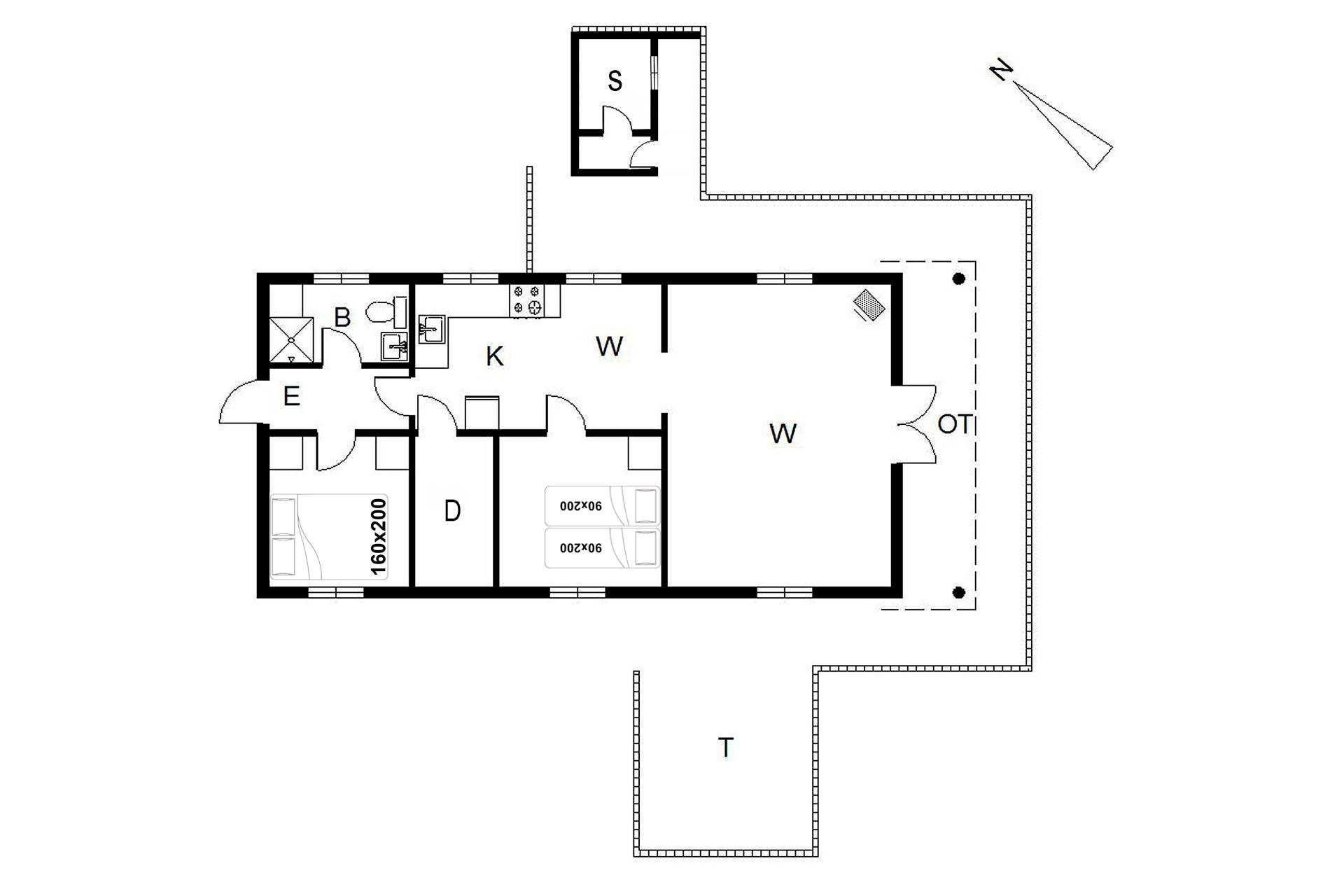 Sengestørrelse: 1 dobbeltseng med 2 madrasser 90 x 200 cm + 1 dobbeltseng 160 x 200 cm.