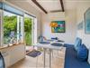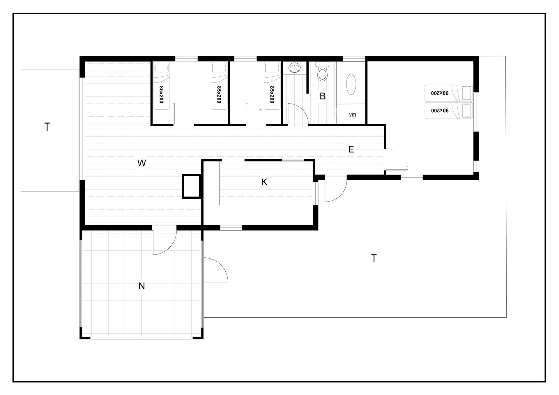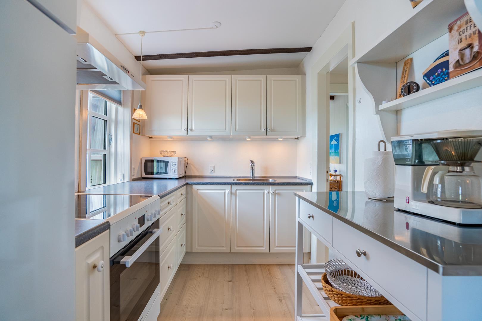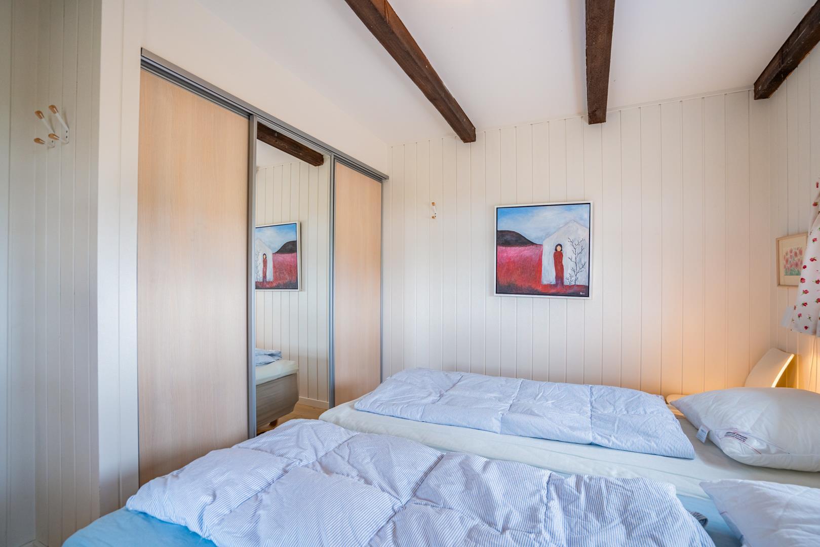 Sommerhuset er indrettet med et funktionelt køkken, et lyst badeværelse og to hyggelige soveværelser med komfortable senge. Her finder du også en dejlig udestue, som giver god mulighed for at nyde udsigten i alt slags vejr. Her vil du også nyde at kunne sætte dig tilbage med en kop kaffe og en god bog. Med flere terrasser omkring feriehuset kan man altid finde et sted at slappe af i solen, eller nyde måltiderne under åben himmel.