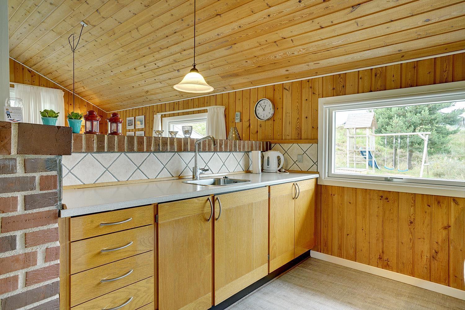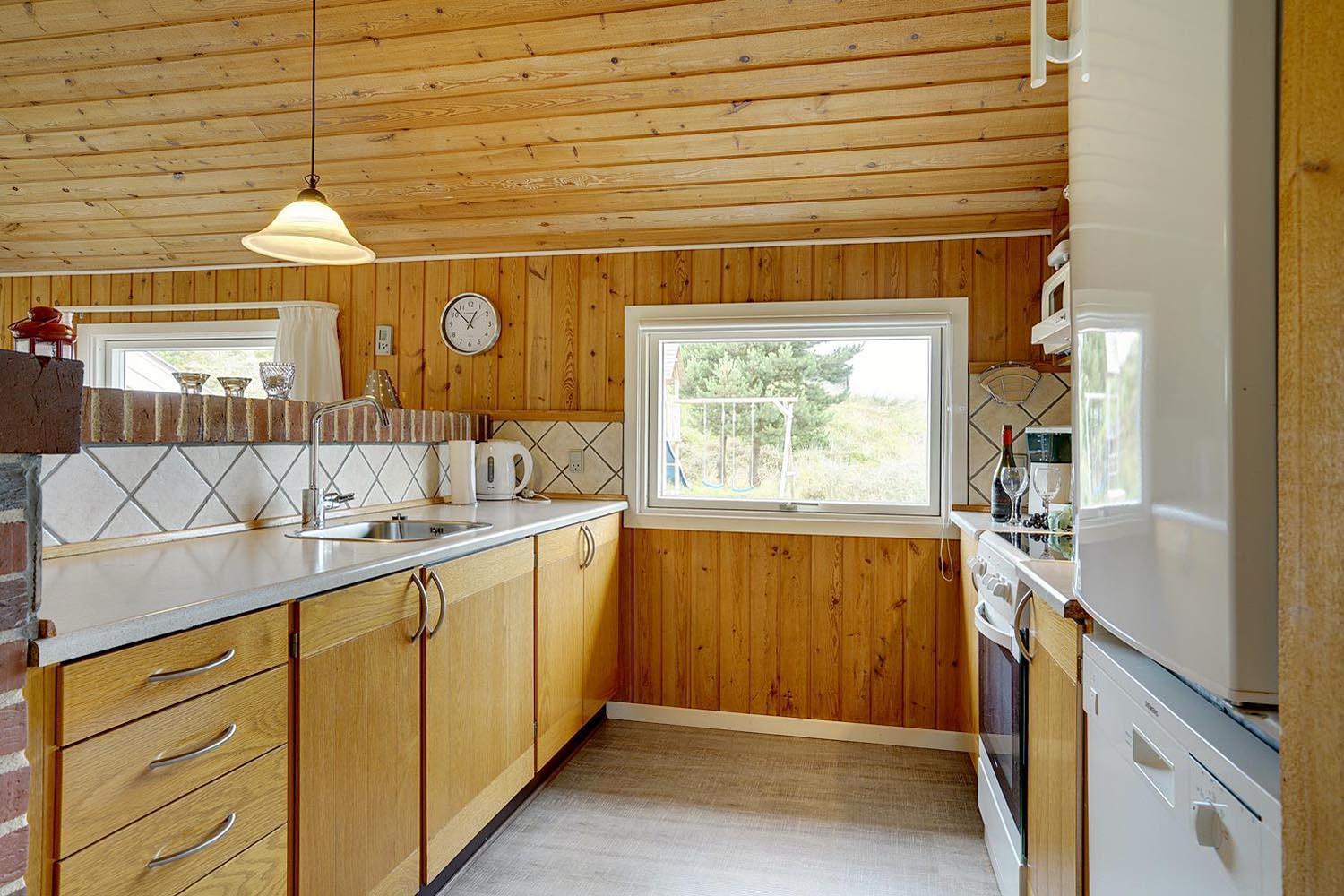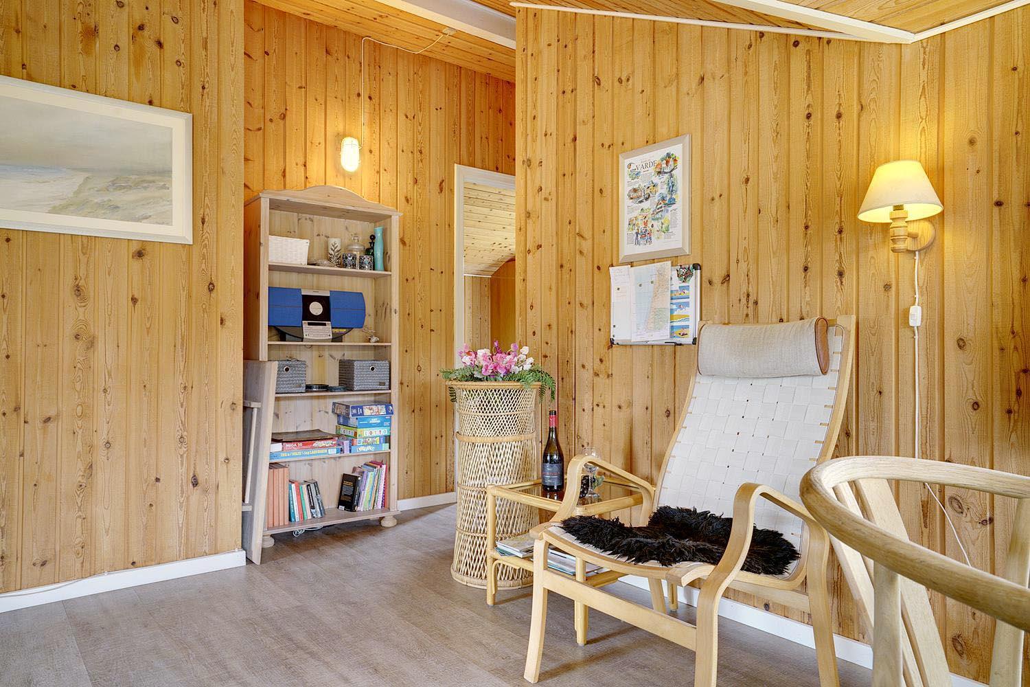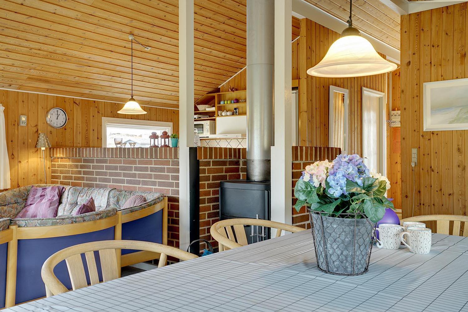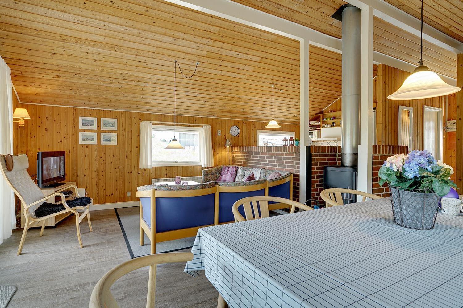 Dejligt og velholdt feriehus beliggende på en helt ugenert naturgrund for enden af blind vej. Flere ugenerede terrasser omkring huset. Nyere badeværelse med gulvvarme og sauna. Veludstyret køkkenet med bl.a. opvaskemaskine og mikrobølgeovn. Hyggelige opholdsstue indrettet med gode møbler og brændeovn. Til børnene er der sandkasse og gynge.