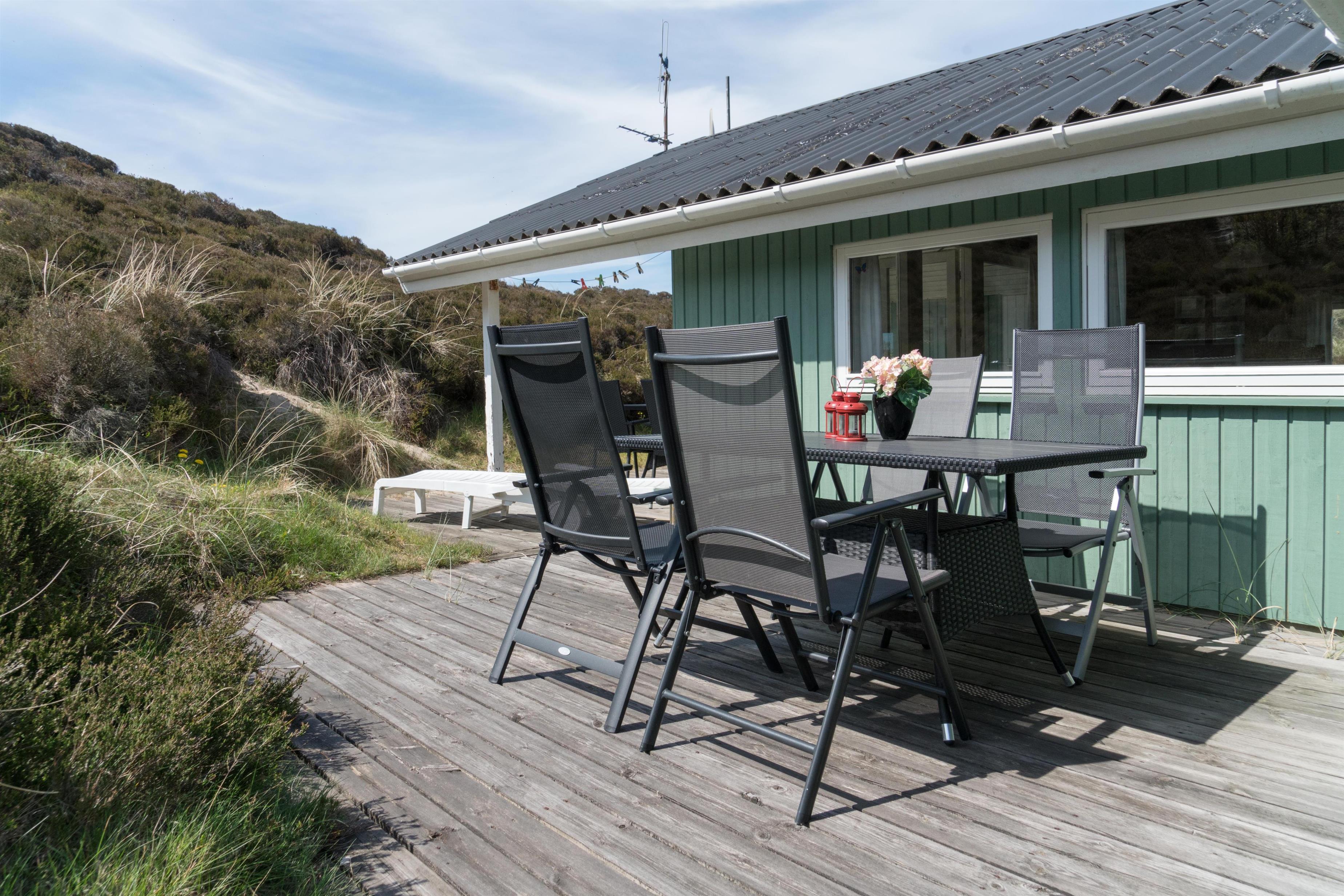 Hyggeligt feriehus med sauna og ugenerede terrasser