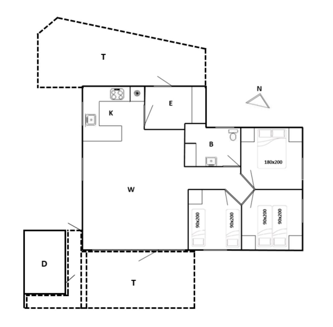 Sengestørrelser: 1 dobbeltseng med 2 madrasser á 90 x 200 cm + 1 dobbeltseng 180 x 200 cm + 2 enkeltsenge 90 x 200 cm.