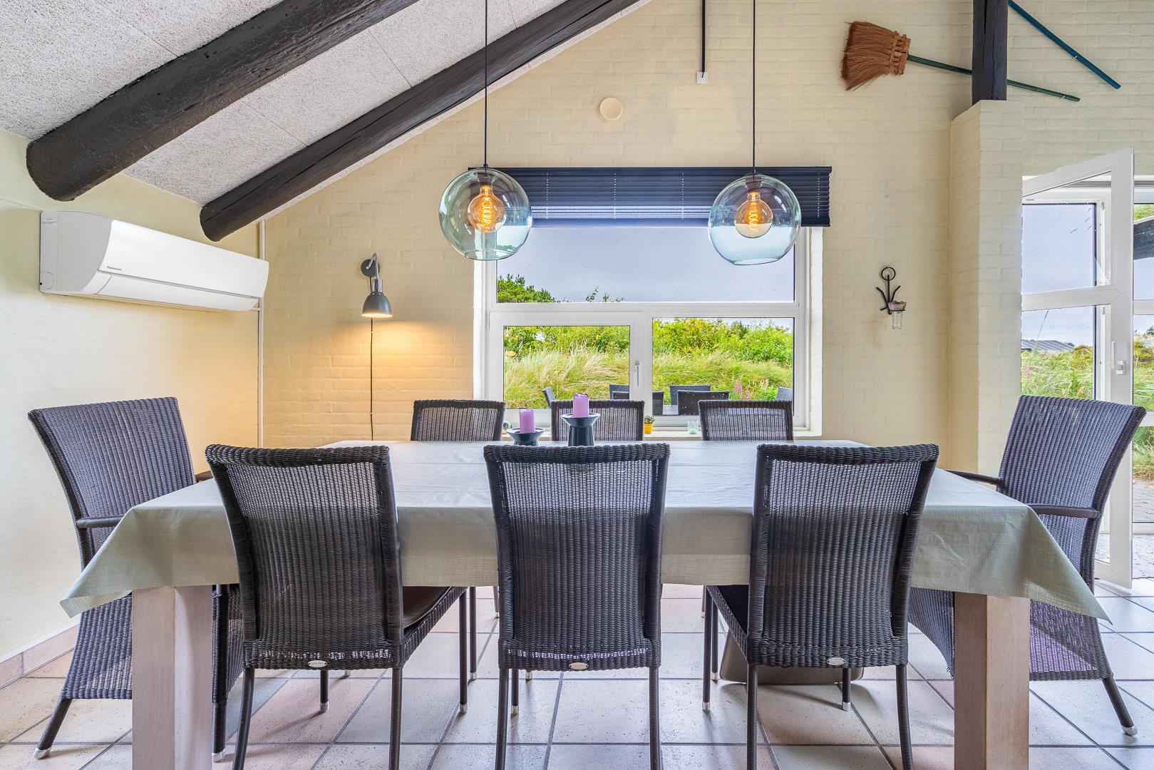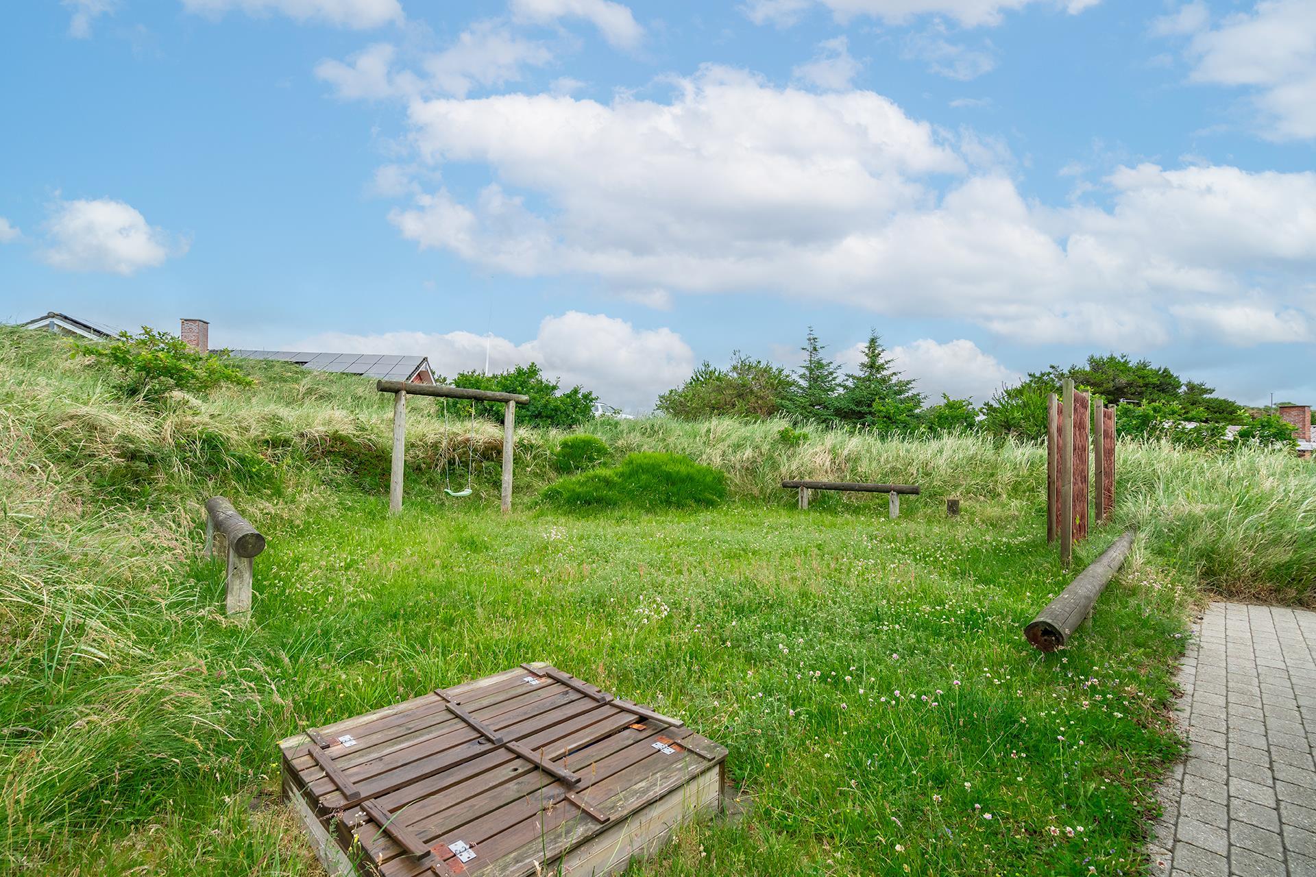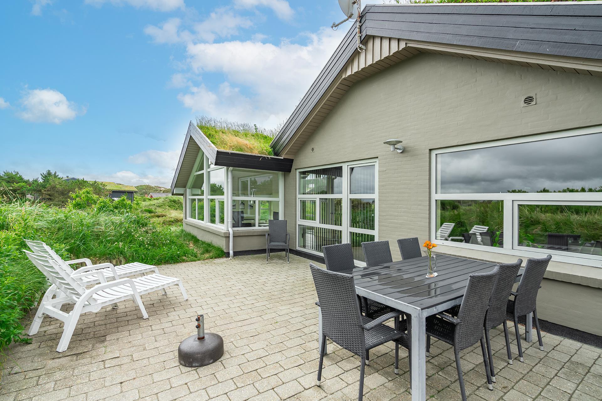 Udenfor finder du en dejlig stor og delvist overdækket terrasse – så her er gode muligheder for at nyde solens varme stråler eller finde en plads i skyggen hvis det skulle blive for varmt. Et dejligt sommerhus til familien i Henne Strand - ideelt placeret tæt på både strand og bymidte.