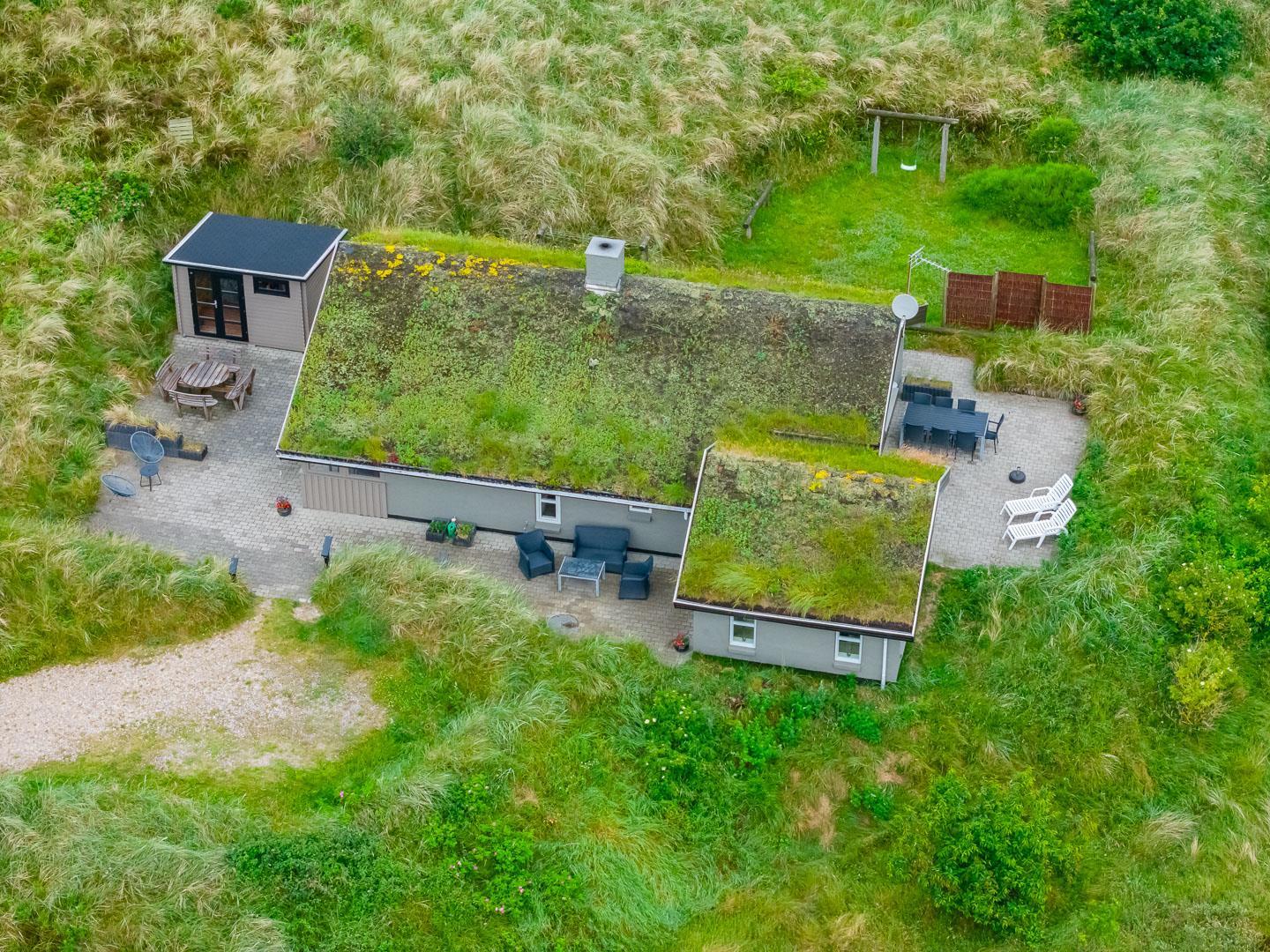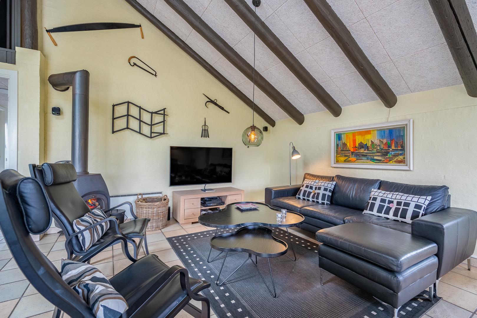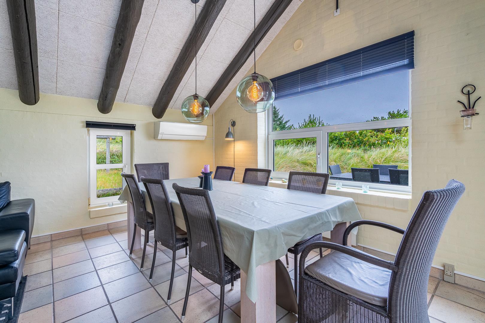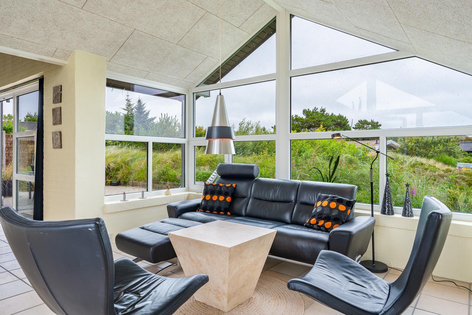 Udenfor finder du en dejlig stor og delvist overdækket terrasse – så her er gode muligheder for at nyde solens varme stråler eller finde en plads i skyggen hvis det skulle blive for varmt. Et dejligt sommerhus til familien i Henne Strand - ideelt placeret tæt på både strand og bymidte.