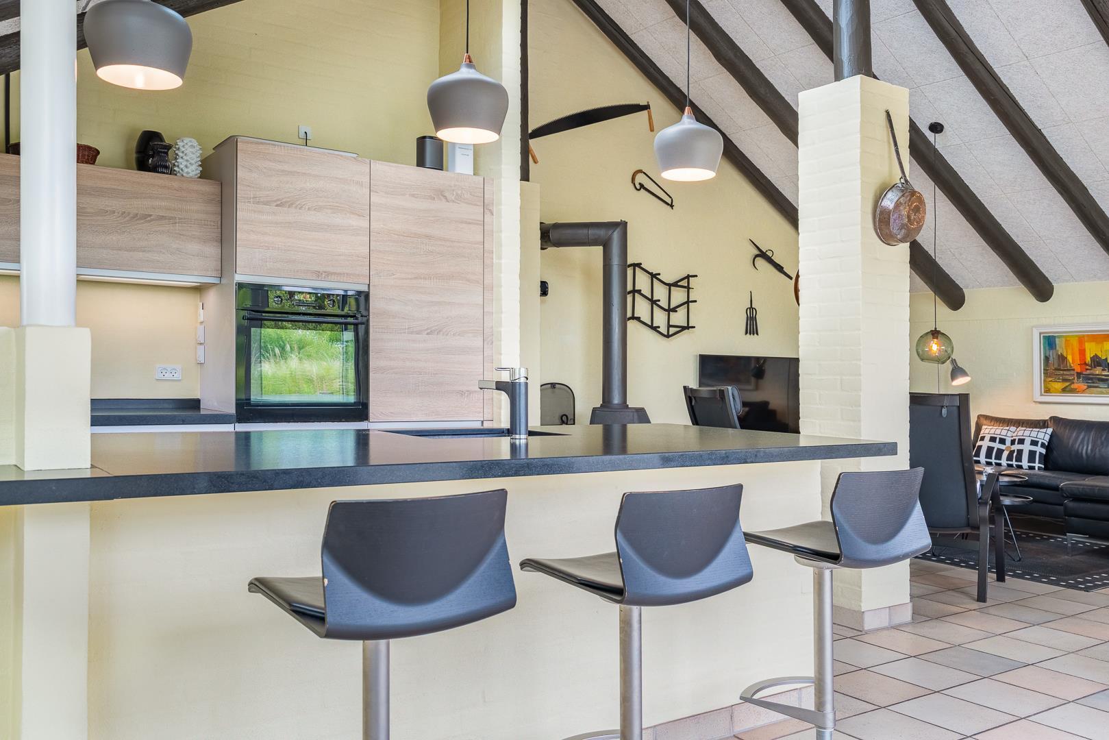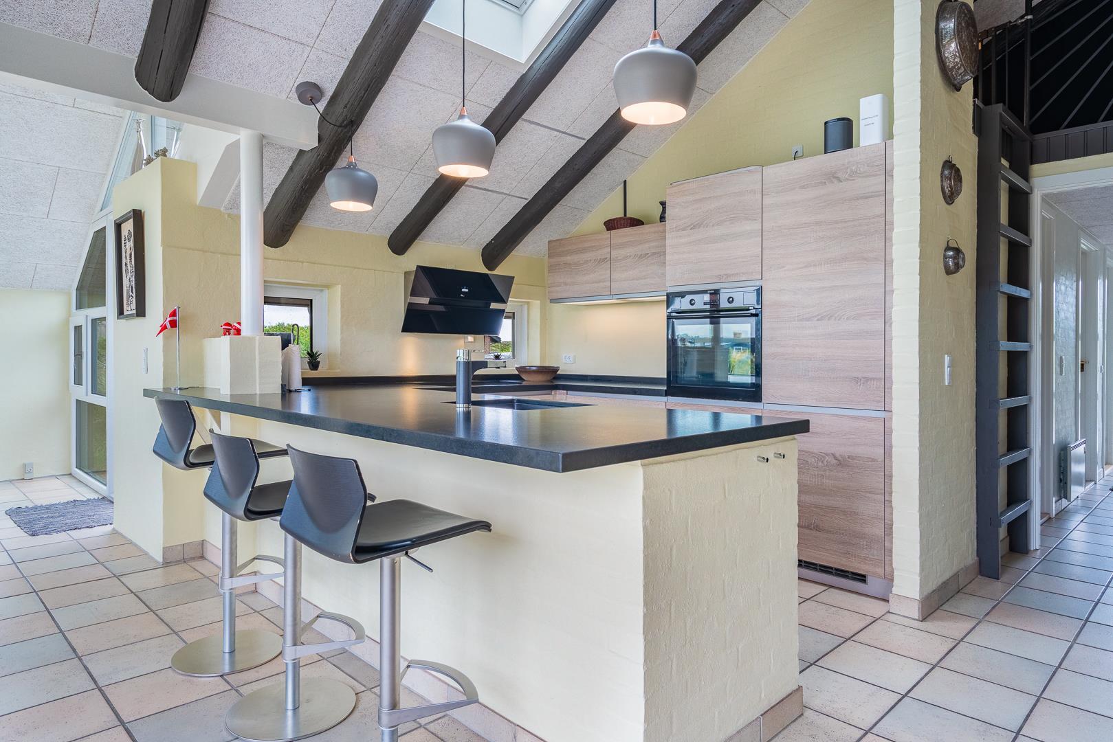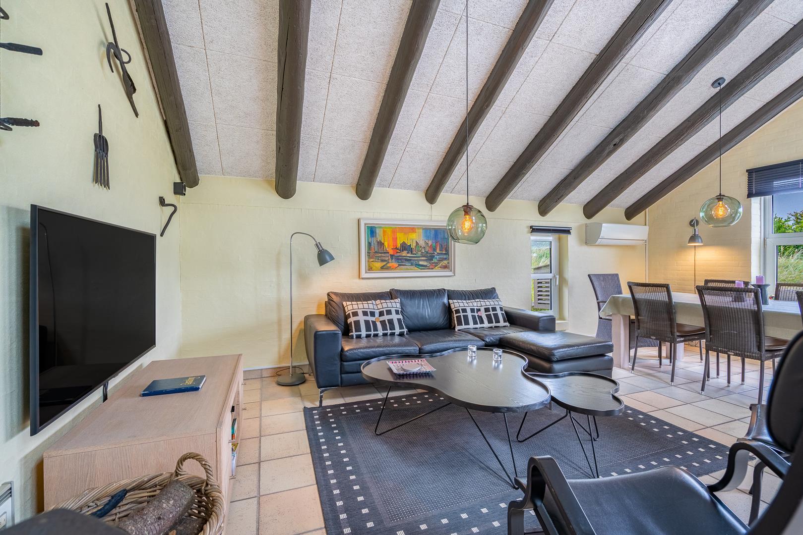 I Henne Strand ved Vestkysten ligger dette charmerende sommerhus på en stor naturgrund. Mens du tilbereder maden, kan ungerne sidde og tegne ved barstolene i det fine køkken. Køkkenet åbner op til en hyggelig tv-stue og en lys stue med store vinduer, der giver en fantastisk udsigt til den omkringliggende natur. Badeværelset er udstyret med gulvvarme. Med tre dejlige soveværelser, herunder to værelser med dobbeltsenge og et værelse med en køjeseng er her plads til 6 personer. Herudover finder du en dejlig stor hems fyldt med legetøj og spil, perfekt med ekstra plads hvis du booker dette skønne sommerhus i Henne Strand til din næste familieferie.