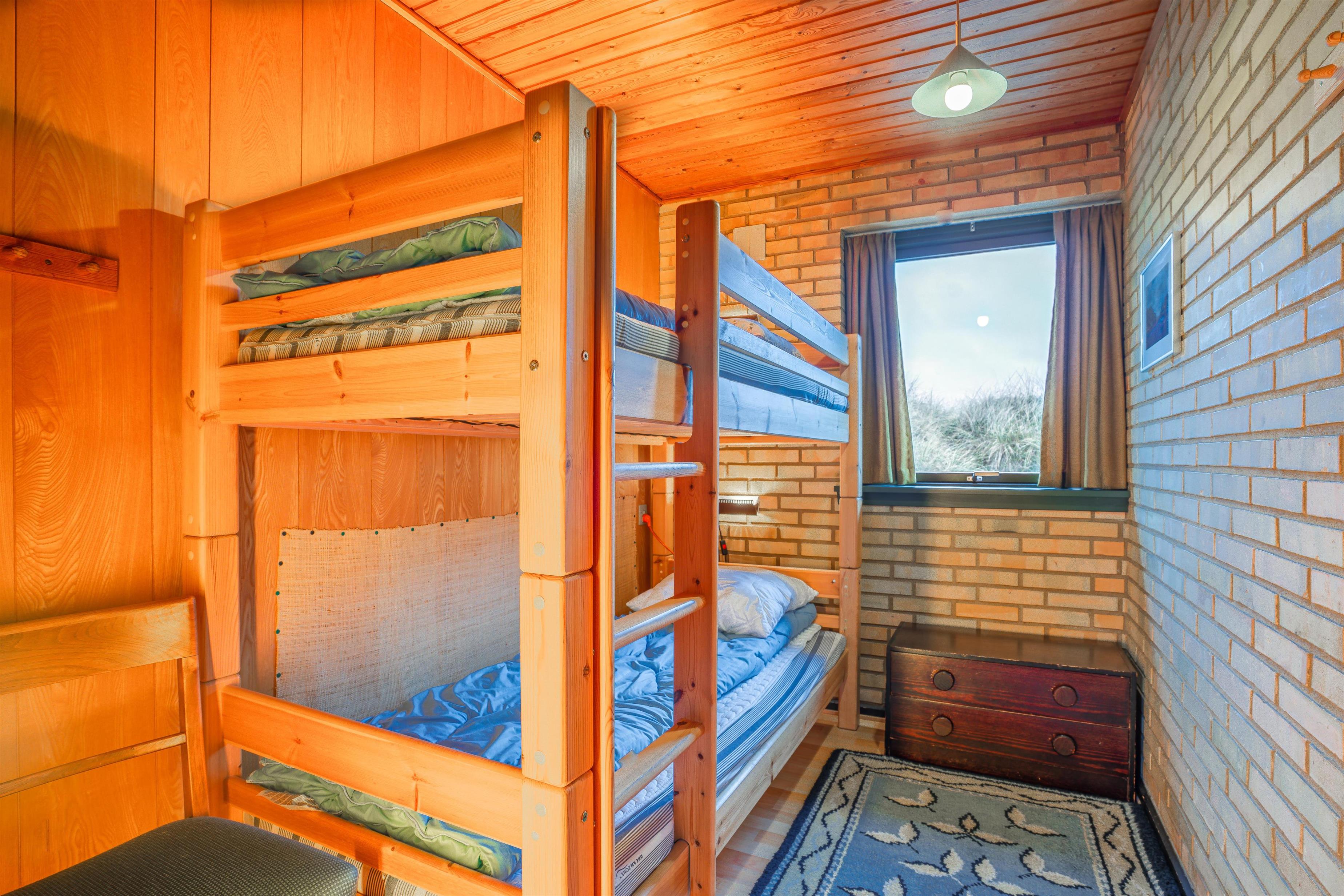 Sengestørrelse: 1 dobbeltseng med 2 madrasser 80 x 200 cm + 2 enkeltsenge 80 x 200 cm + 1 køjeseng 80 x 190 cm.
