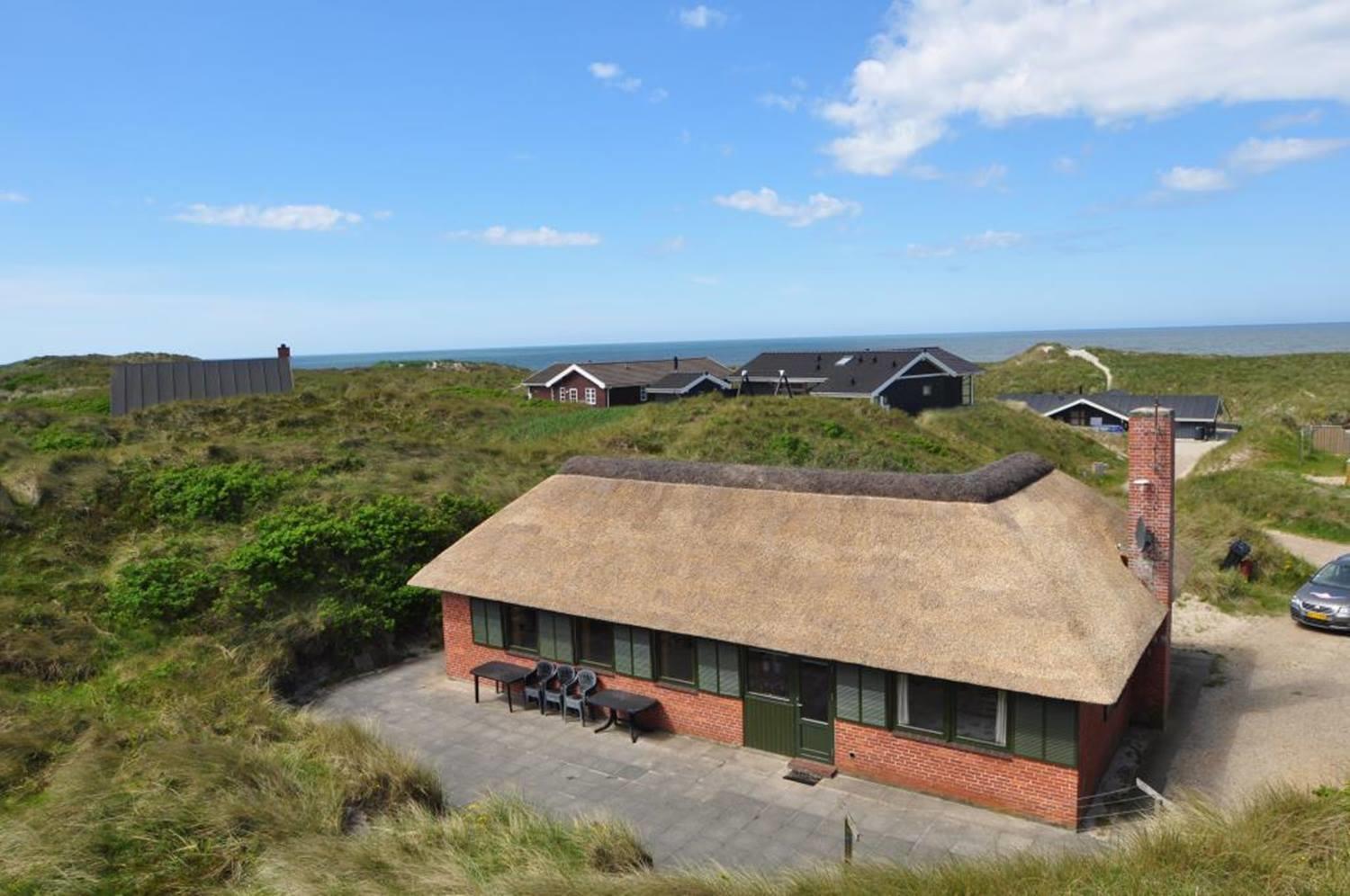 Charmerende feriehus med stråtag, tæt på Henne Strands brede sandstrand og rolige klitområder.