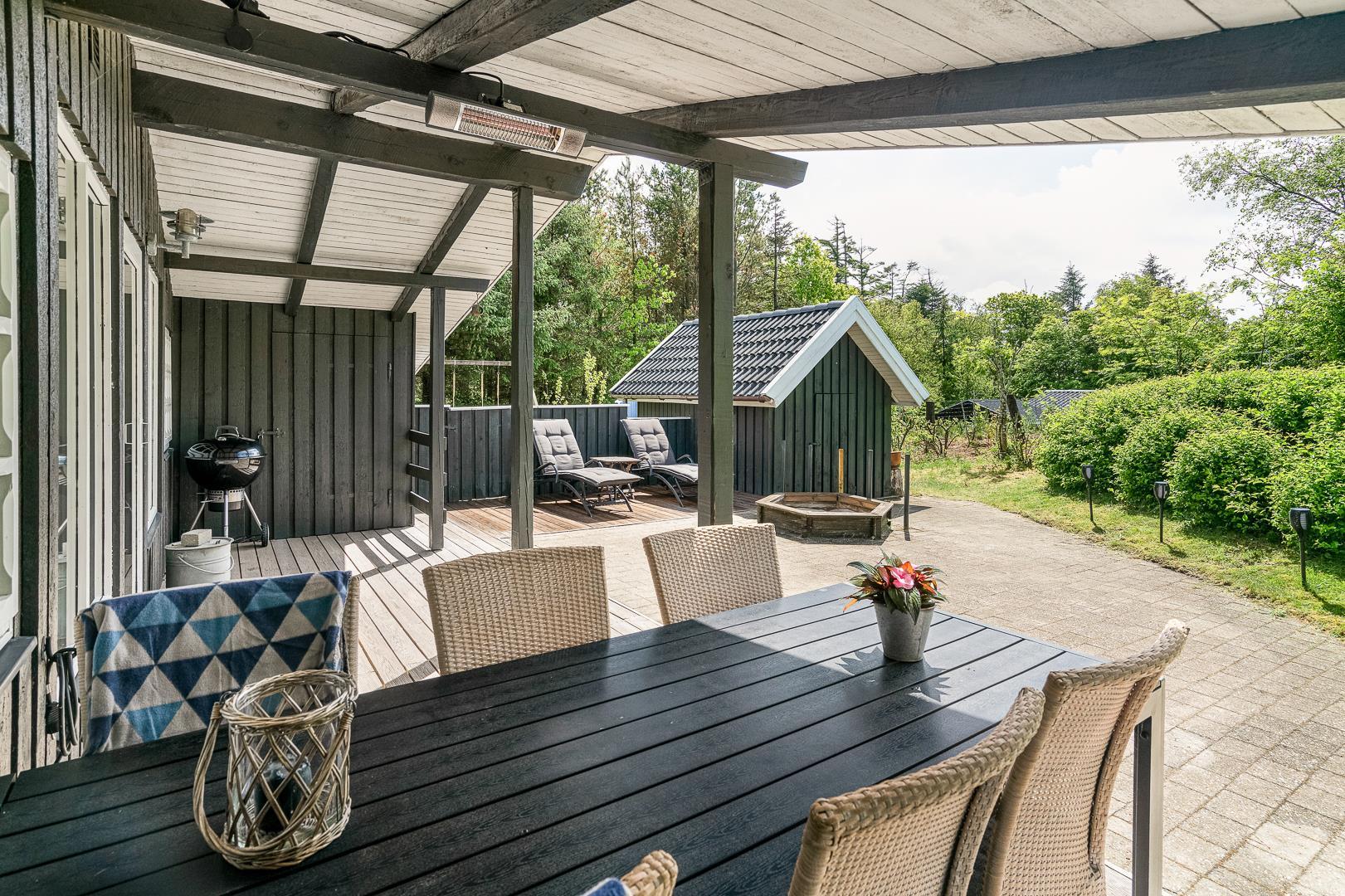 Hyggeligt sommerhus i Henne Strand med sauna, overdækket terrasse og indhegnet have til både børn og hunde.