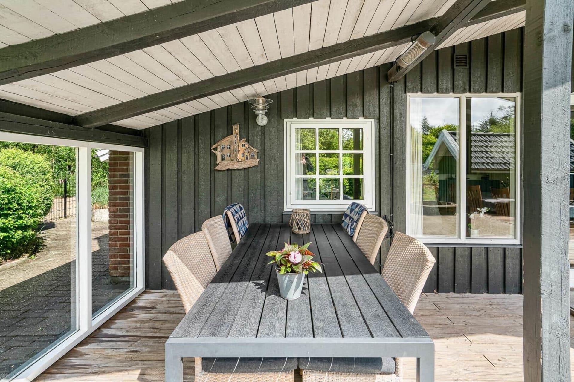Der er fra stuen udgang til en stor ugeneret og delvis overdækket terrasse, som er ideel til børnefamilierne og hundeejerne, der trygt kan boltre sig på den indhegnede grund.