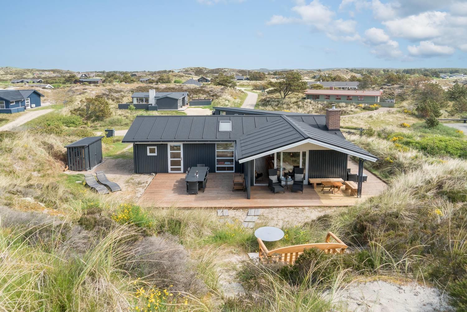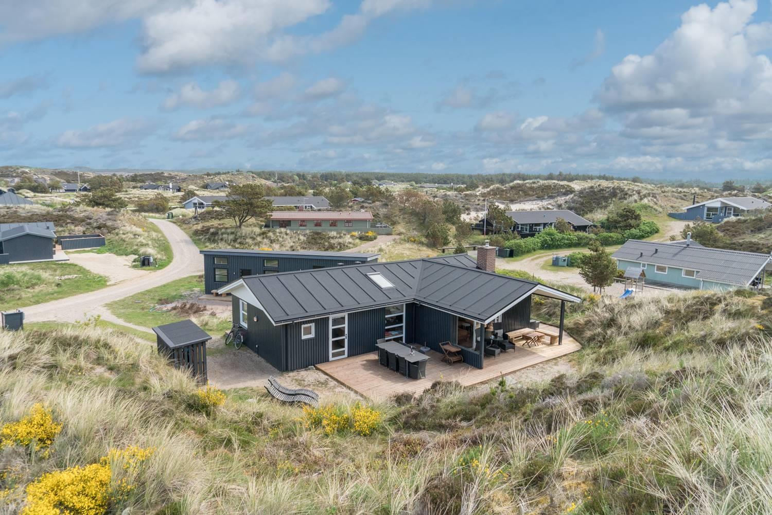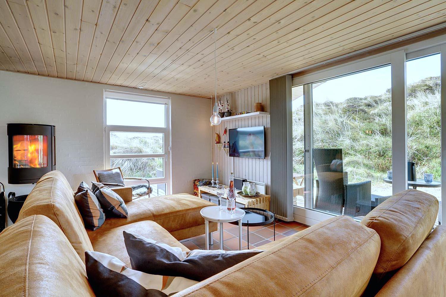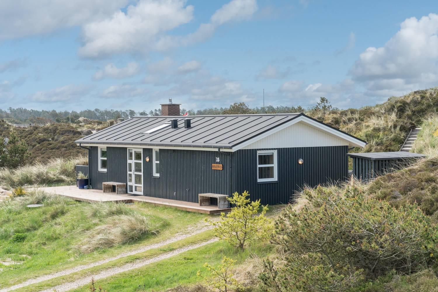 Hyggeligt feriehus med sauna og udsigt over klitterne i Henne Strand, perfekt til en afslappende ferie.