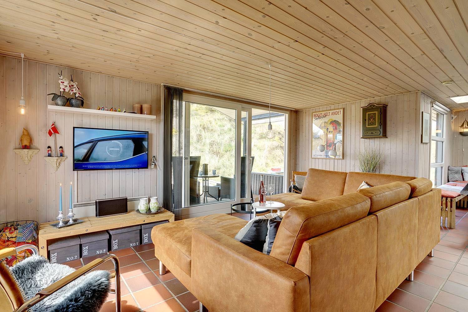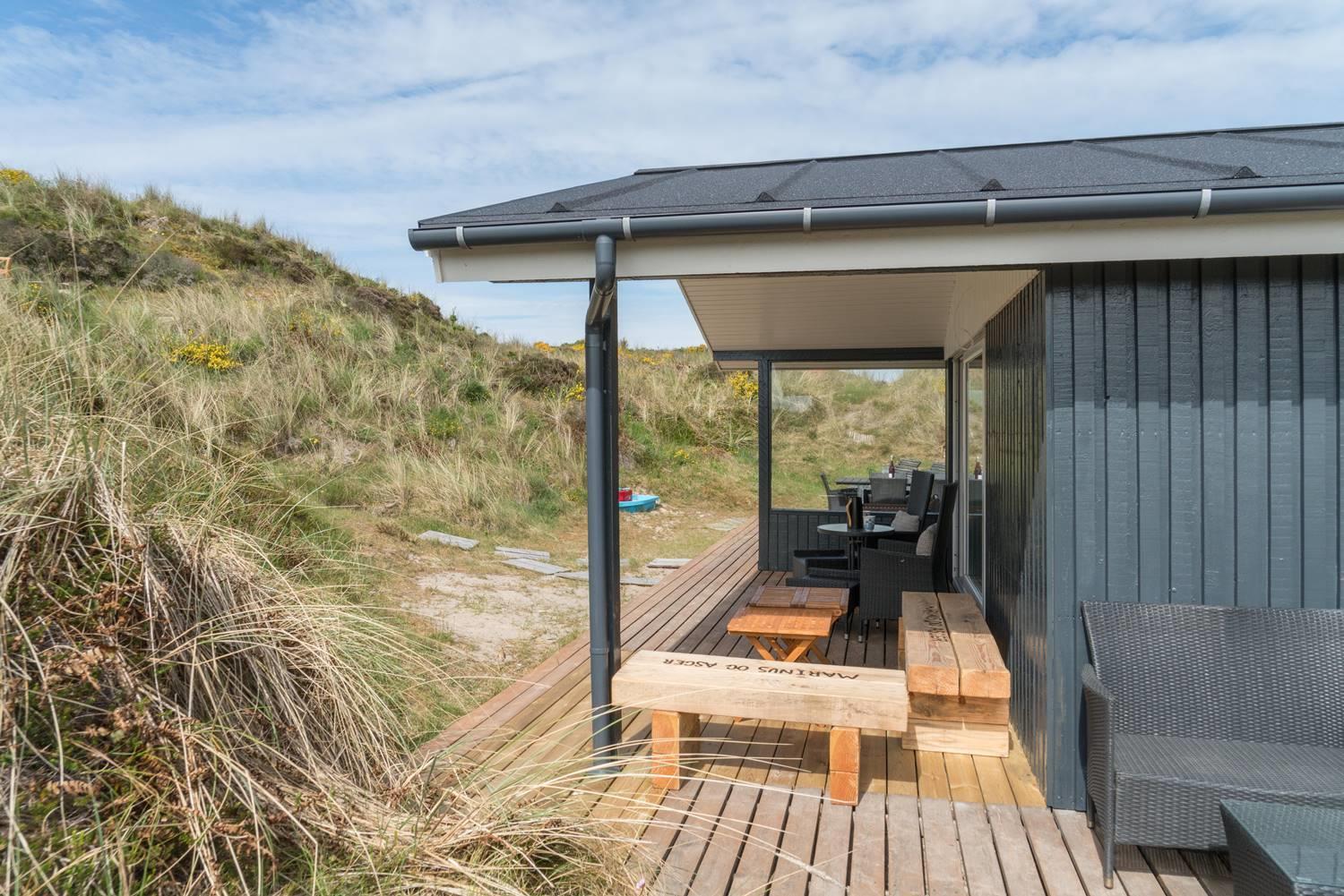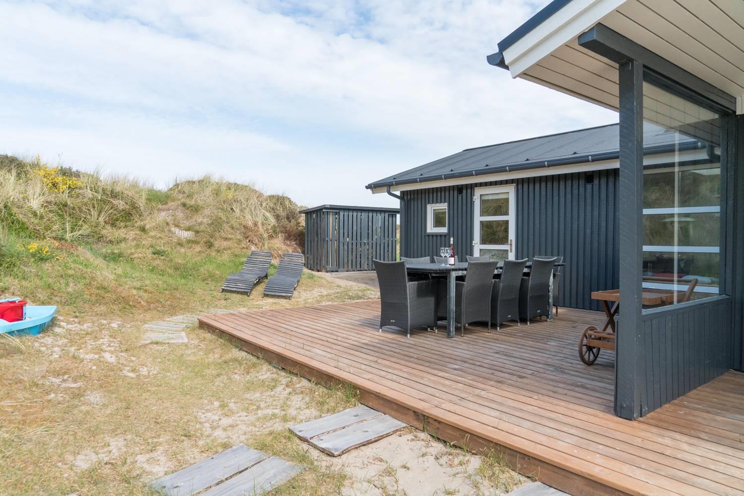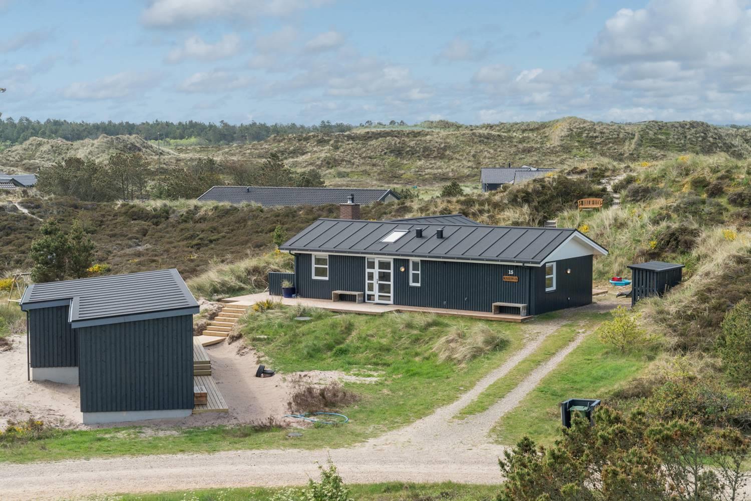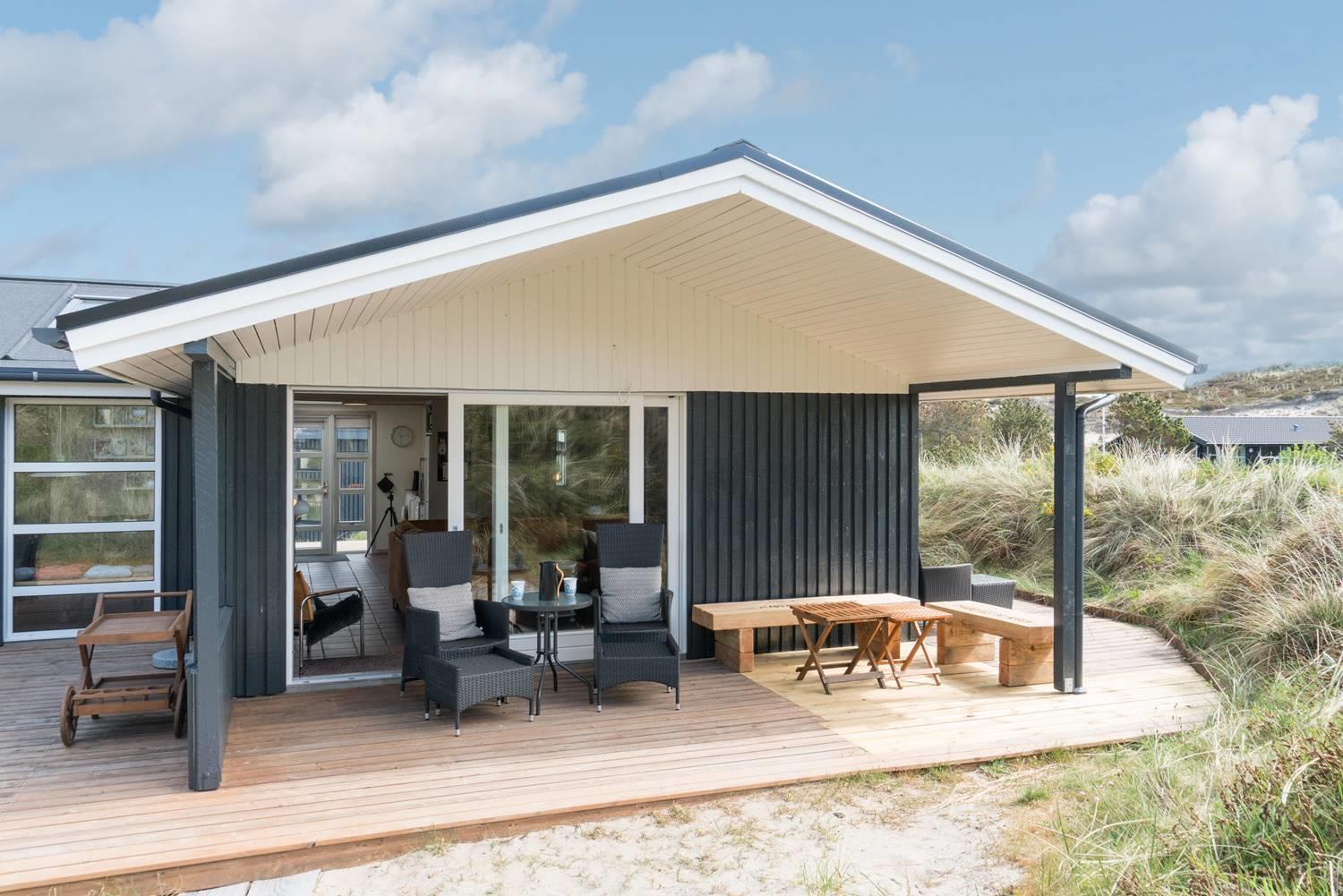 Hyggeligt feriehus med sauna og udsigt over klitterne i Henne Strand, perfekt til en afslappende ferie.