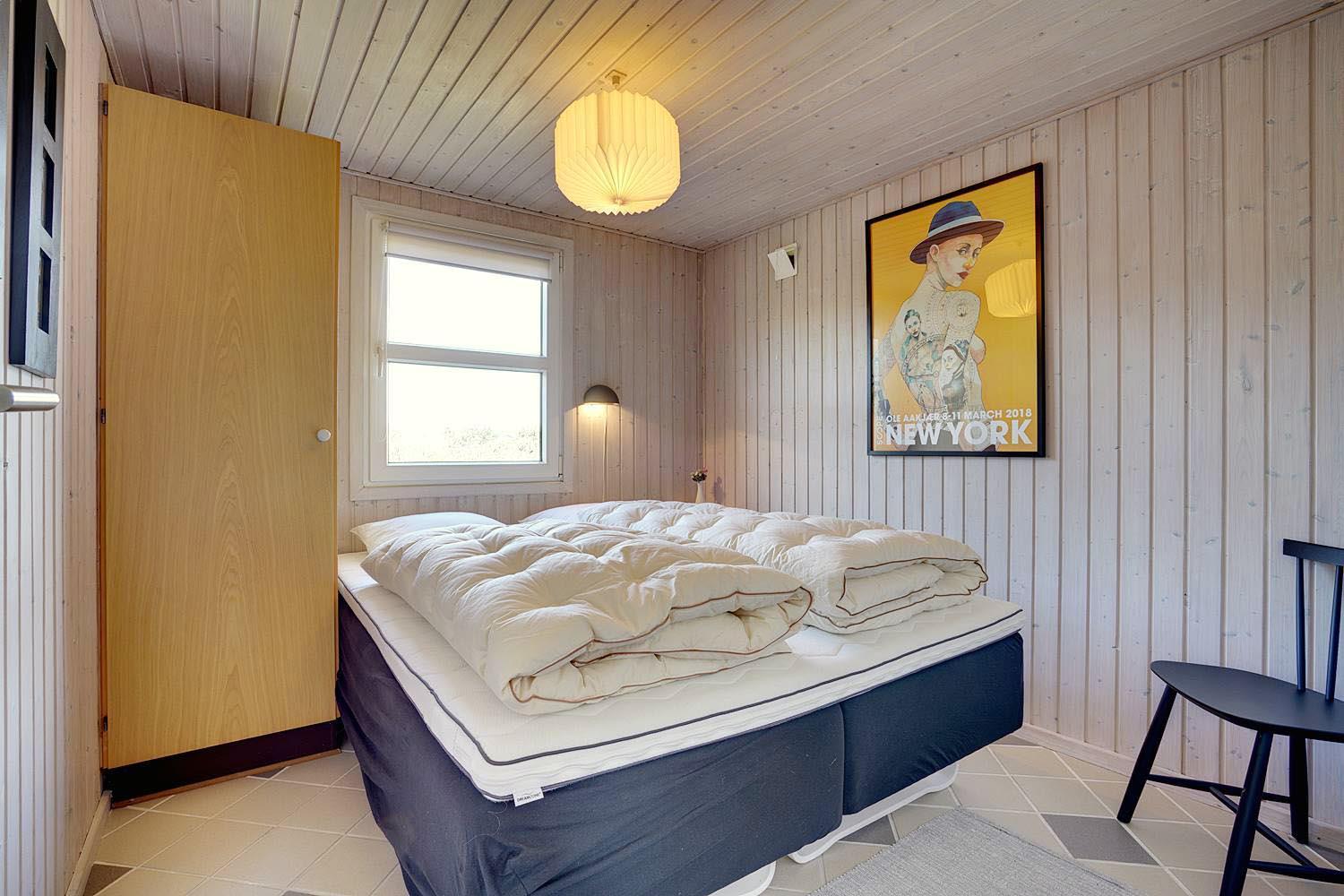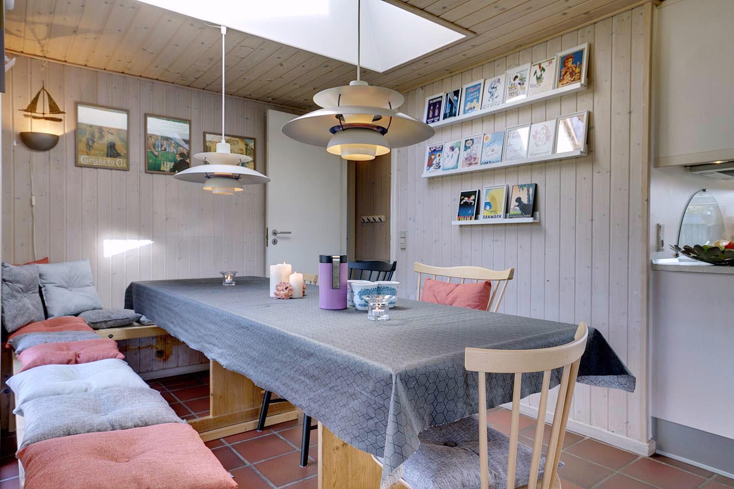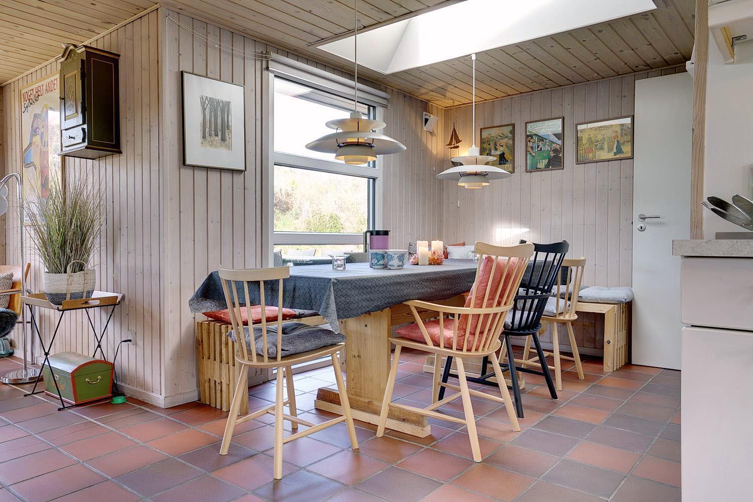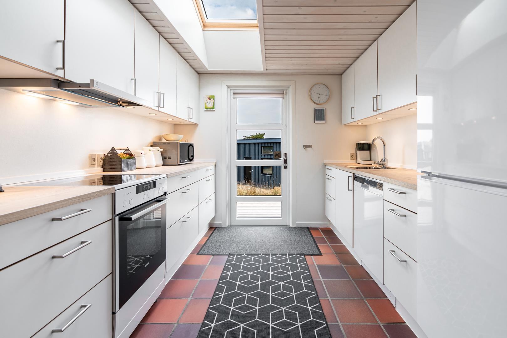 Velholdt og hyggelig indrettet feriehus med sauna beliggende på en pragtfuld, læfyldt og ugeneret klitgrund. Huset er lyst og venligt indrettet med veludstyret køkken i åben forbindelse med stuen. Fra stuen er der udgang til en skøn delvist overdækket terrasse. Her finder I også en trappe op til en bænk på den omkringliggende klit, hvorfra udsigten kan nydes i fulde drag. Huset har energivenlig varmepumpe og brændeovn. Lyst badeværelset, som er udstyret med en sauna. 3 gode soverum og god skabsplads. Stort depotrum til cykler m.m. Der er ekstra køleskab i depotrum'
