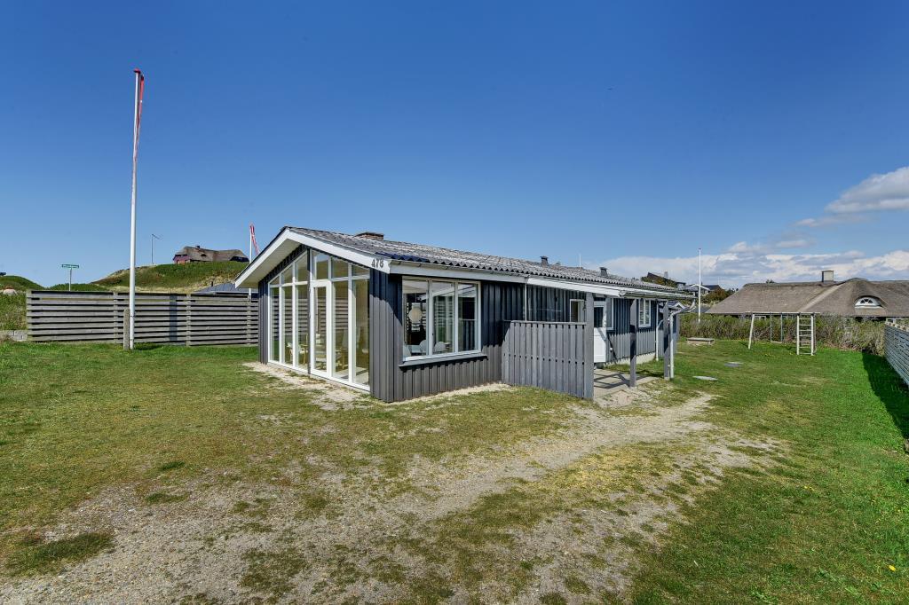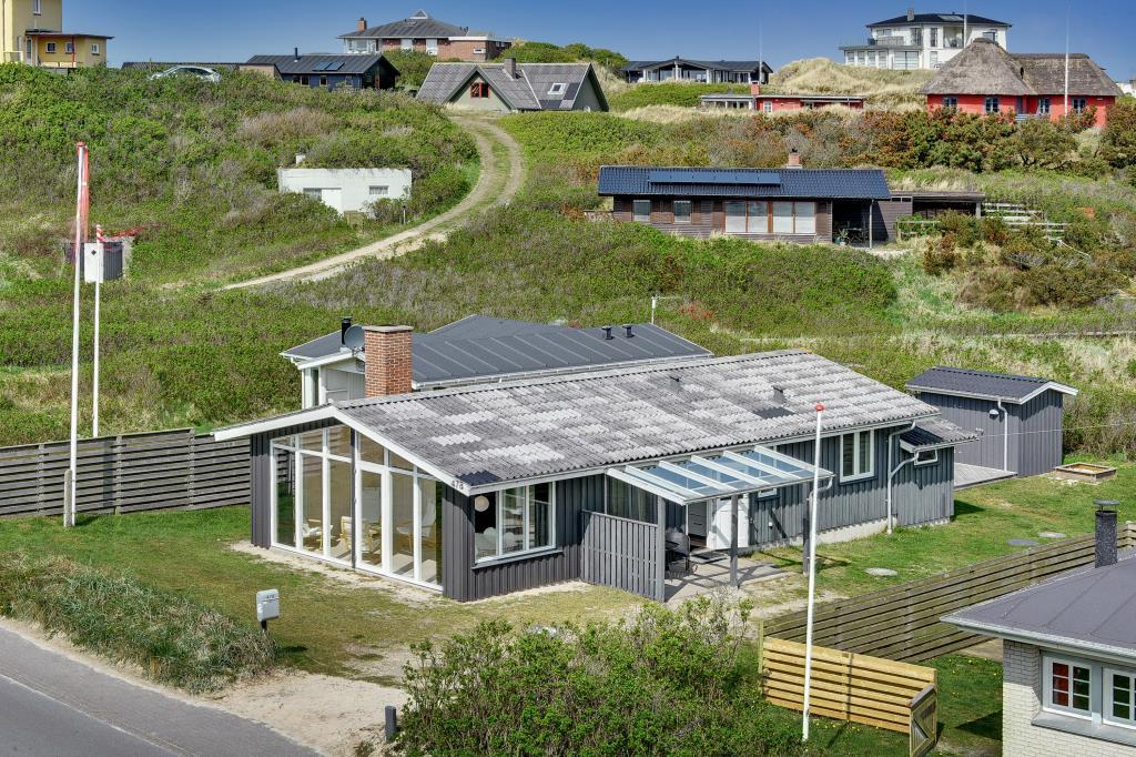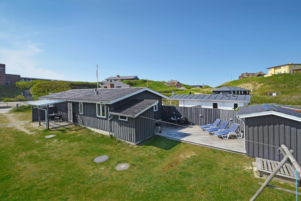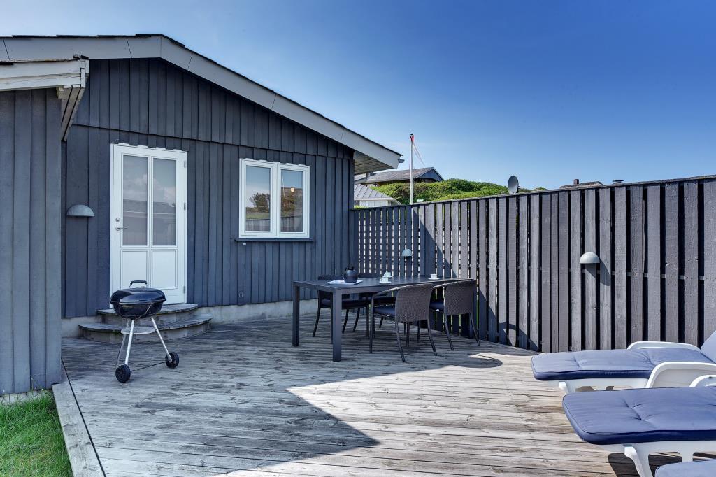 Skønt feriehus i Henne Strand med naturgrund, tæt på strand og by, åben terrasse og udestue med udsigt.