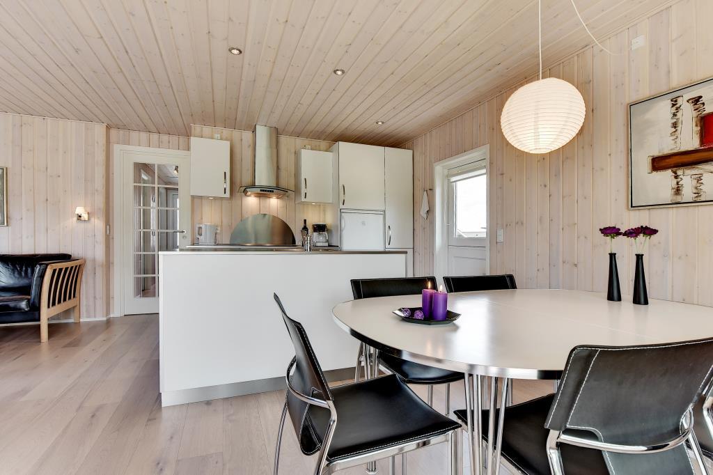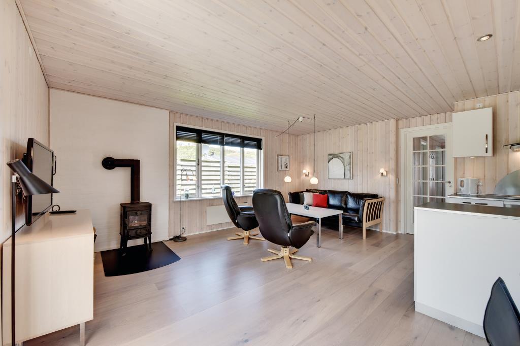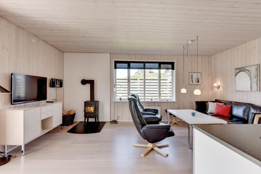 Skønt og velpasset feriehus, beliggende på en naturgrund, tæt på by og en af Danmarks bedste badestrande. Til huset hører åben og overdækket terrasse, samt udestue med dejlig udsigt. Flot badeværelse med opvarmet klinkegulv samt vaskemaskine. Køkken med opvaskemaskine, mikrobølgeovn, som er i åben forbindelse med den rummelige opholdsstue med brændeovn. De 6 sovepladser fordeler sig på 3 værelser; 2 med dobbeltseng og 1 med 1 køjeseng. Til børnene er der barnestol samt gynge og sandkasse på grunden. Bemærk: Der må ikke grilles på træterrassen.