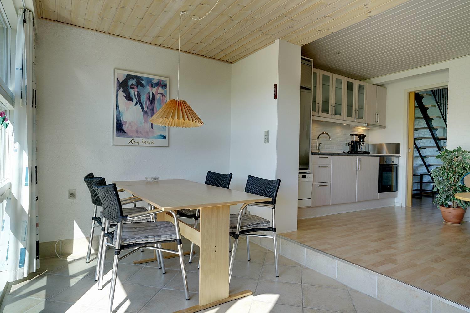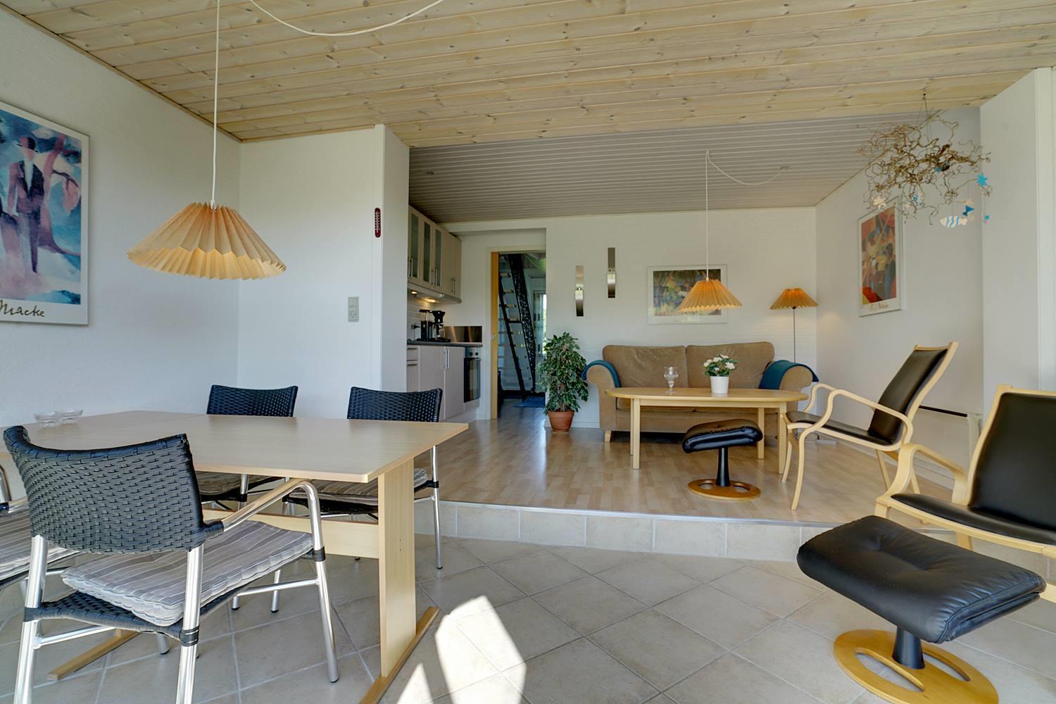 I rolige omgivelser og kun få hundrede meter fra 18 hullers golfbane ligger denne skønne og velpassede muret ferielejlighed i 2 etager. Lejligheden har nyere køkken og er moderne møbleret. Spiseafdeling og sofaafdeling er opdelt med 1 trin ned.