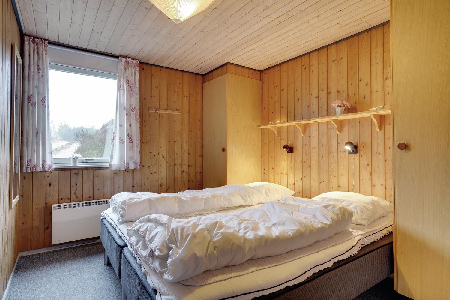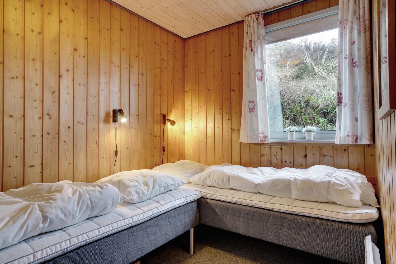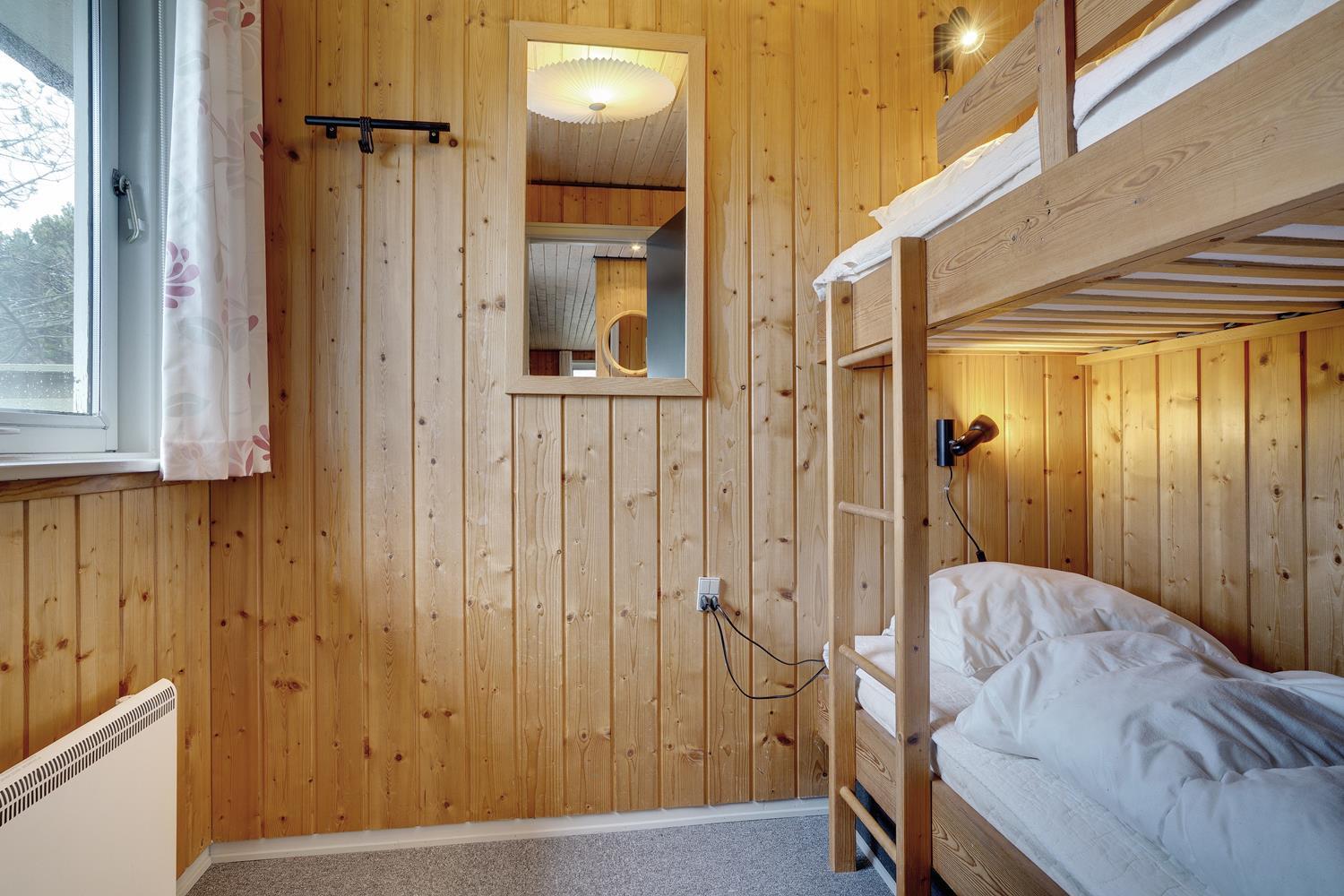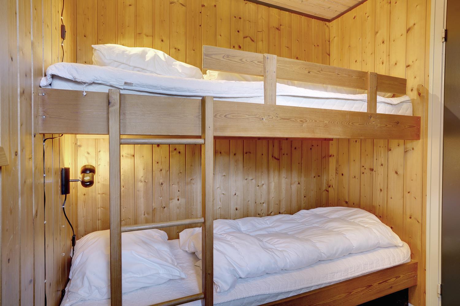Sengestørrelser: 1 dobbeltseng med 2 madrasser 90 x 200 cm + 2 enkeltsenge 80 x 200 cm + 1 køjeseng 70 x 190 cm.