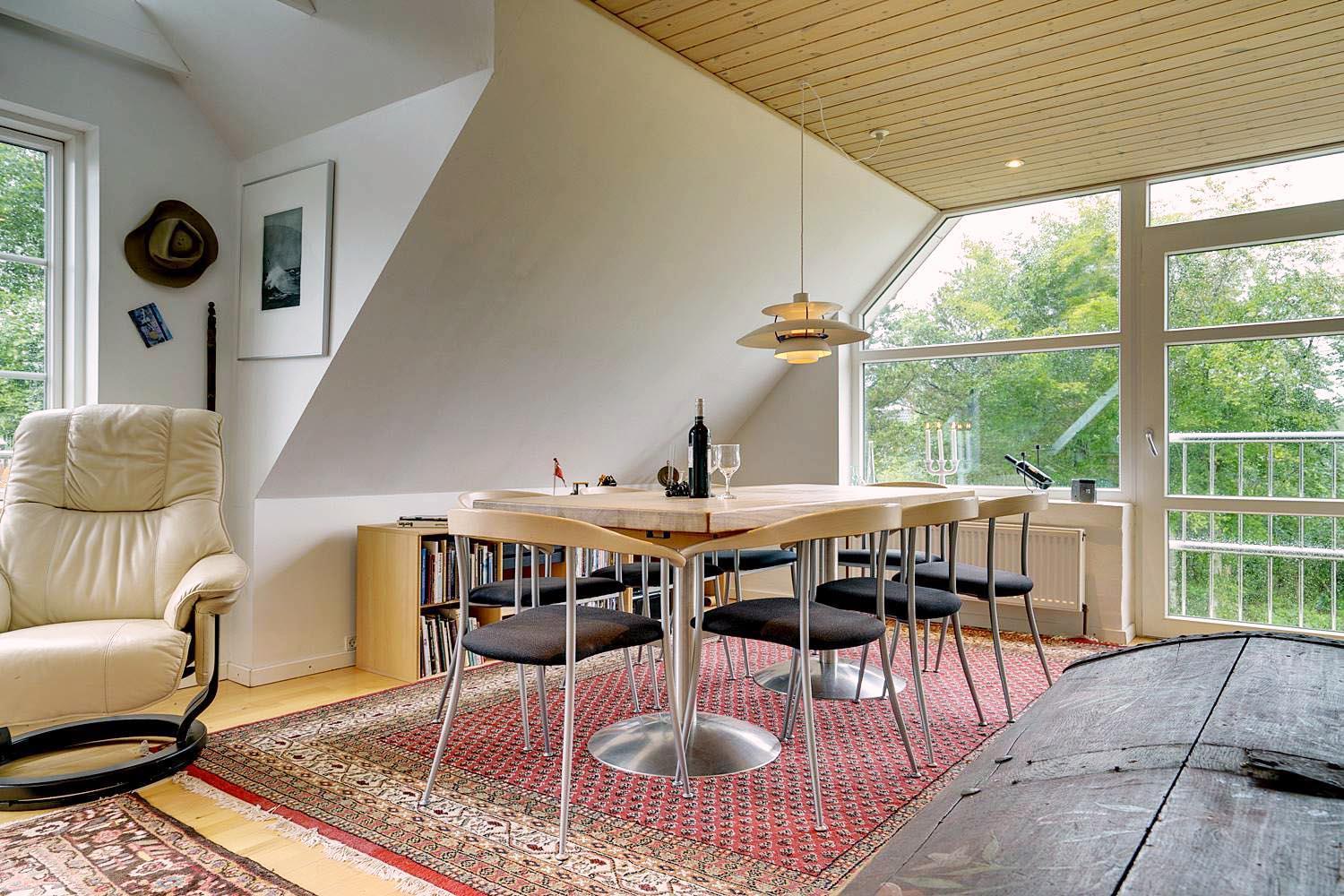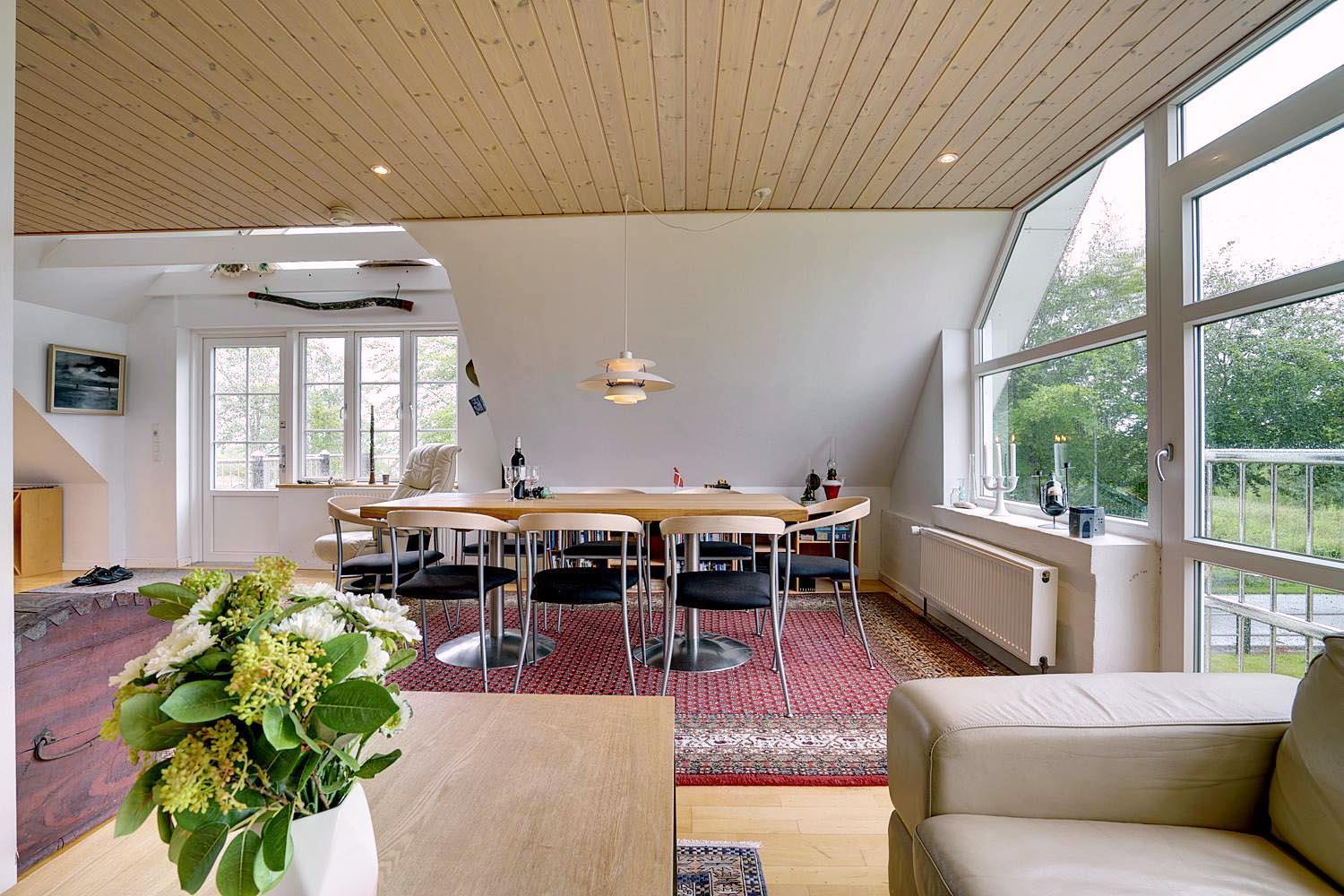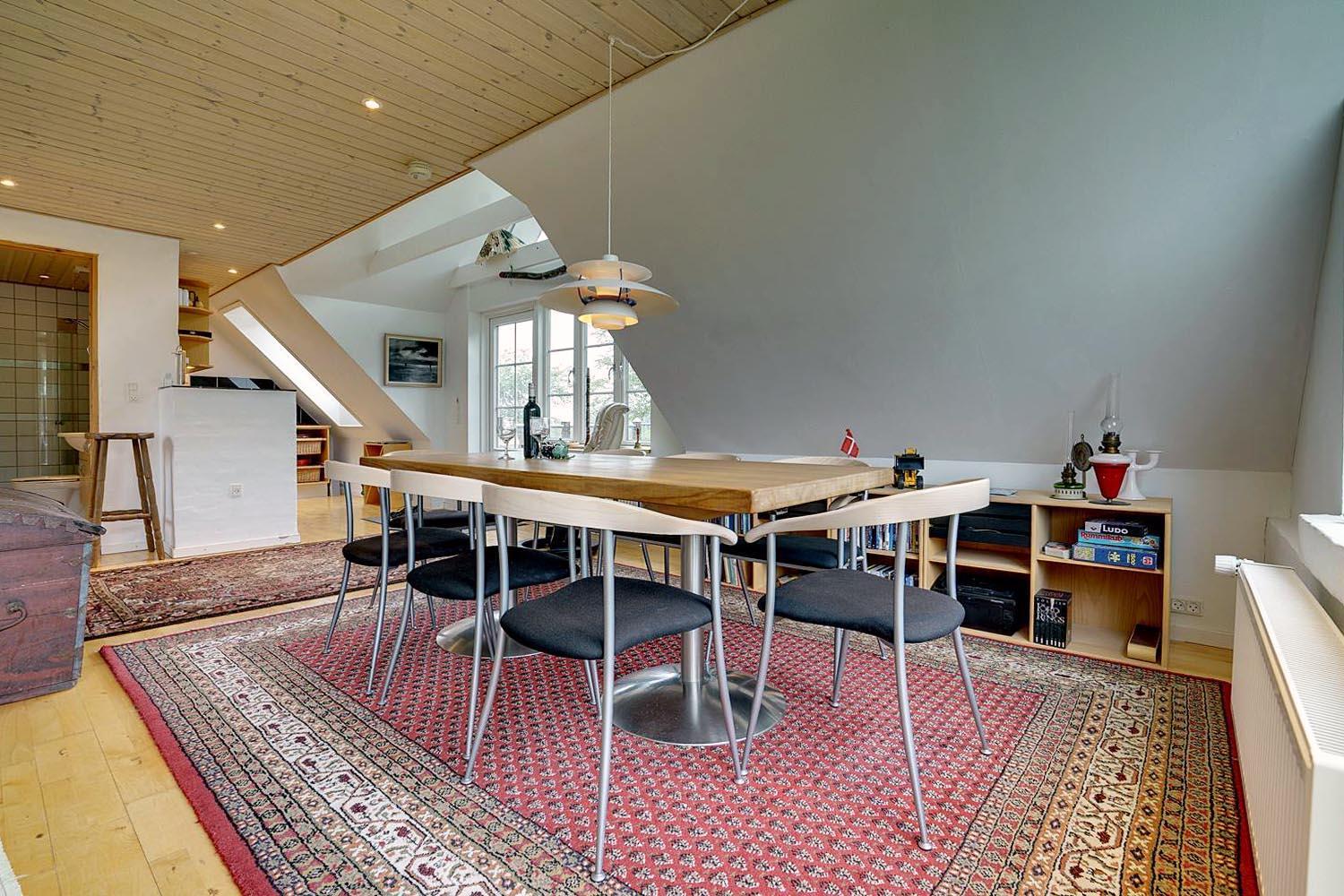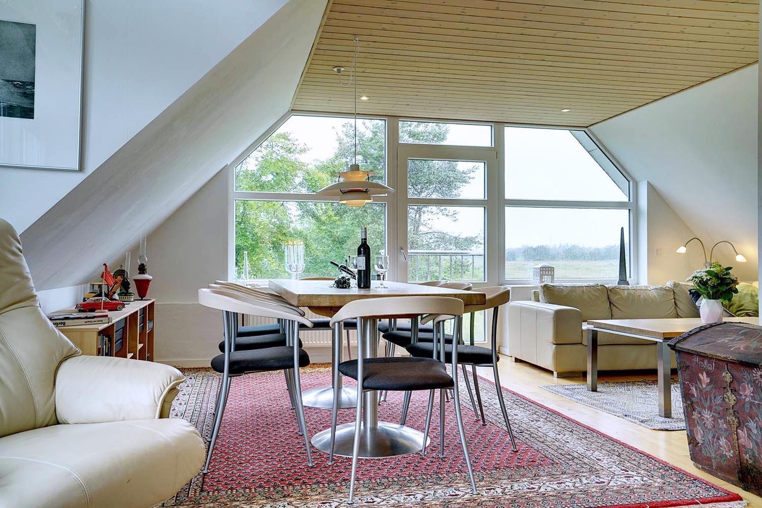 Denne lejlighed på 1. sal i Henne Kirkeby giver jer en unik mulighed for at opleve Vesterhavets perler, med en skøn udsigt over området og adgang til en række spændende oplevelser. I hjertet af lejligheden findes en lys og åben opholdsstue med køkkenafdeling, som indeholder alt, hvad I har brug for – keramisk komfur, emhætte, opvaskemaskine samt køleskab med lille fryser, alt sammen i åben forbindelse med stuen. Her kan I slappe af og nyde ferien efter dagens oplevelser.