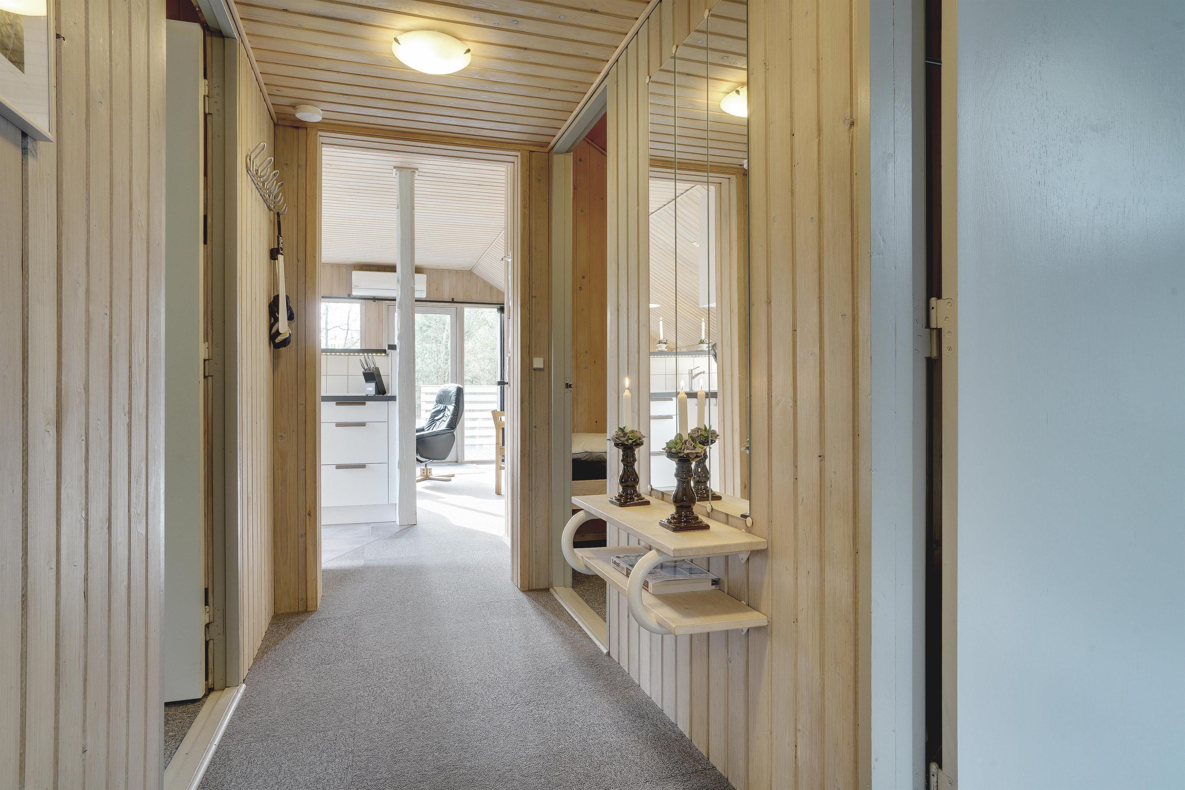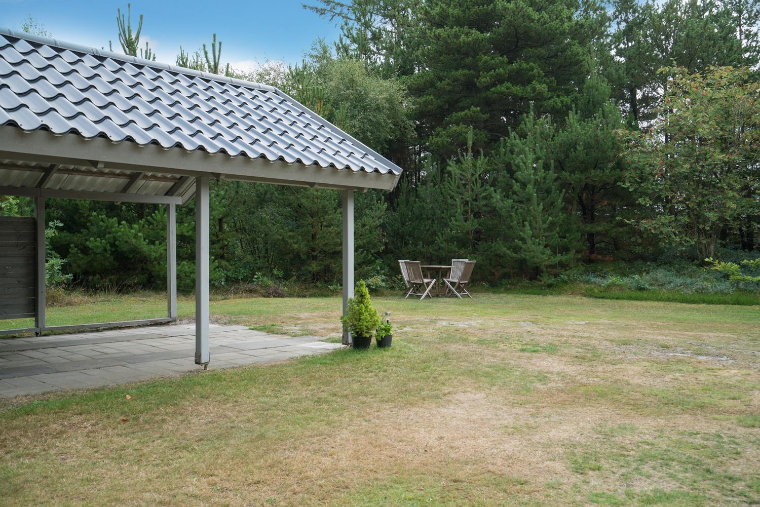 Pænt og meget velholdt, muret feriehus beliggende på en dejlig naturgrund tæt ved skov og golfklub. Nyere flot køkken afdeling. Huset ligger meget ugeneret for enden af stikvej. Fra stuen er der direkte udgang til træterrasse, som går rundt om huset. Vaskemaskinen kan kun benyttes fra maj frem til efteråret. Der er opsat carport på grunden. Kun DR 1 TV.