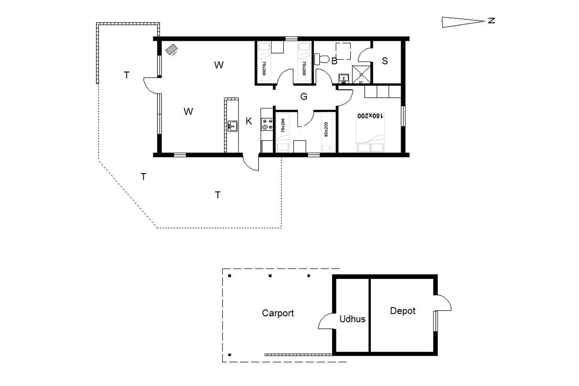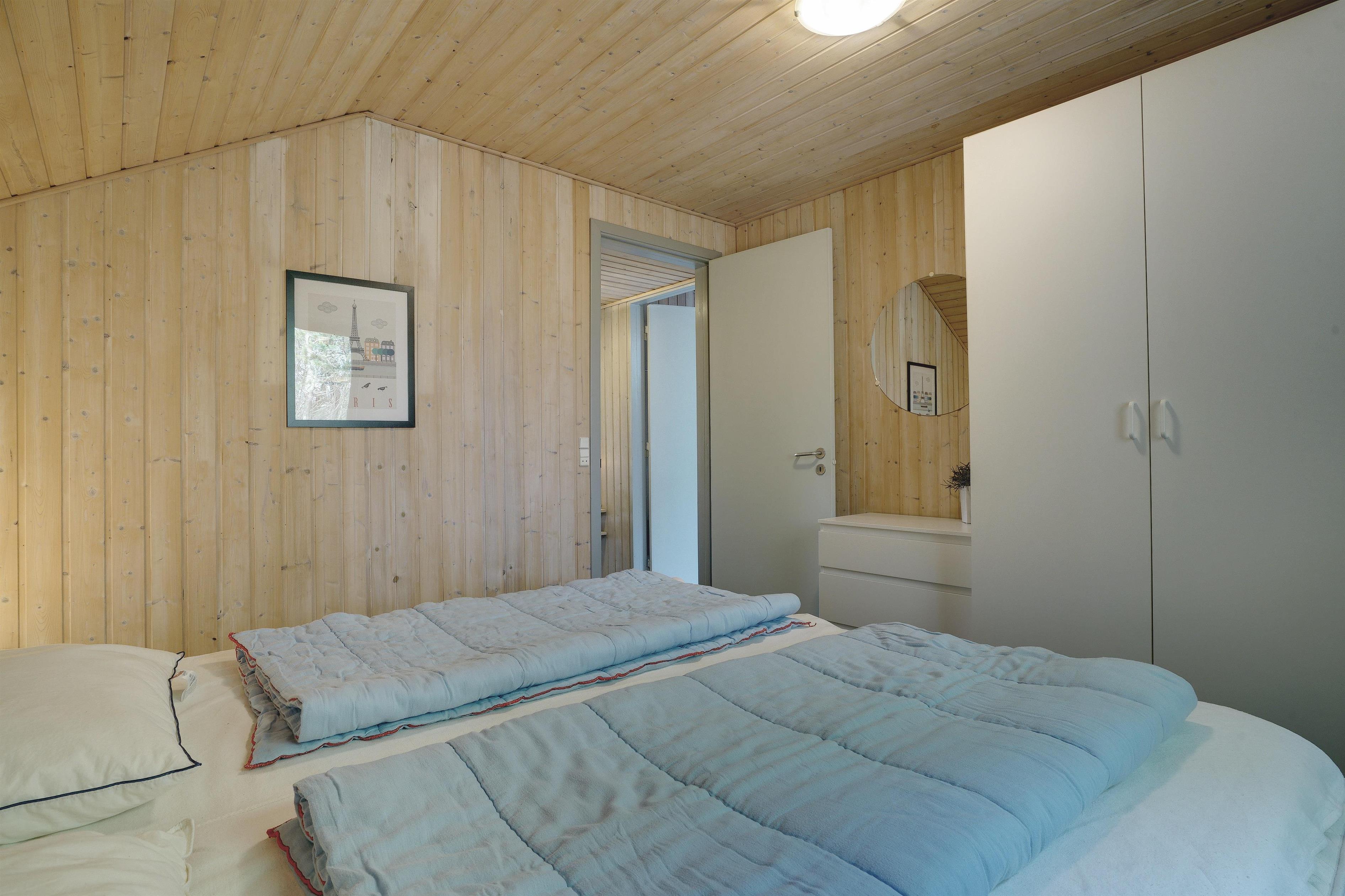 Sengestørrelse: 1 dobbeltseng 180 x 200 cm + 3 enkeltsenge 70 x 200 cm + 1 køjeseng 80 x 200 cm.