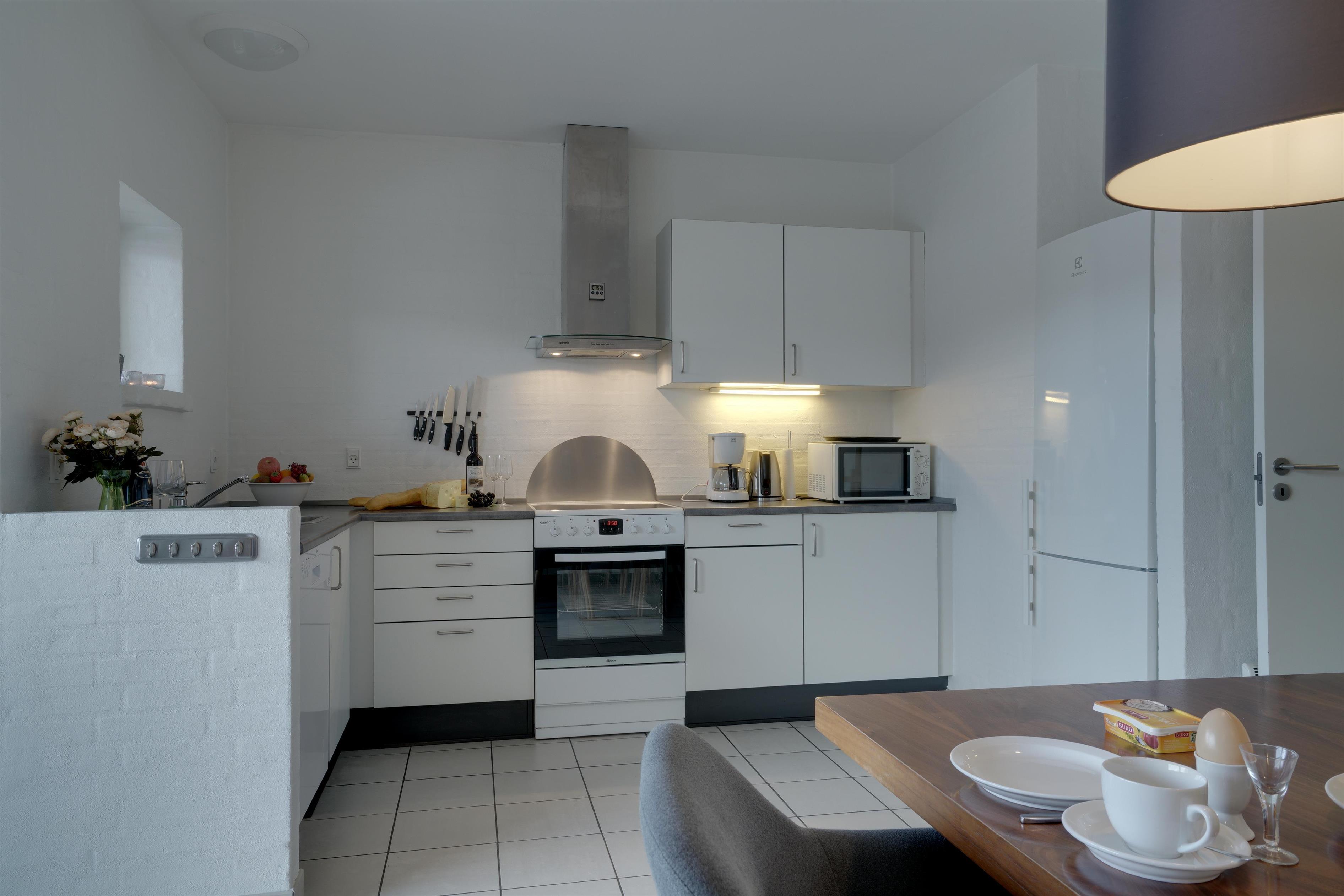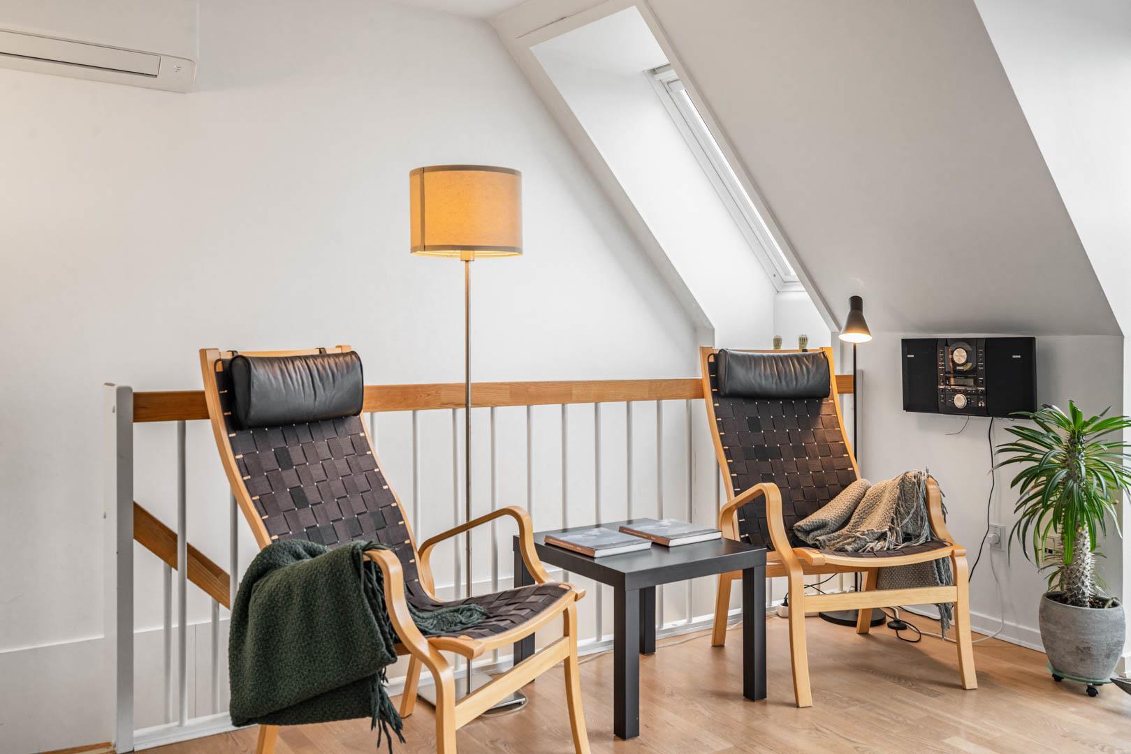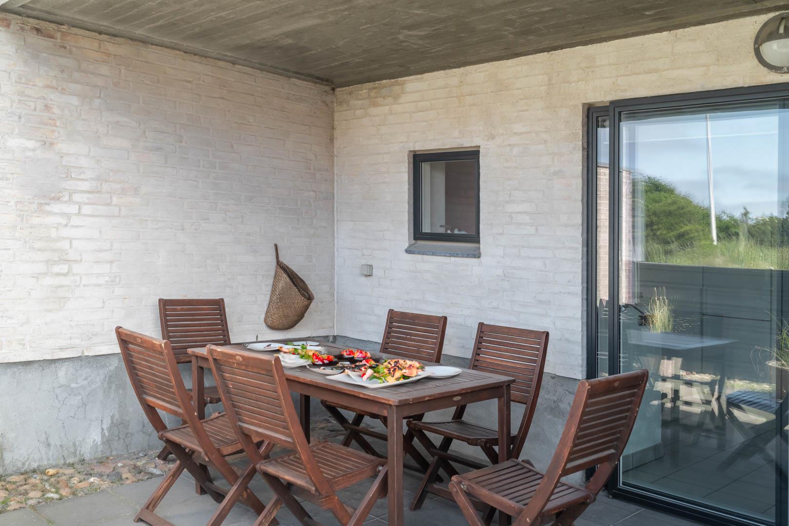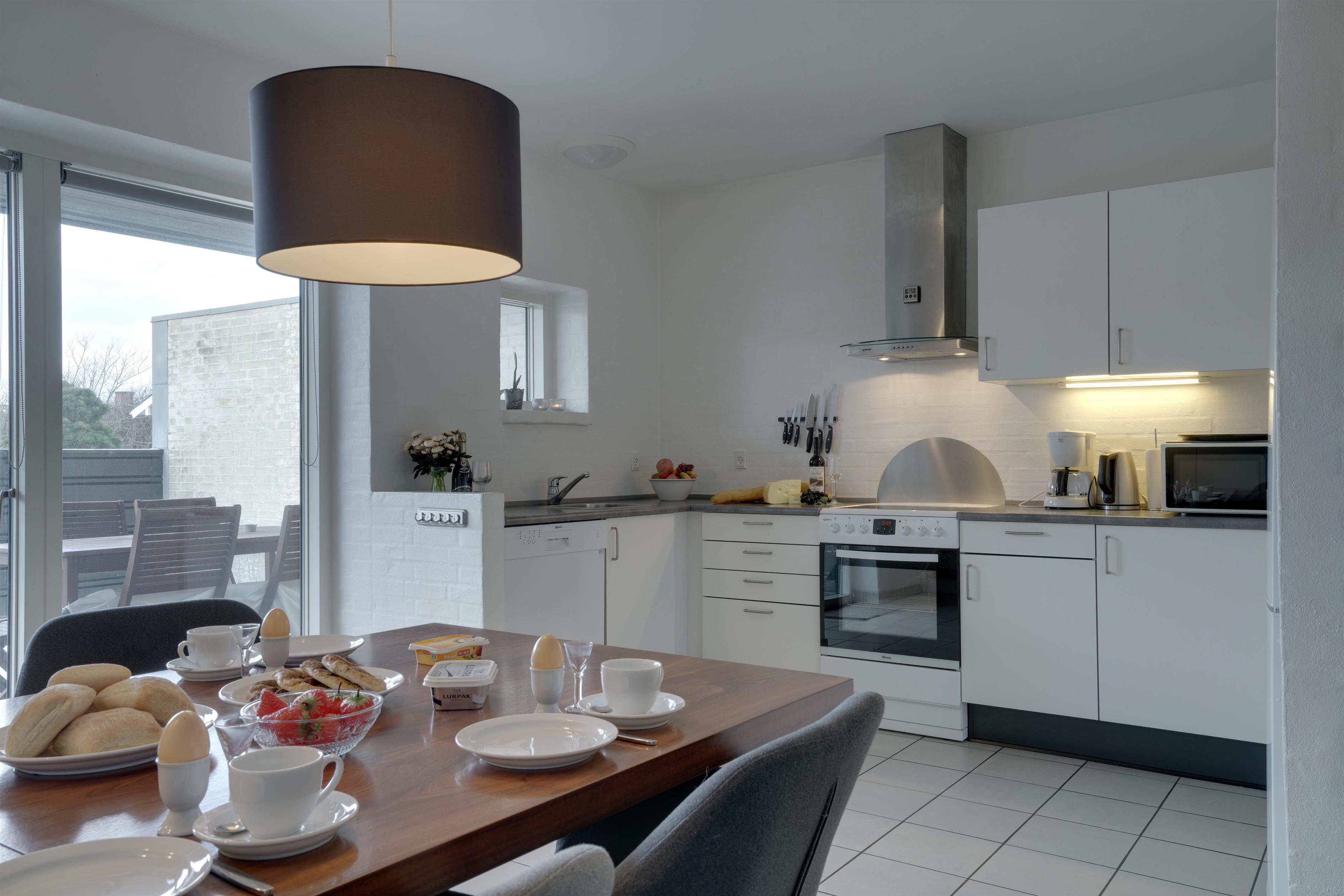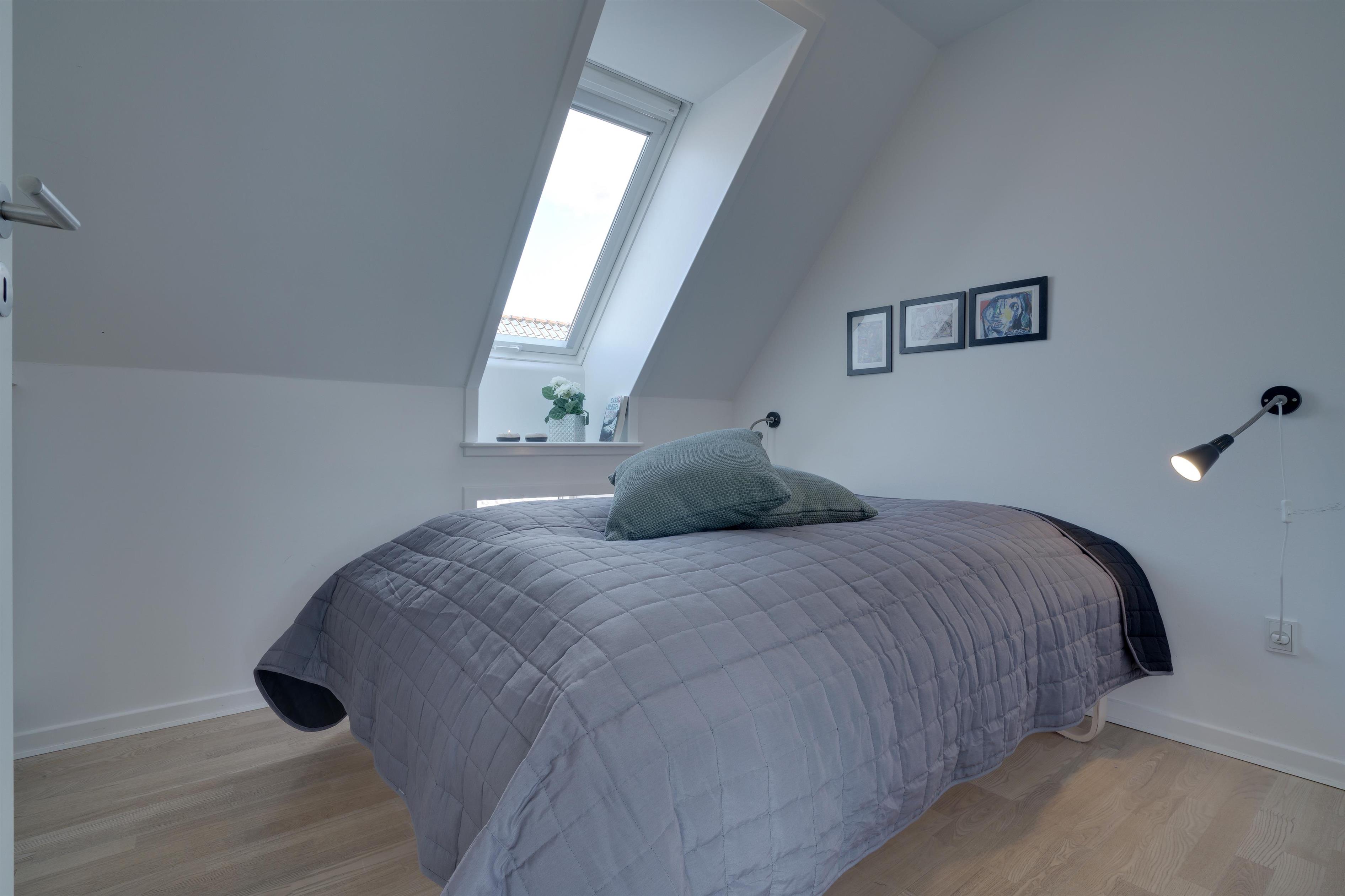 Lys og kvalitetslejlighed på 2 plan i hjertet af Henne Strand med vestvendt gårdhave og balkon.