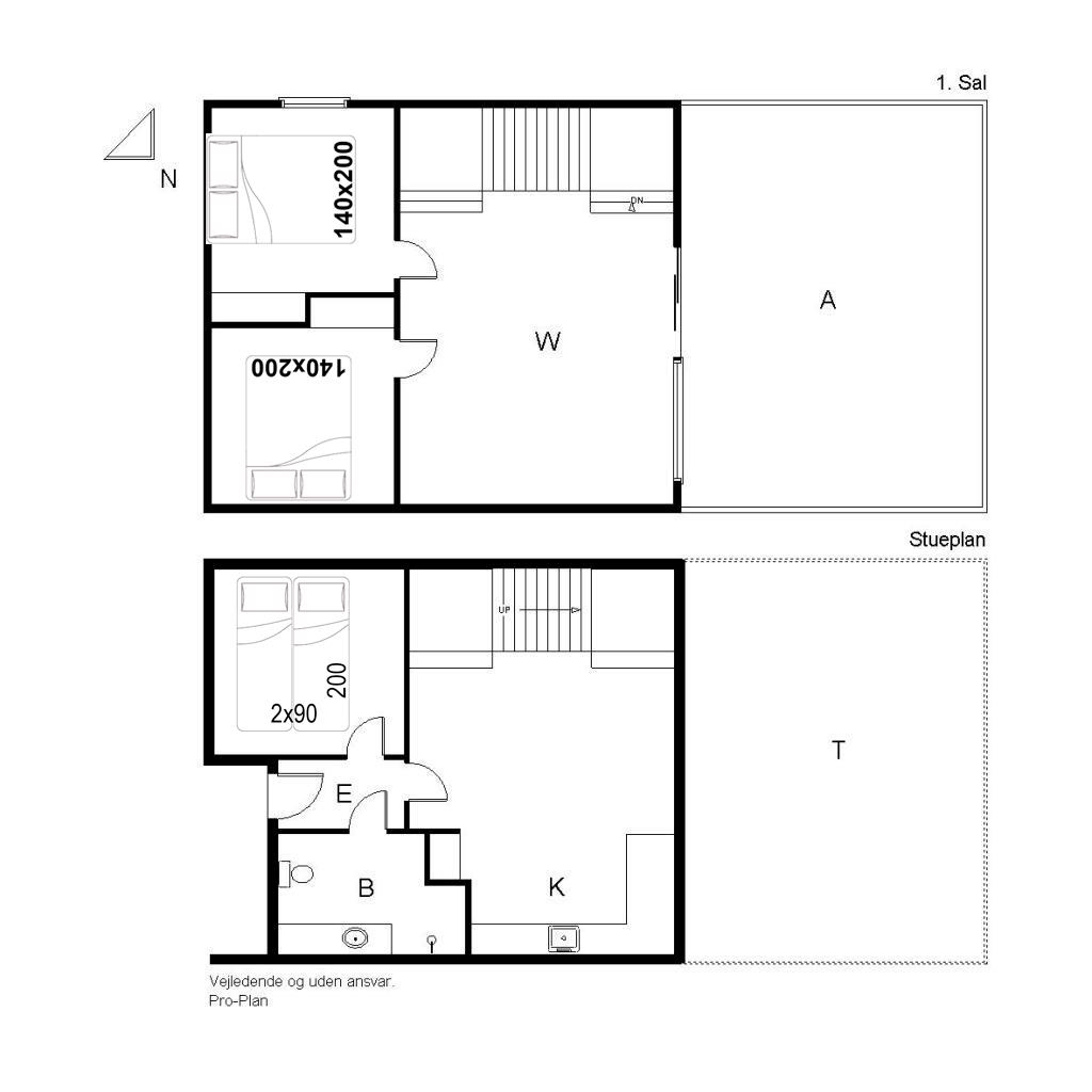 Sengestørrelse: 2 dobbeltsenge 140 x 200 cm + 1 dobbeltseng med 2 madrasser 90 x 200 cm.