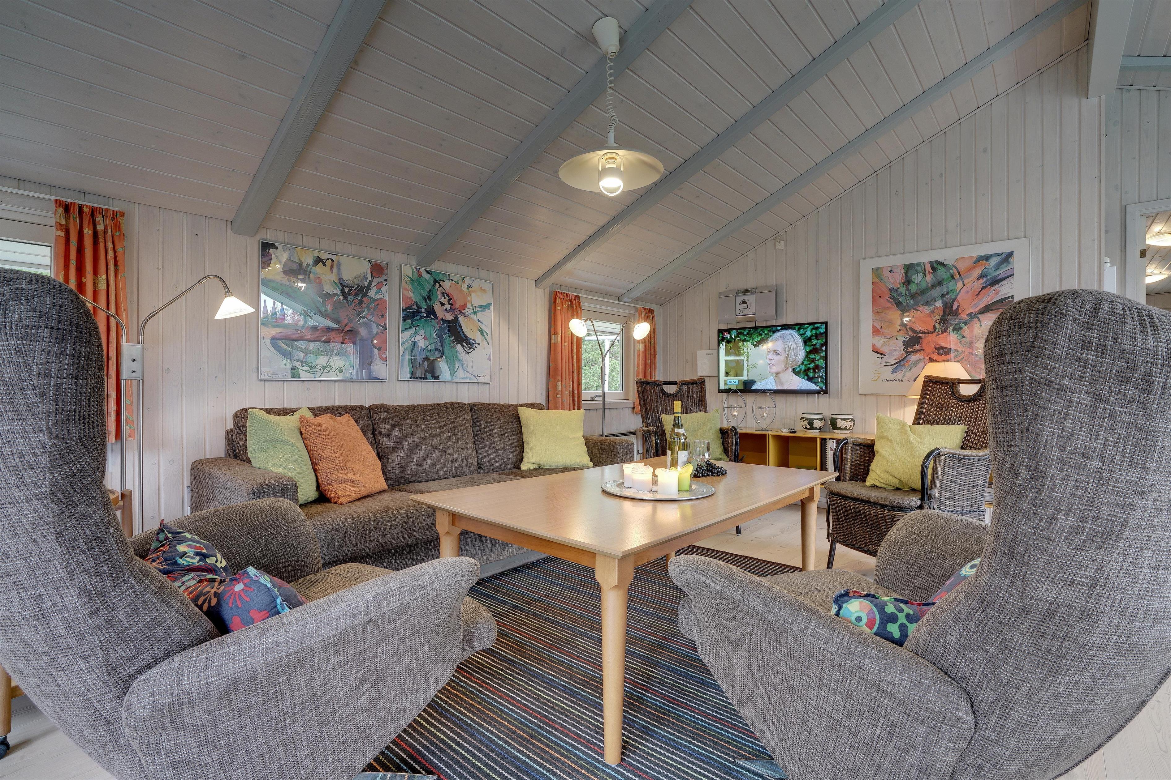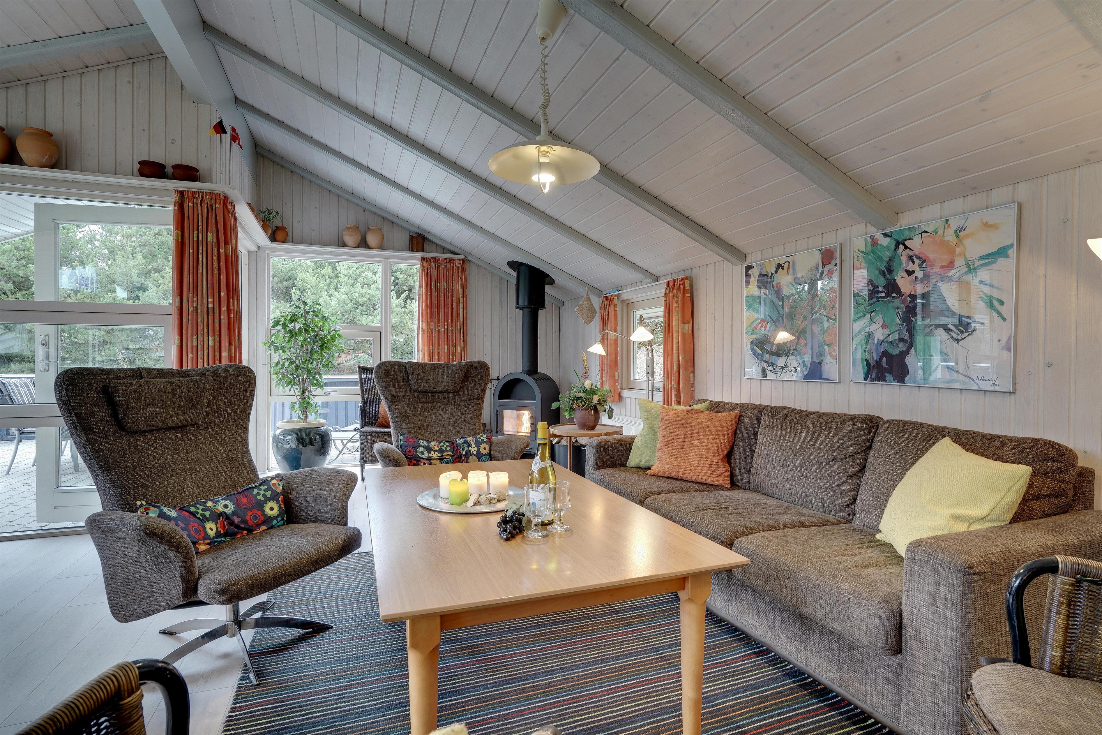 Velindrettet feriehus nær Blåbjerg Plantage med spa, sauna og dejlige terrasser.