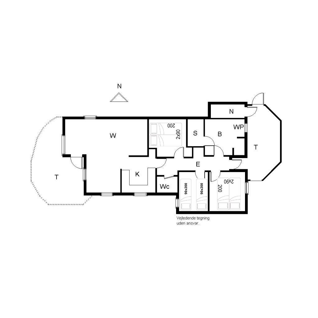 Sengestørrelse: 2 dobbeltsenge med 2 madrasser 90 x 200 cm + 2 enkeltsenge 90 x 200 cm
