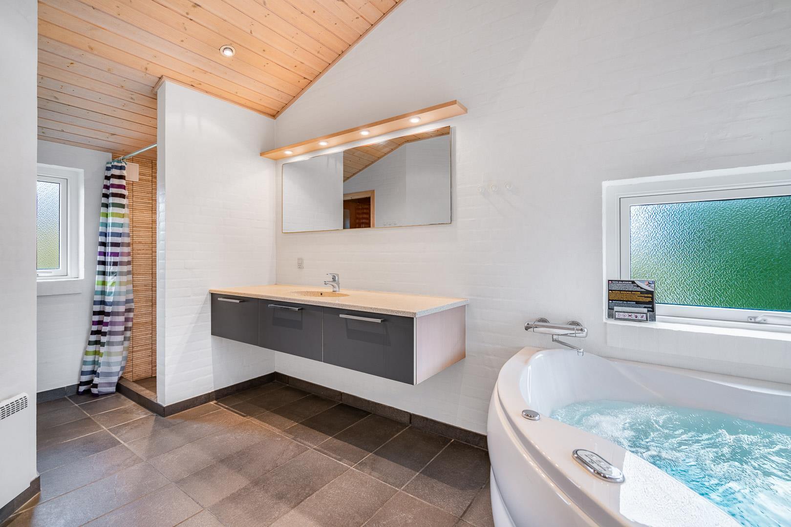 Det stilfulde køkken er fuldt udstyret og giver dig alle muligheder for at tilberede lækre måltider til hele familien. Badeværelset er rummeligt og luksuriøst med spa og sauna samt vaskemaskine og tørretumbler, så komforten er i top under hele opholdet.