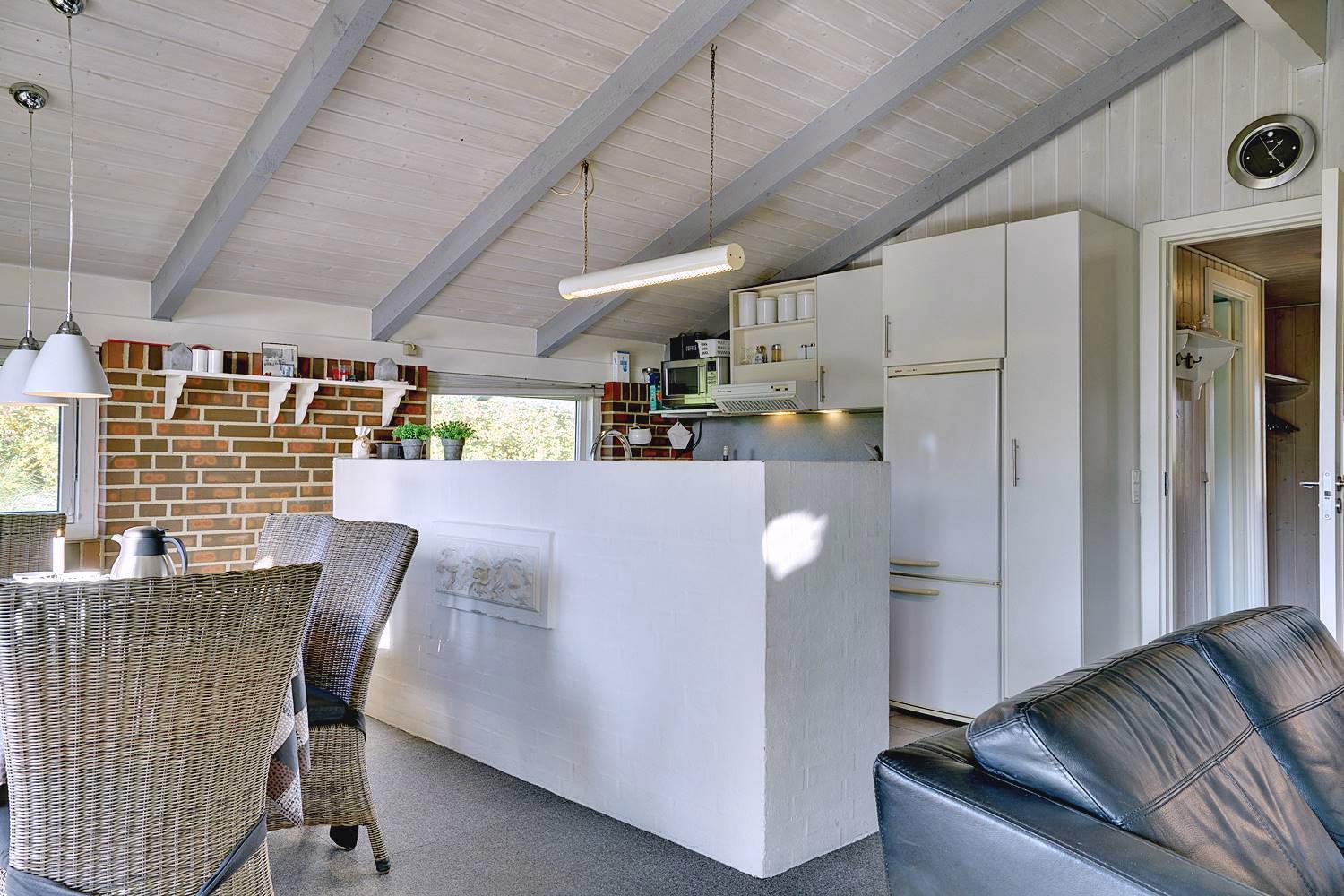 Utrolig hyggeligt, velindrettet og meget velholdt muret feriehus. Huset der har sjæl er moderniseret med kreativitet og nænsom hånd. Indvendigt er huset personligt møbleret. Der er stor bryggers. Fra stuen er der udgang til dejlig lukket terrasse. Der er flere dejlige læ kroge på grunden.