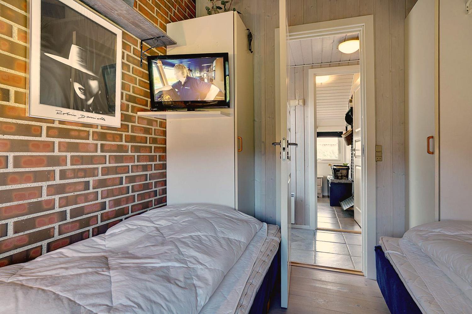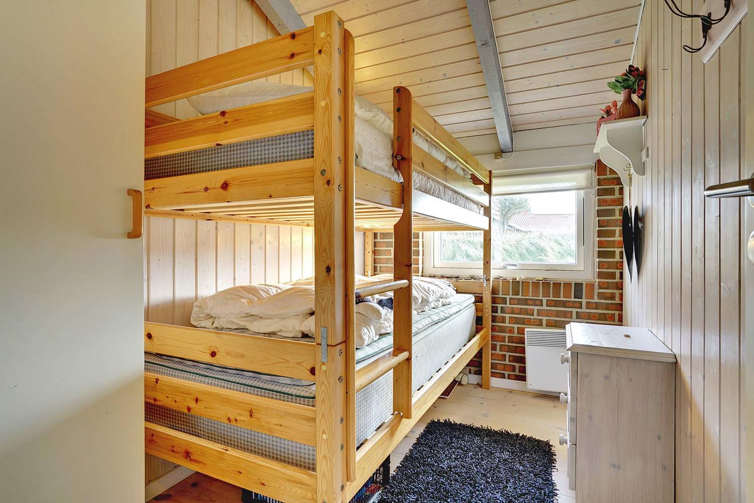 Sengestørrelse: 1 dobbeltseng 140x200 cm. 2 enkeltsenge 90x200 cm + 1 køjesenge 90x190 cm.